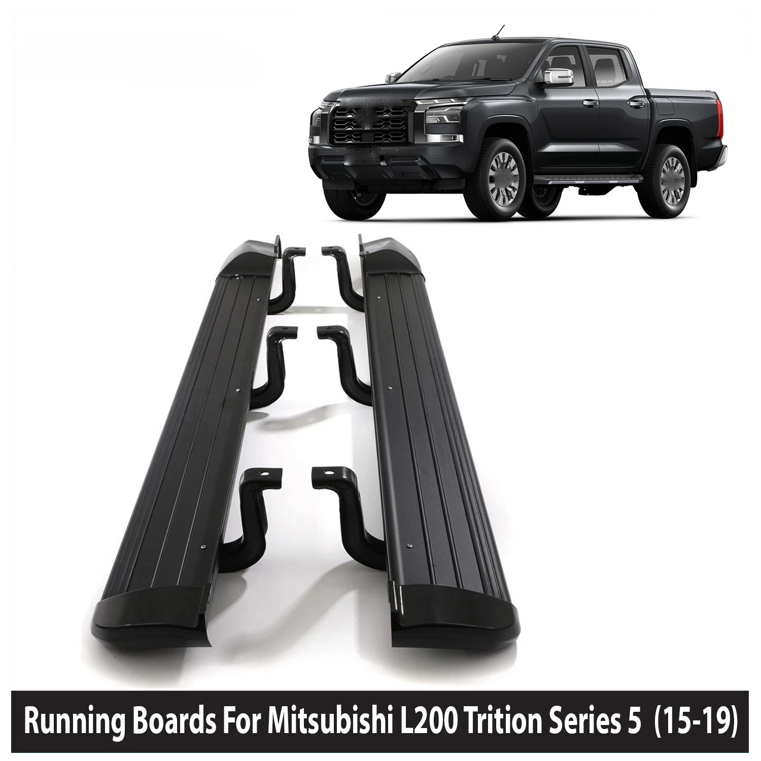 BLACK RUNNING BOARD SIDE STEPS RAILS FOR MITSUBISHI L200 TRITON SERIES 5 15-19