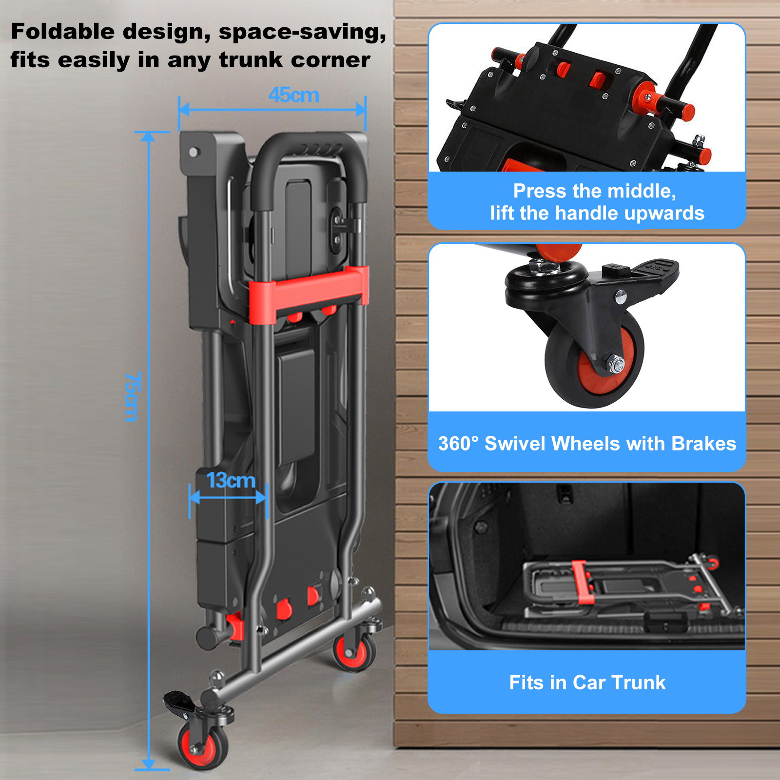 Aluminium Alloy foldable Portable Cart portable red PC