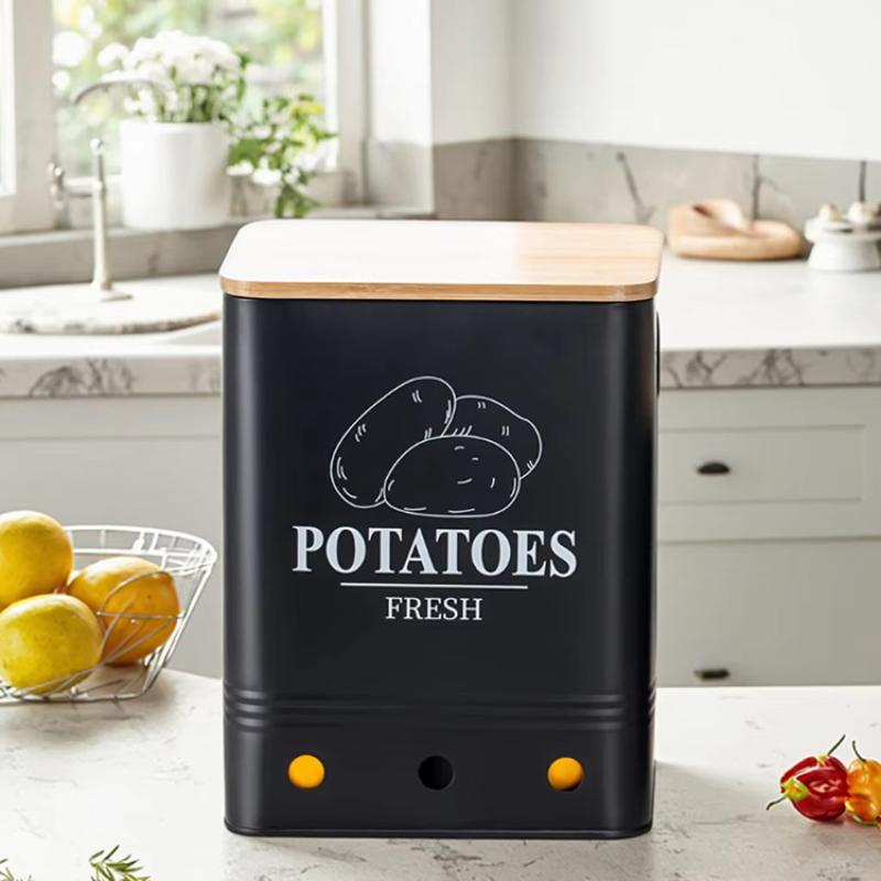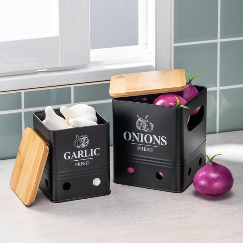 Bamboo & Carbon Steel Storage Box tight seal & three piece letter black Set