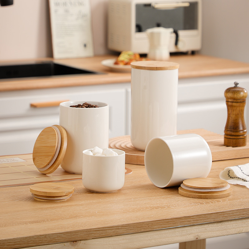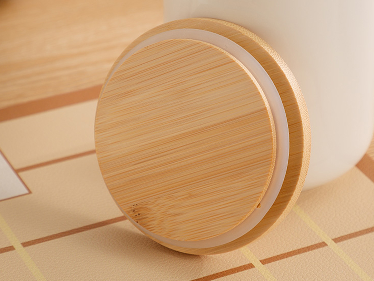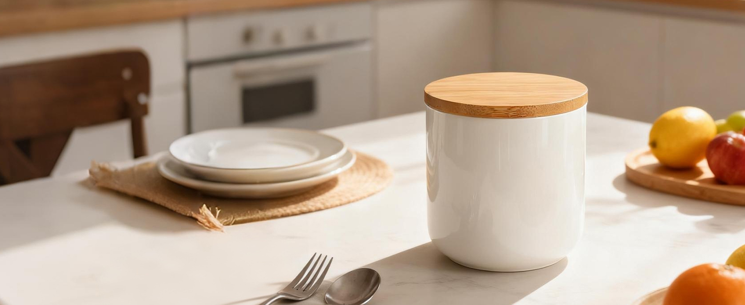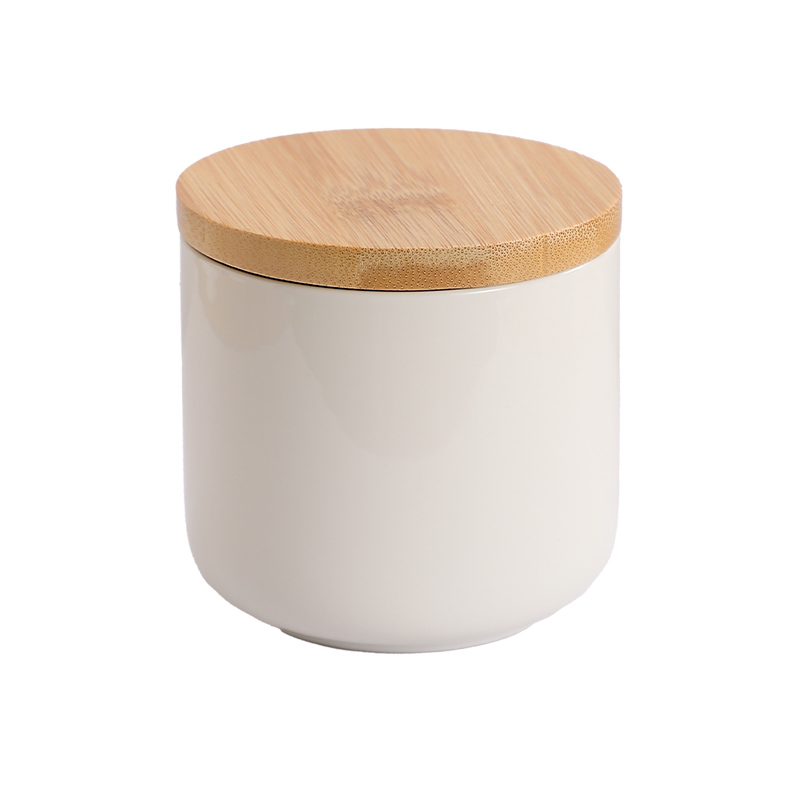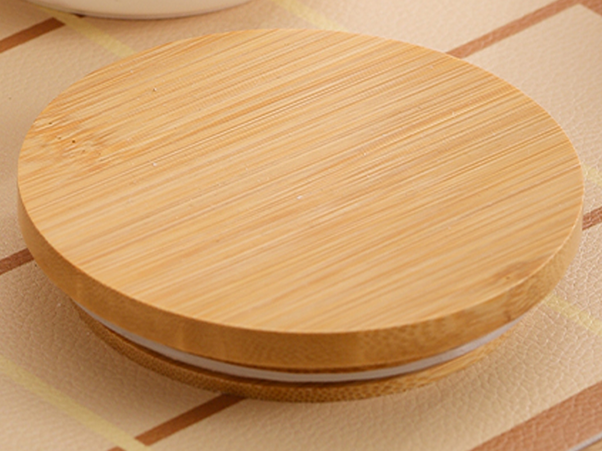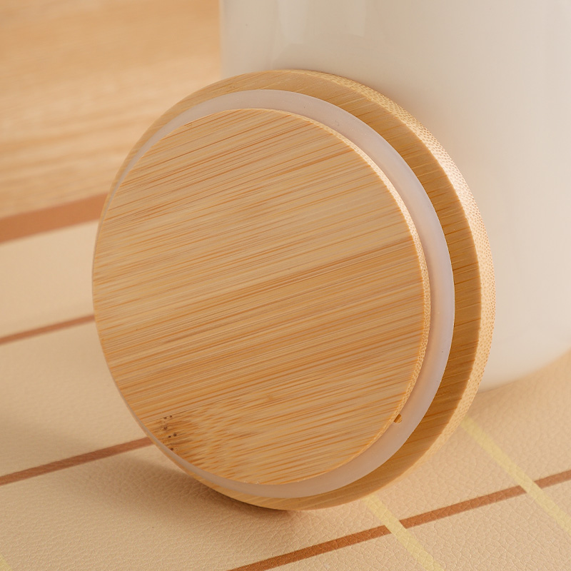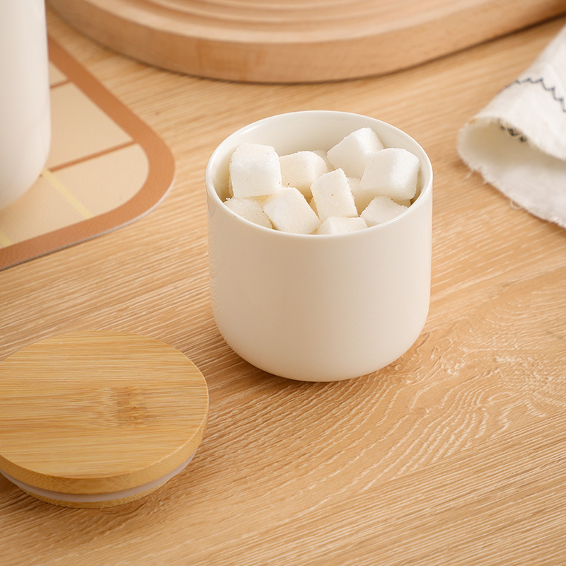 Bamboo & Ceramics Storage Jar Solid white PC