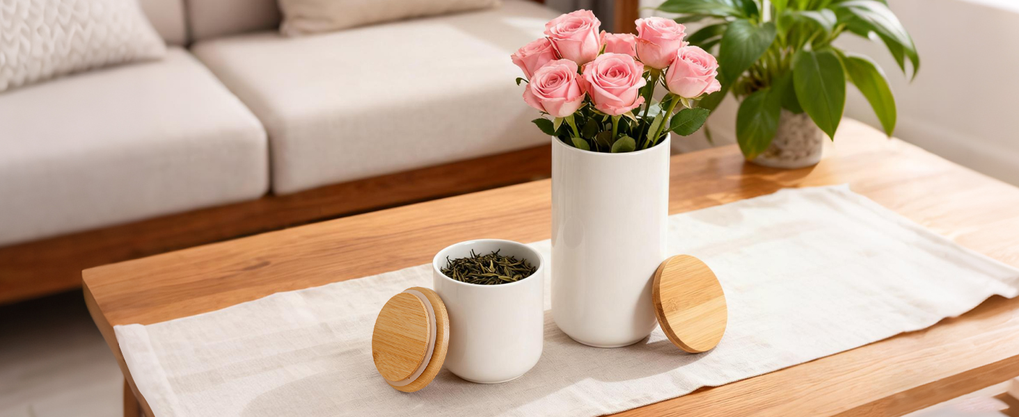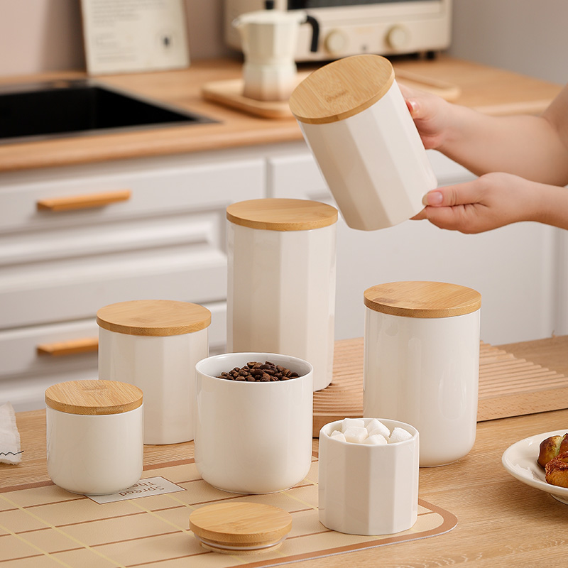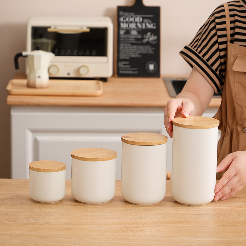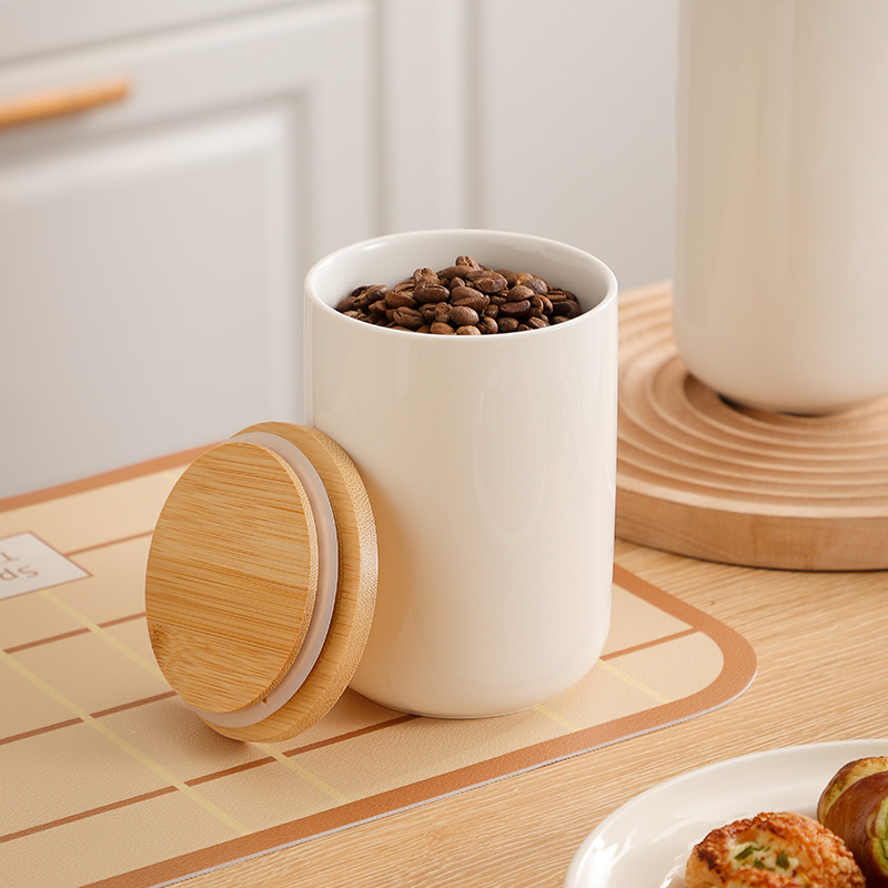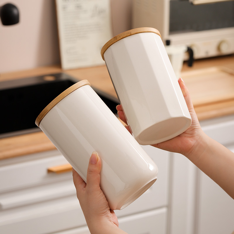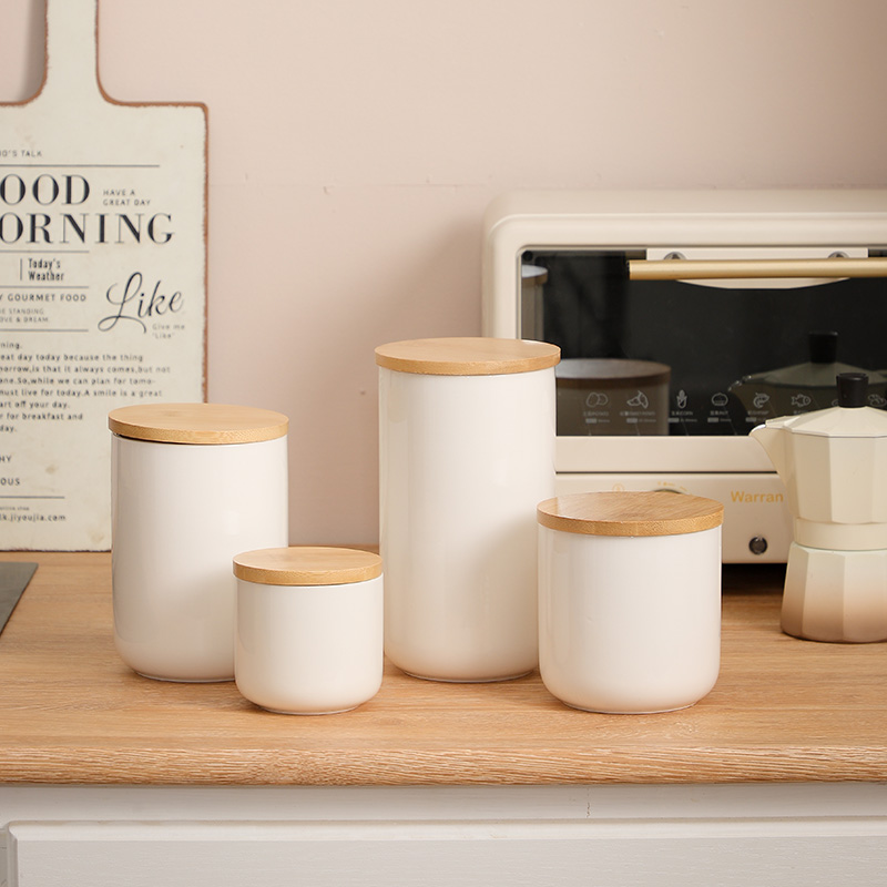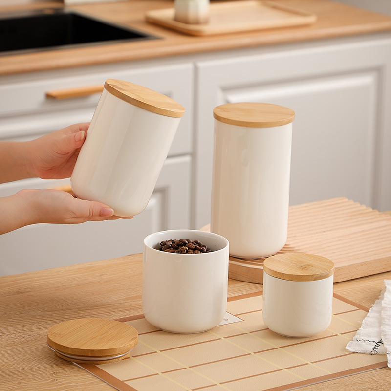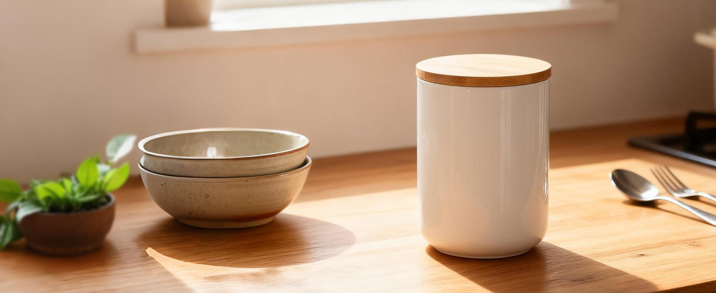 Bamboo & Ceramics Storage Jar Solid white PC
