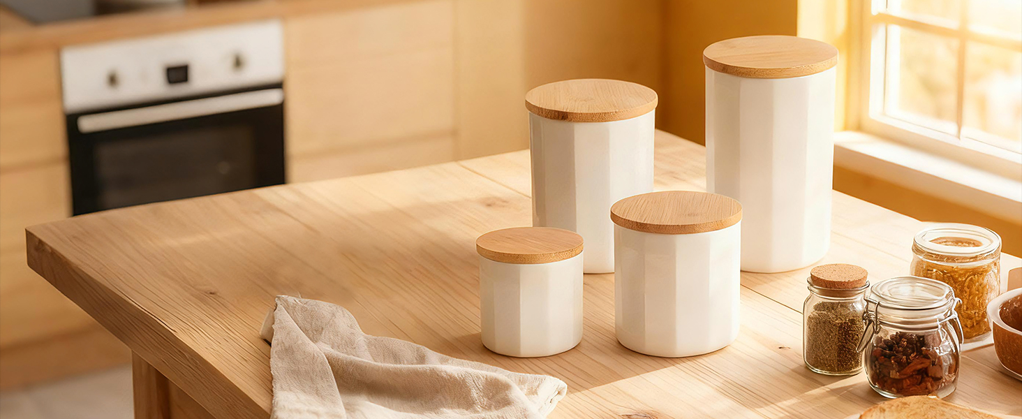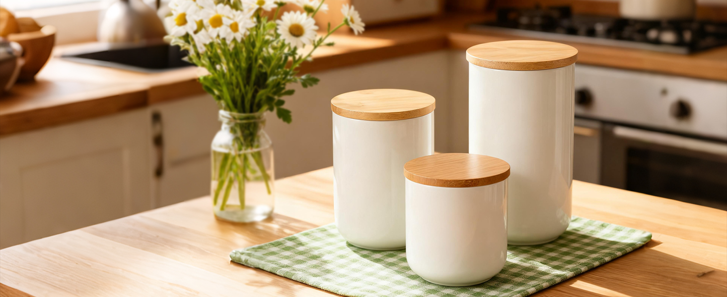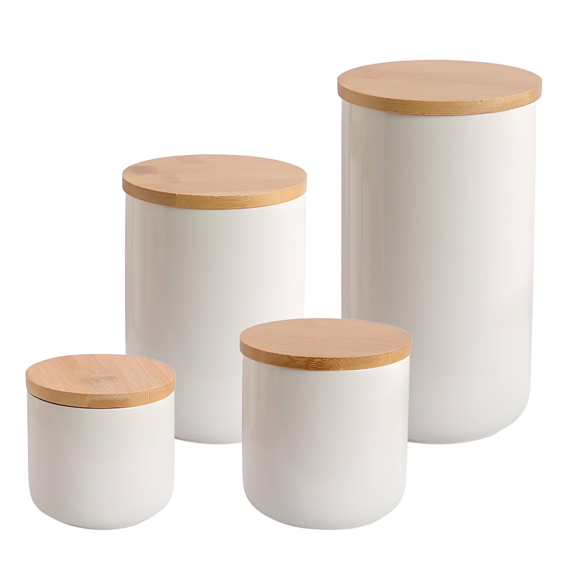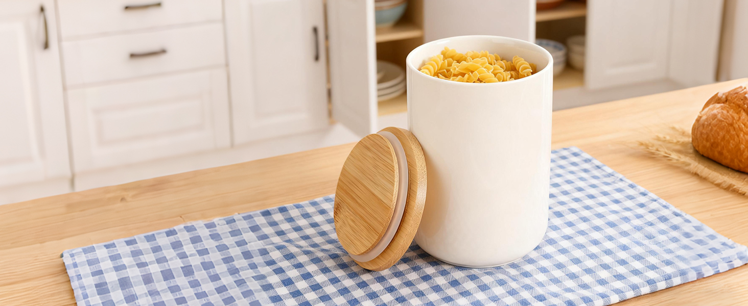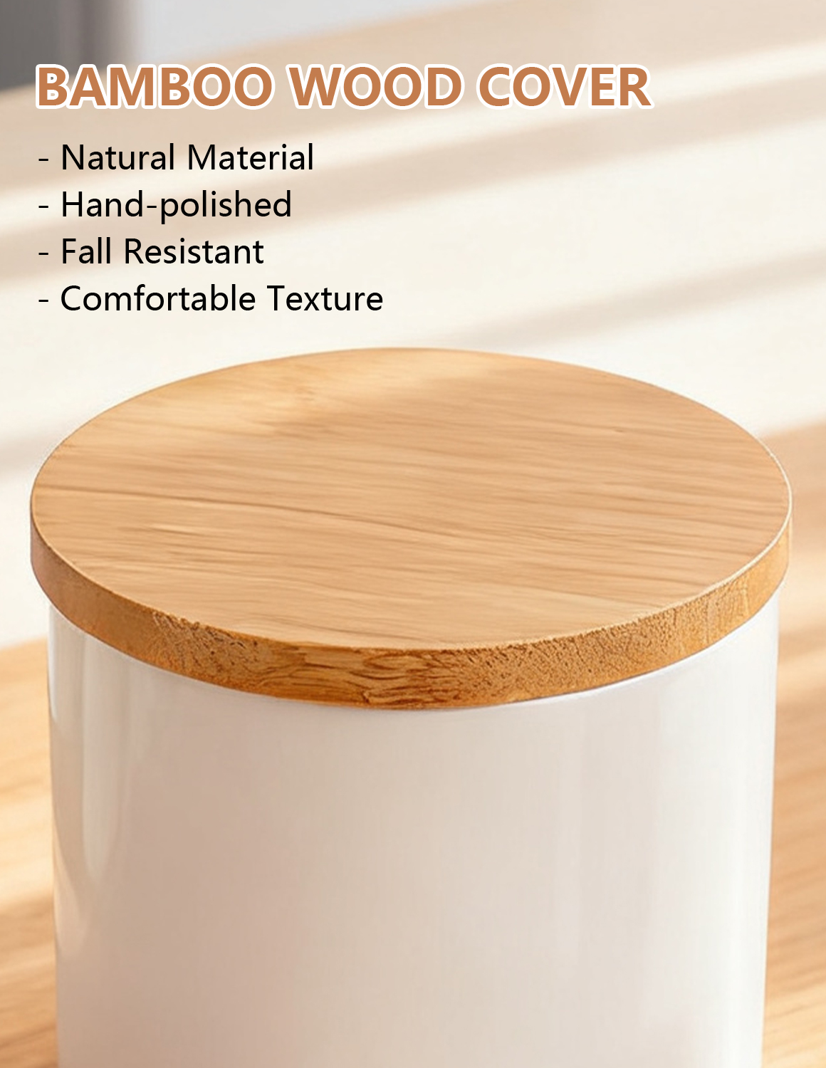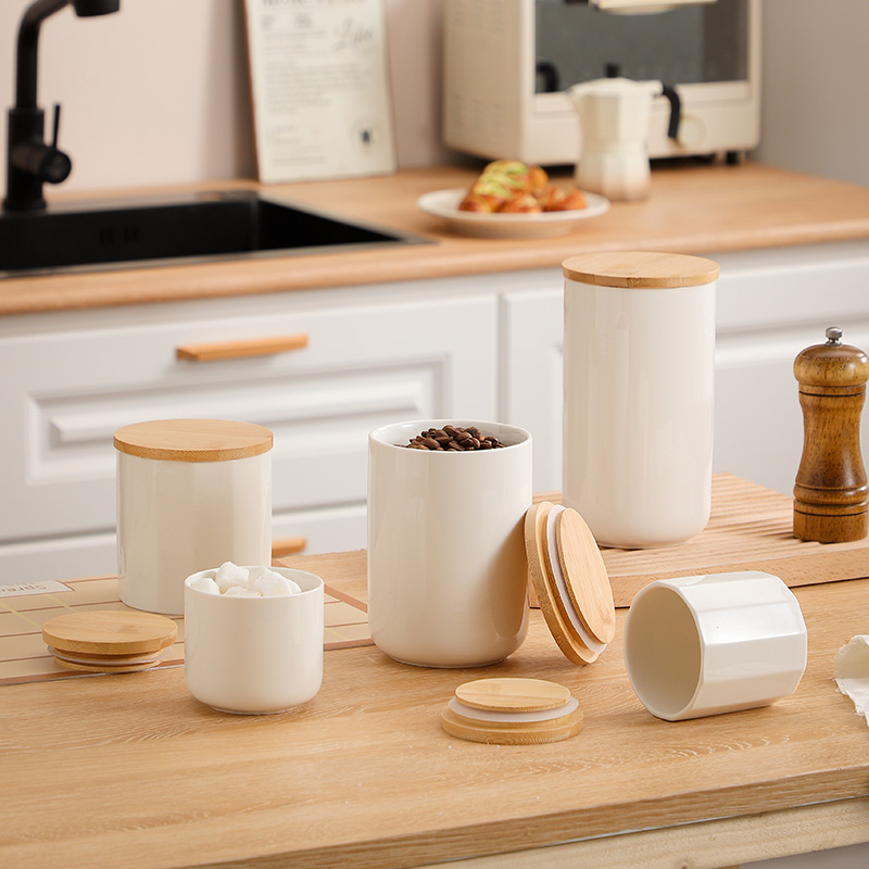 Bamboo & Ceramics Storage Jar Solid white PC