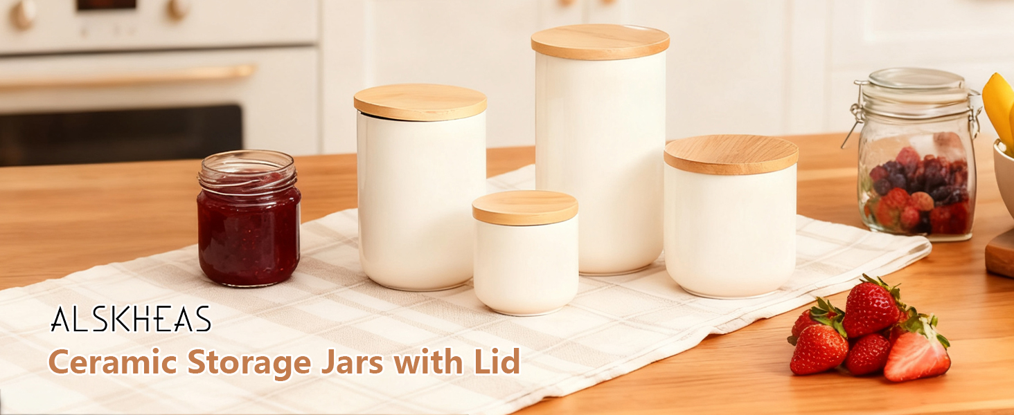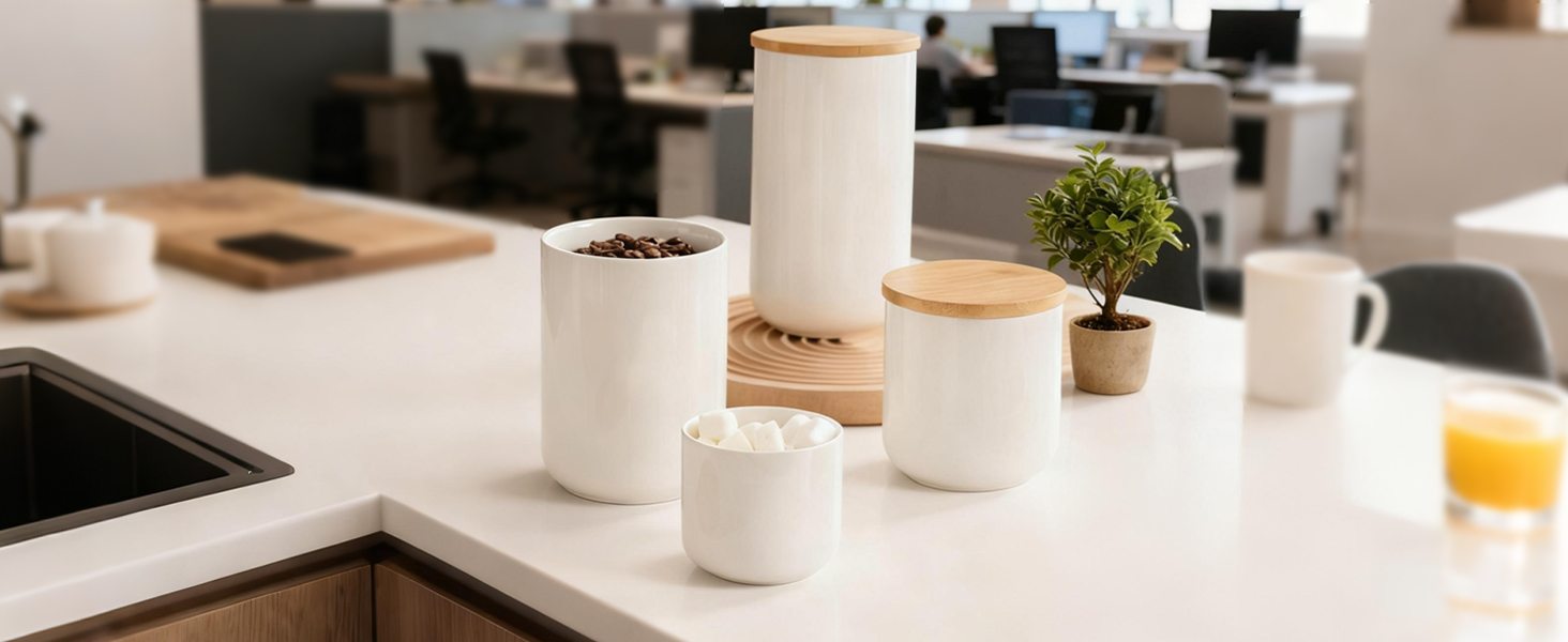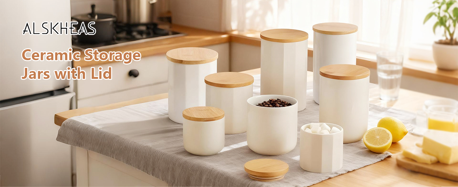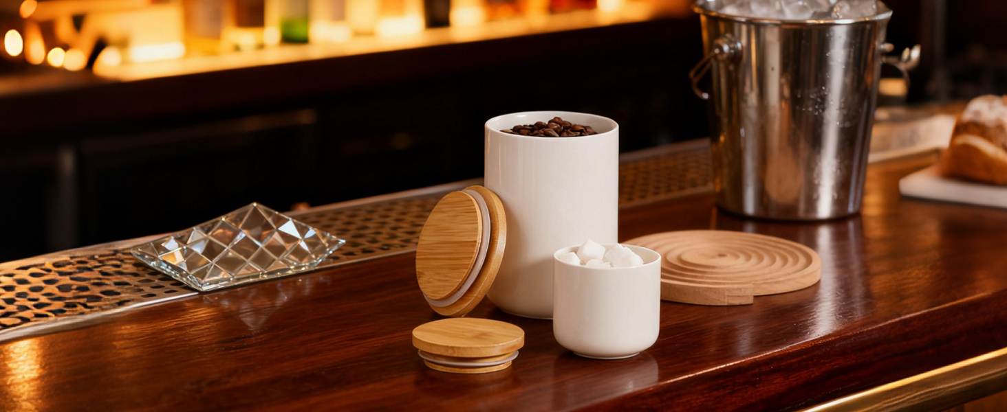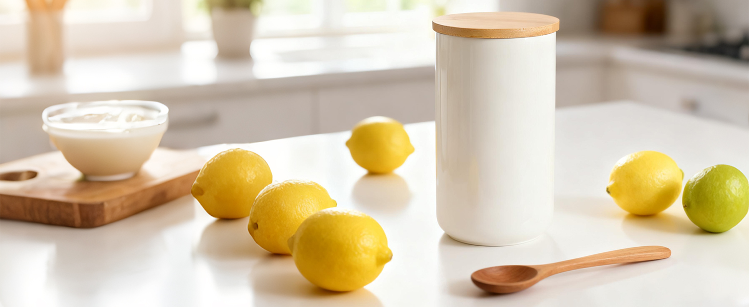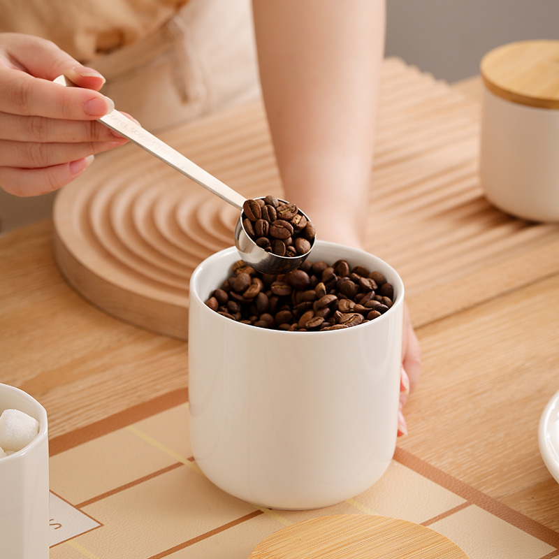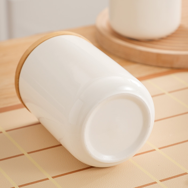 Bamboo & Ceramics Storage Jar Solid white PC