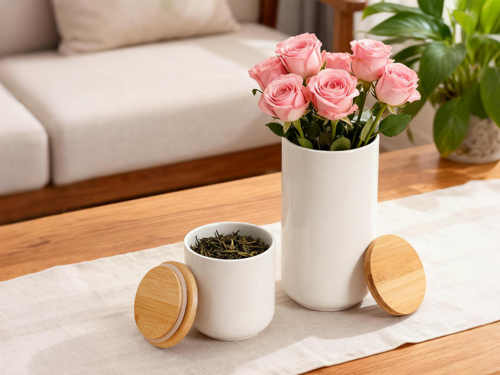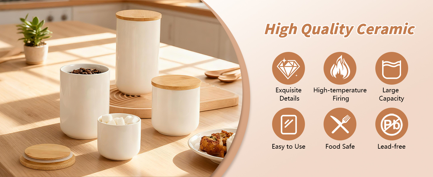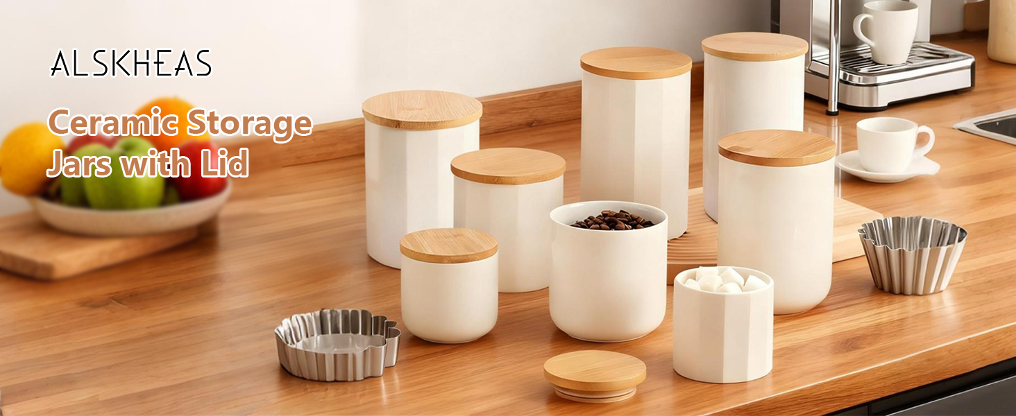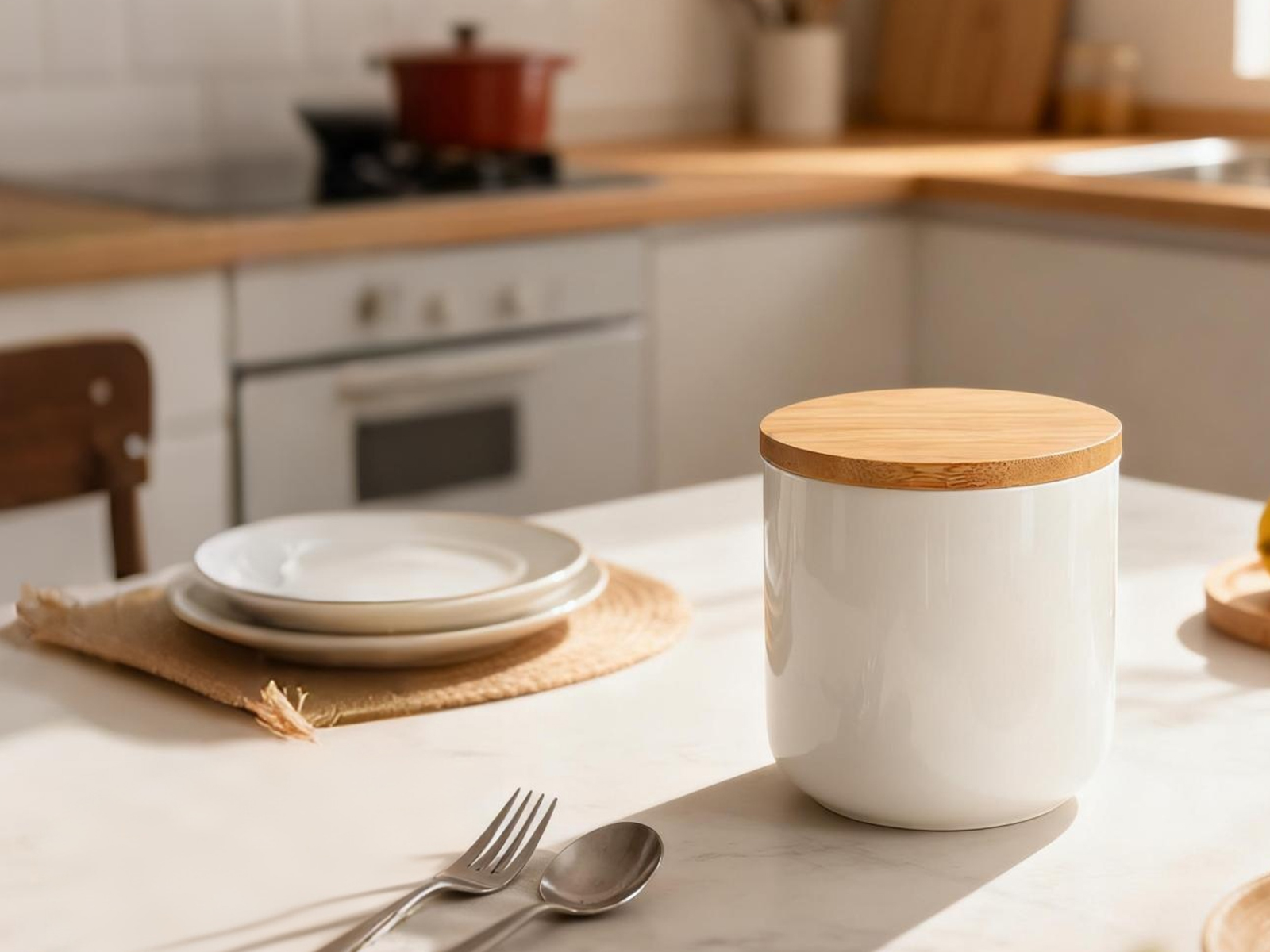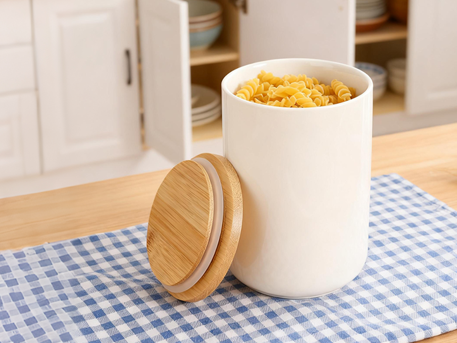 Bamboo & Ceramics Storage Jar Solid white PC