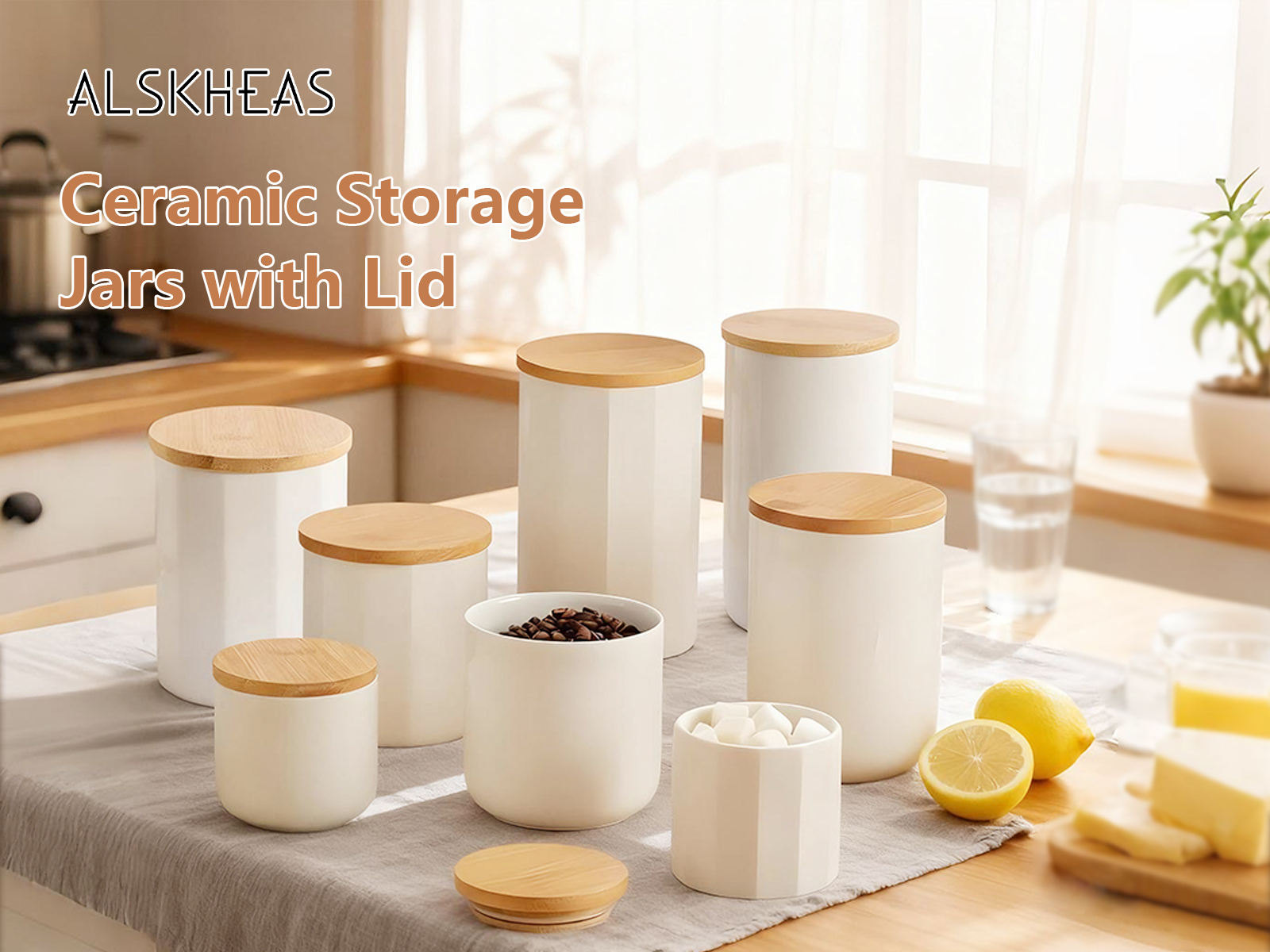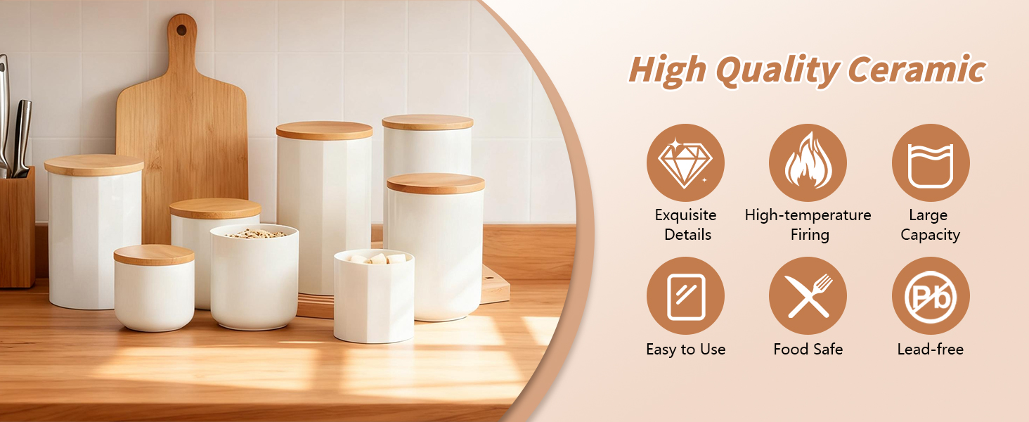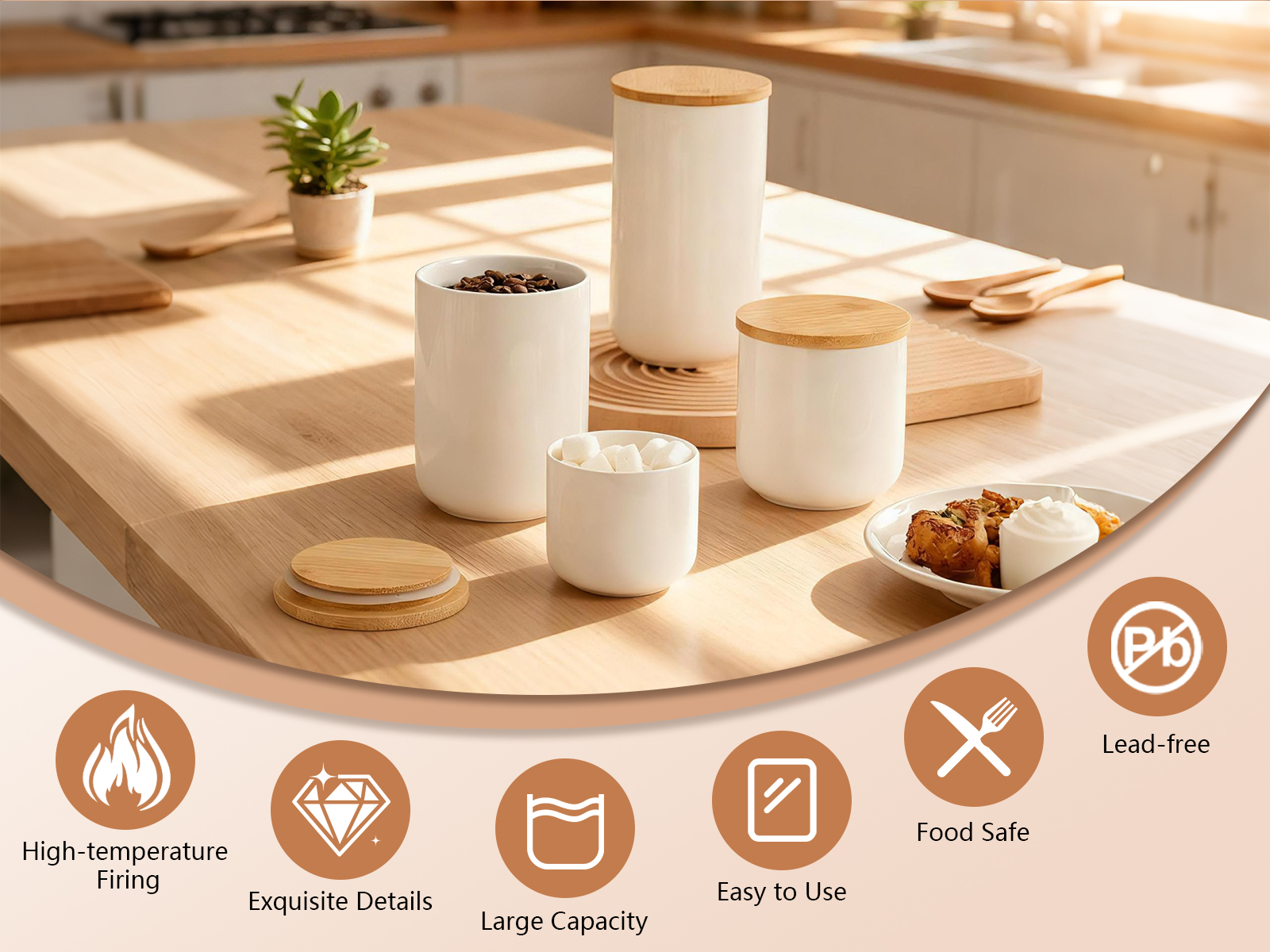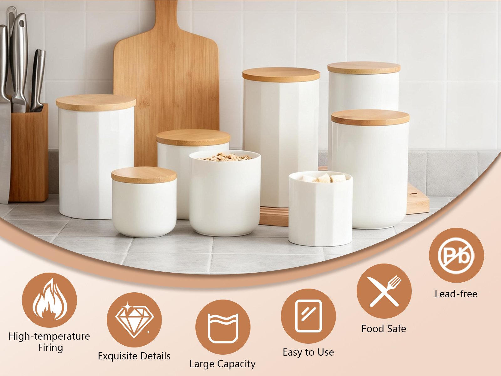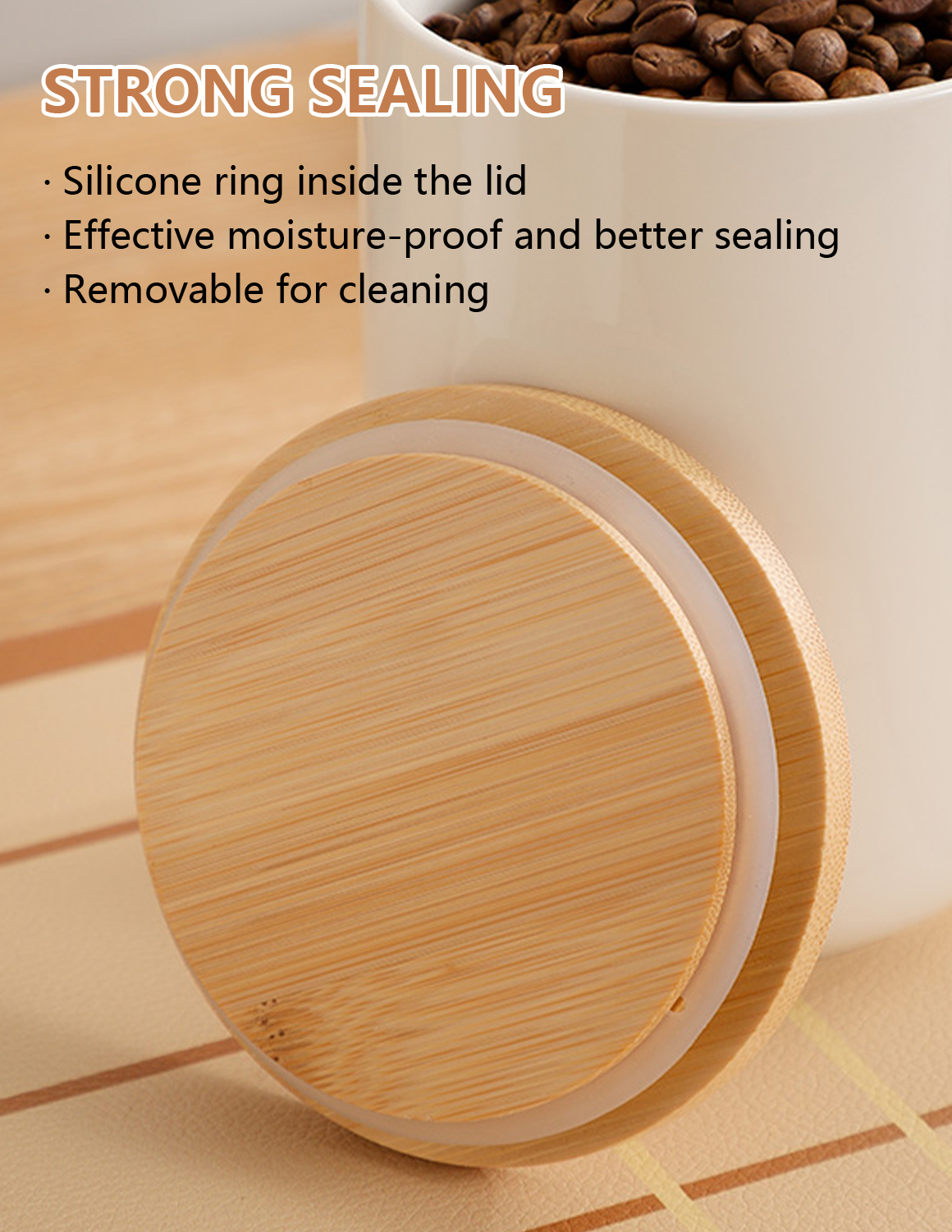 Bamboo & Ceramics Storage Jar Solid white PC