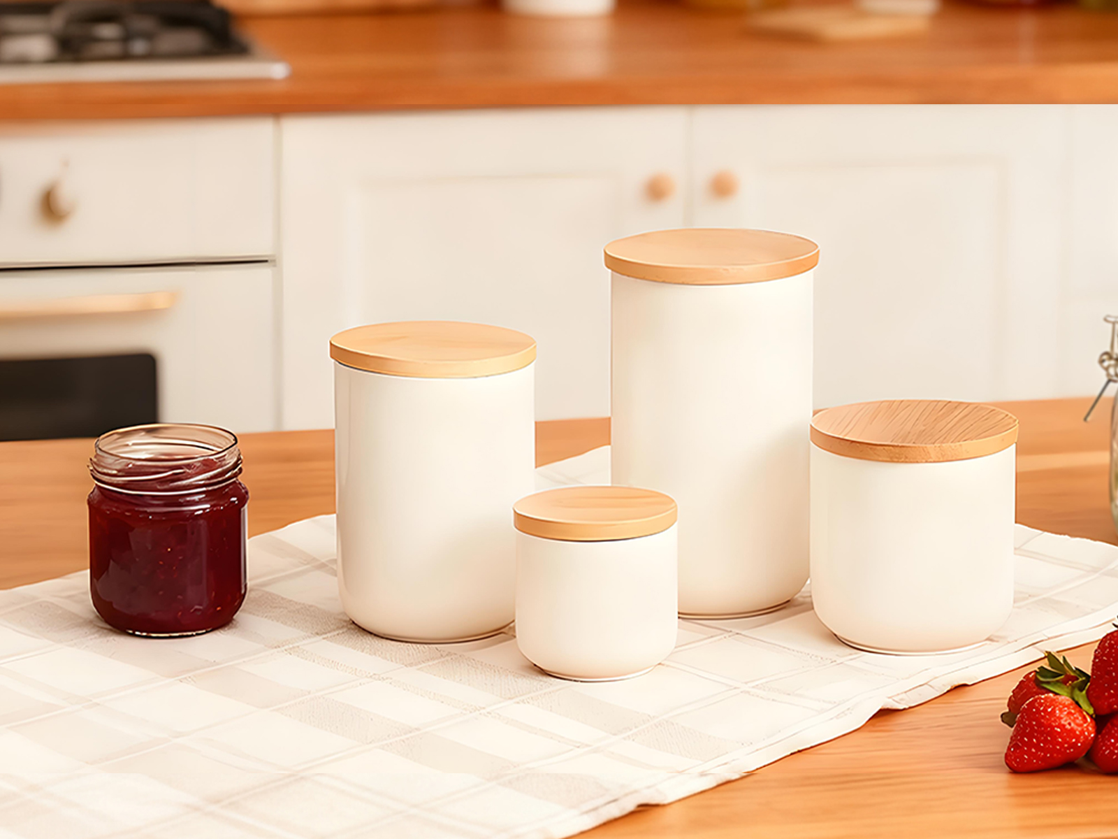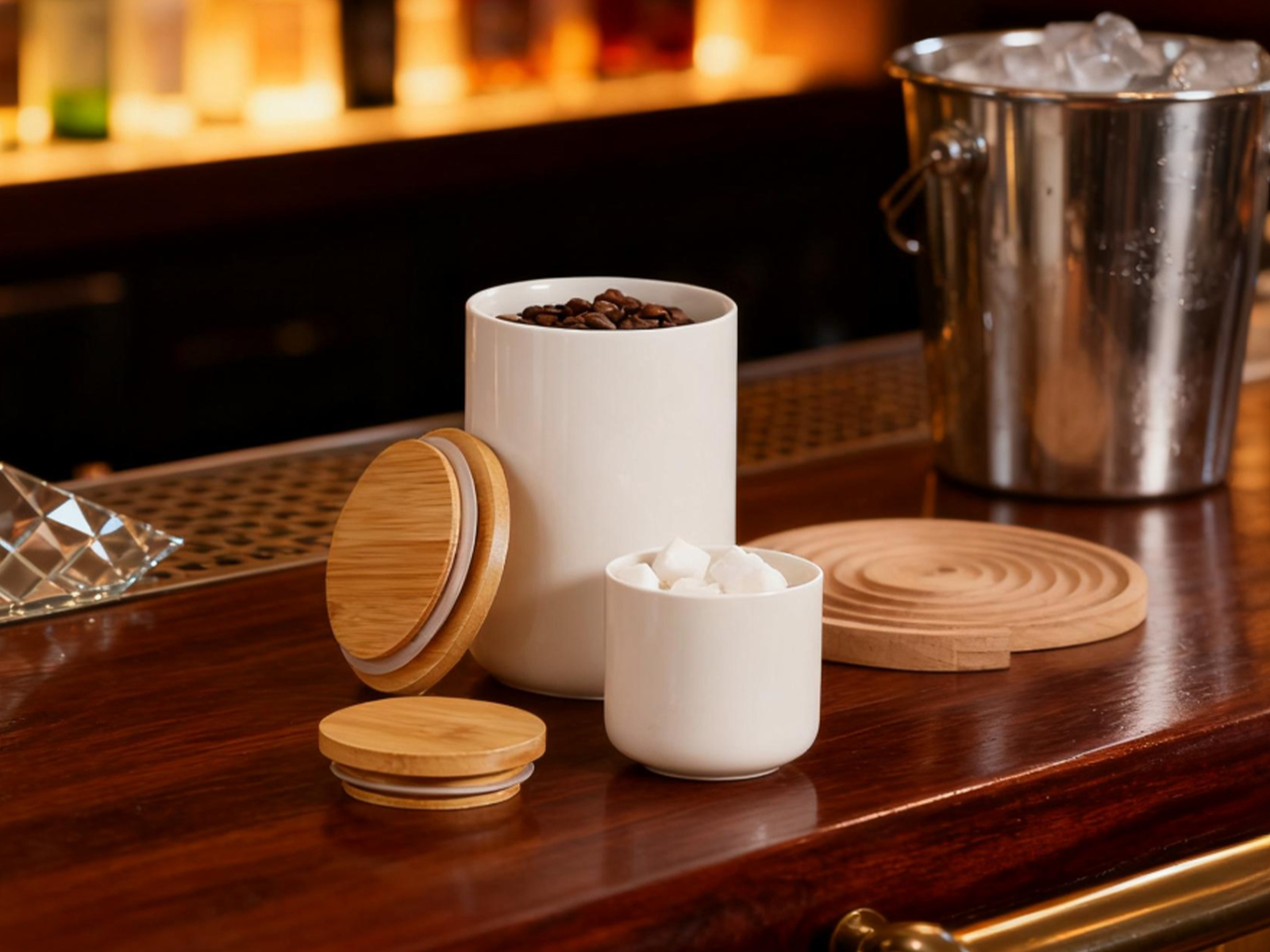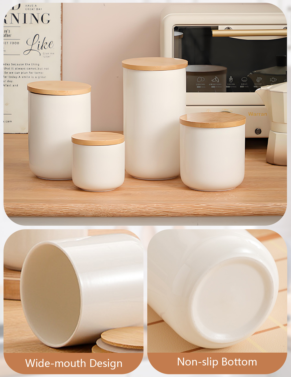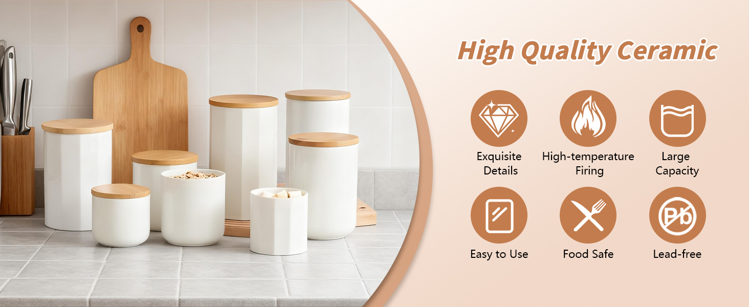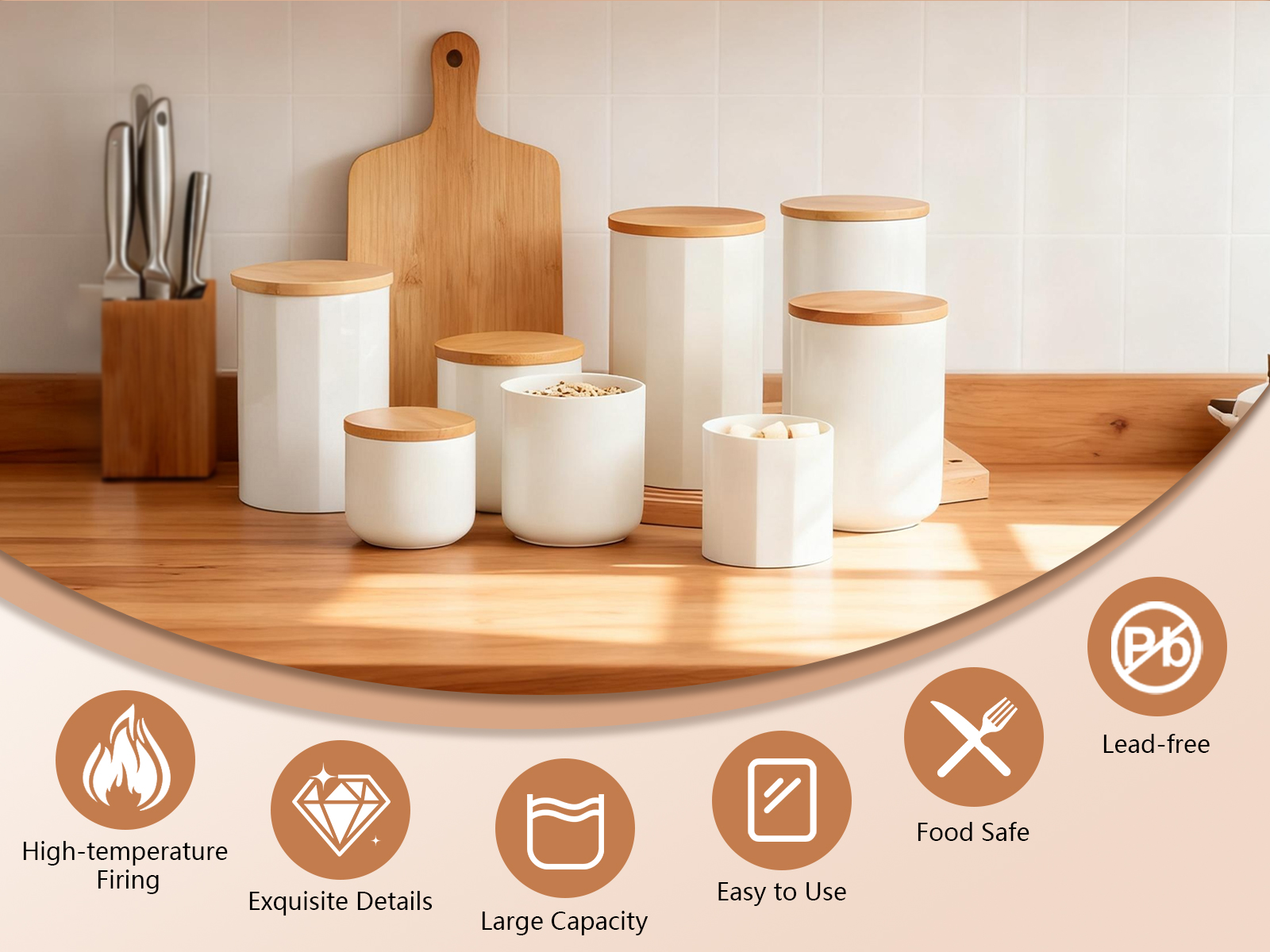 Bamboo & Ceramics Storage Jar Solid white PC