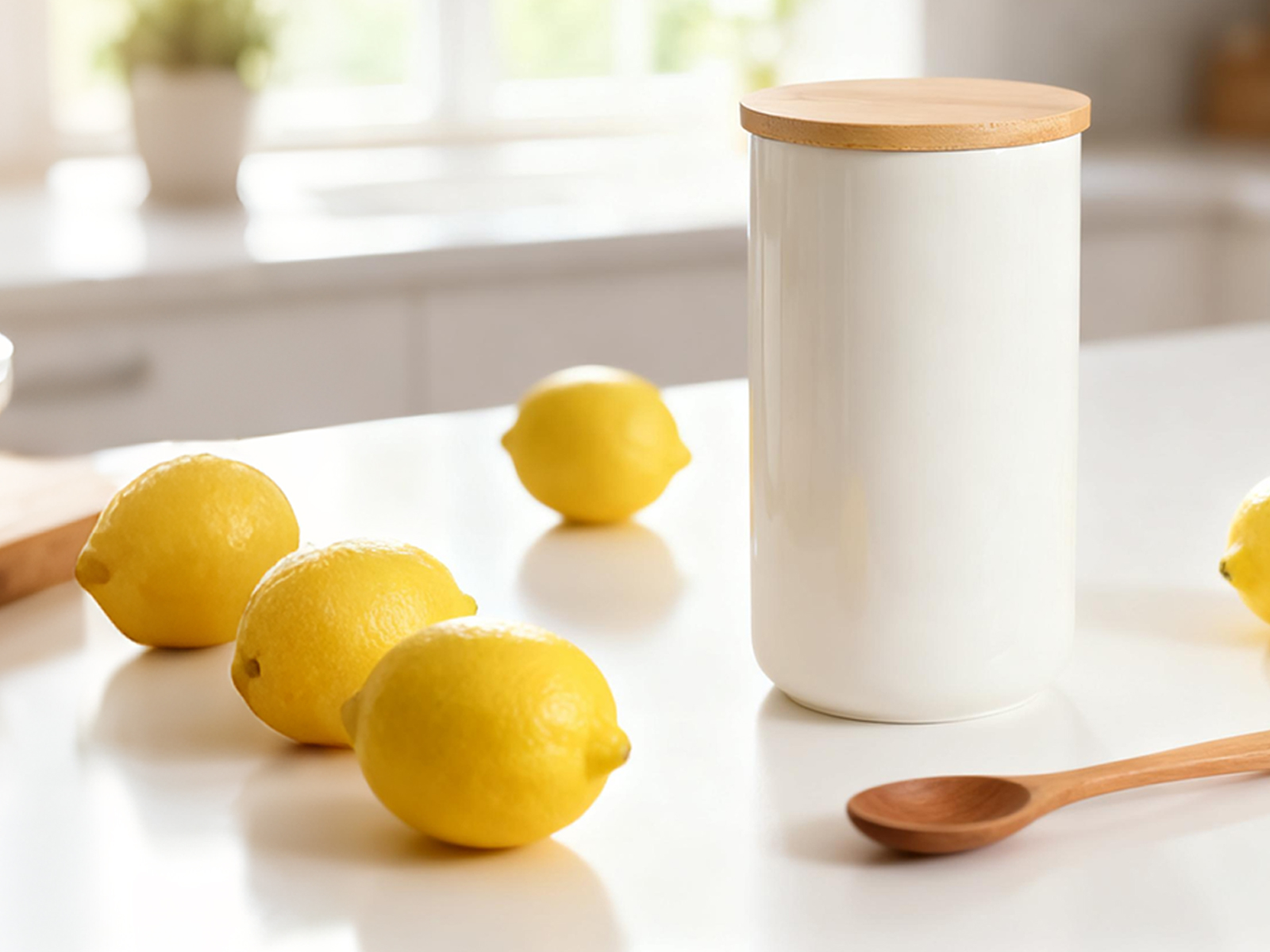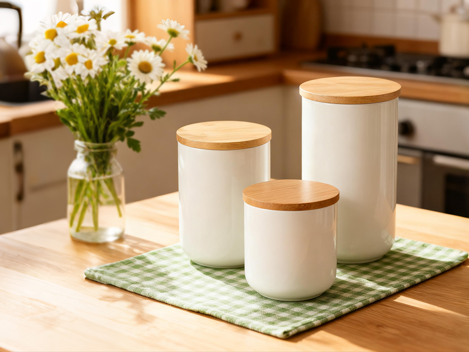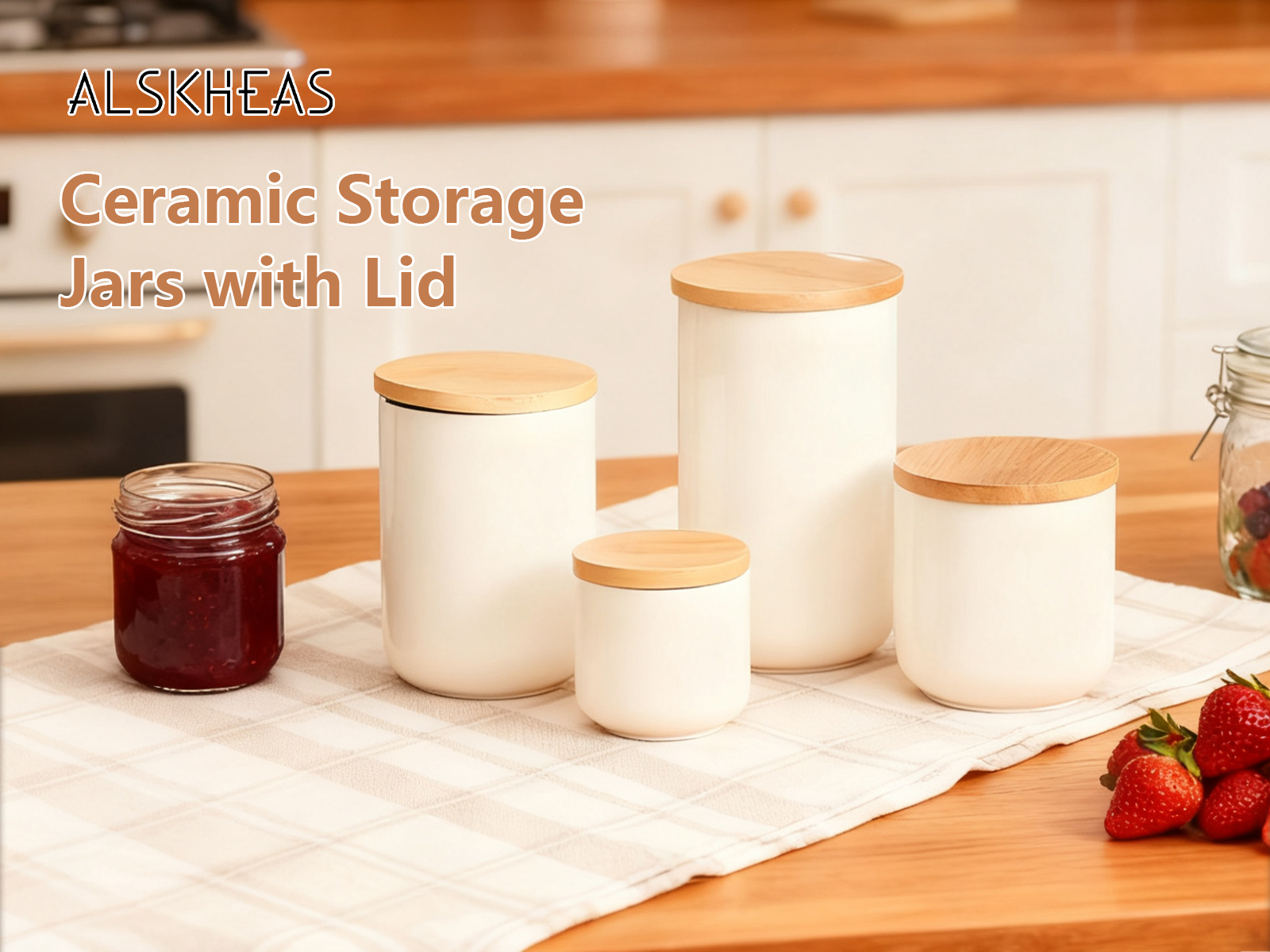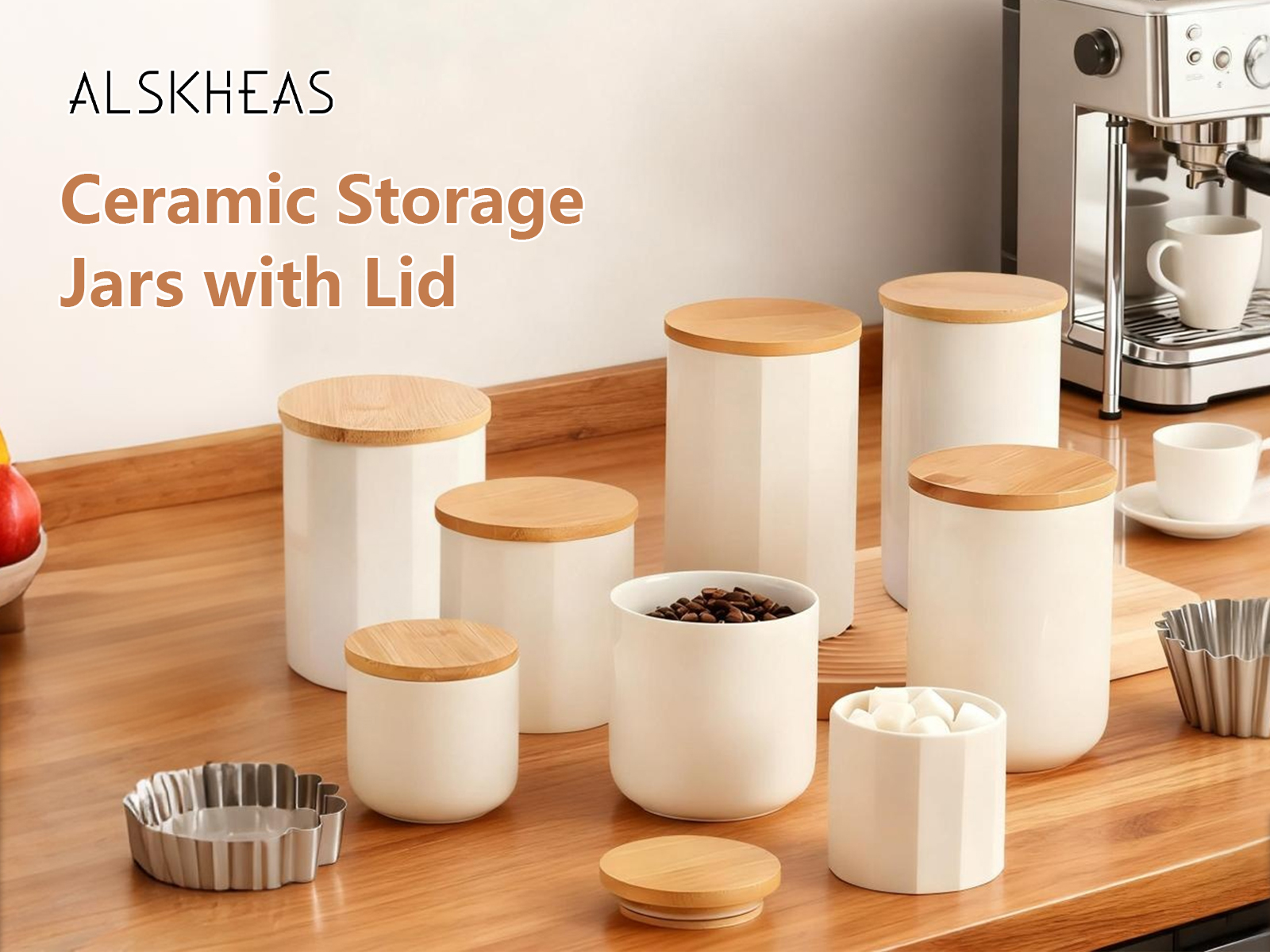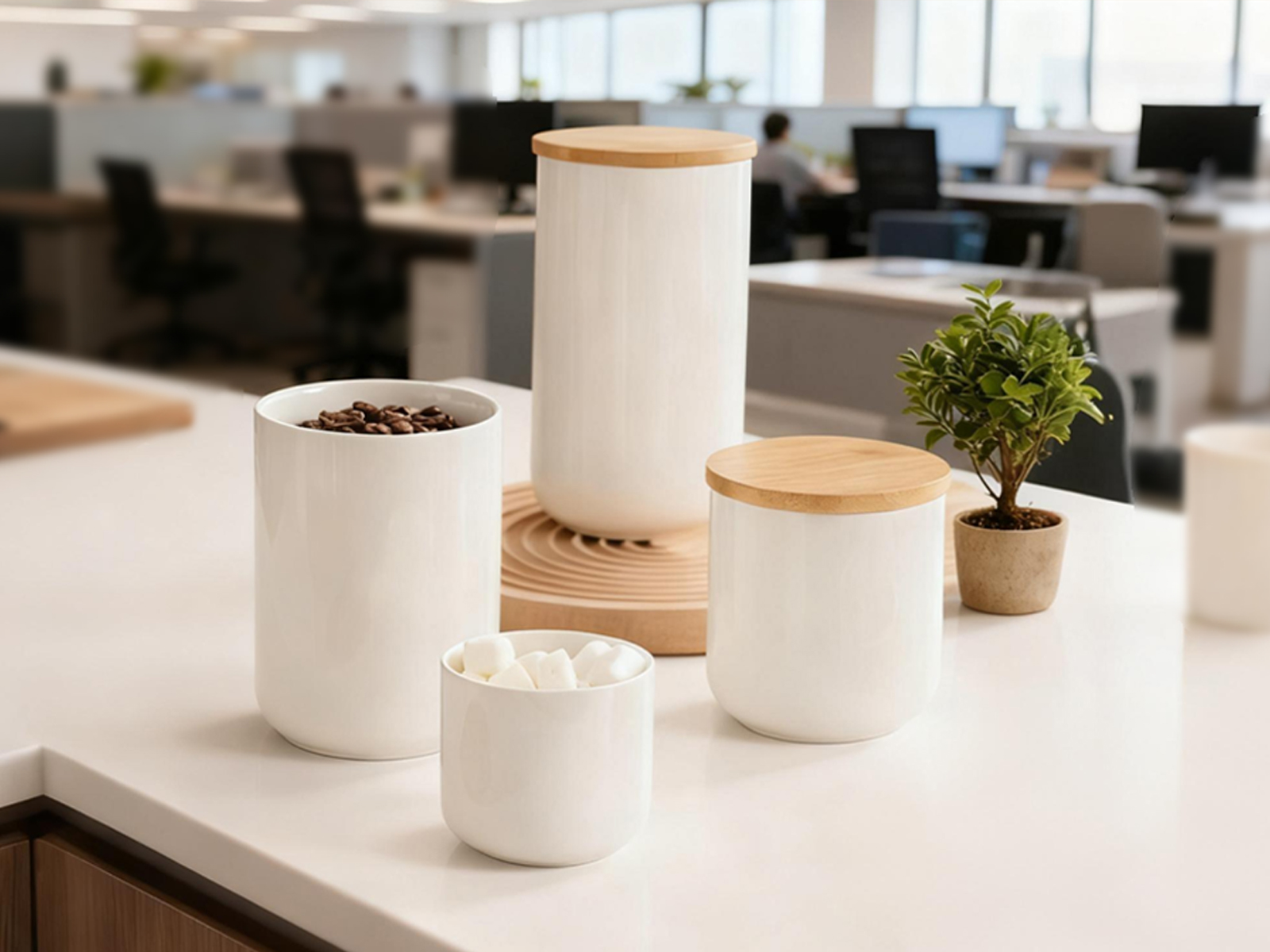 Bamboo & Ceramics Storage Jar Solid white PC