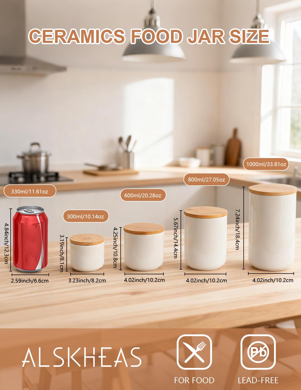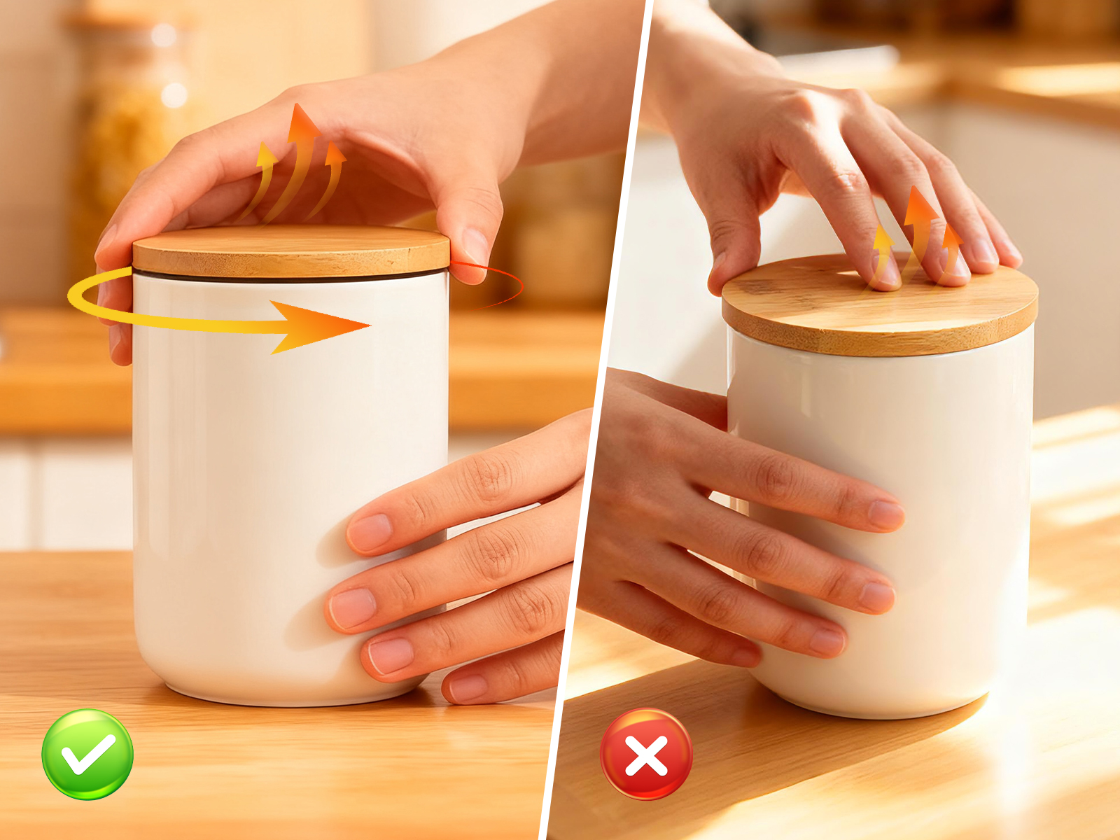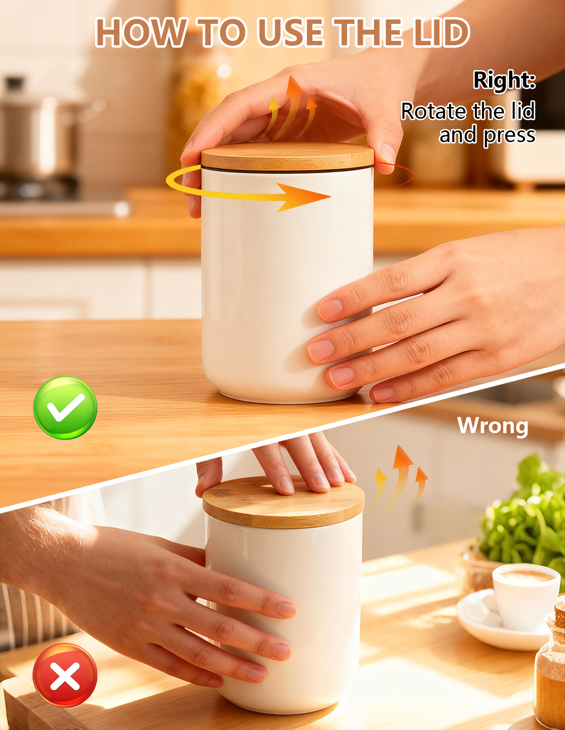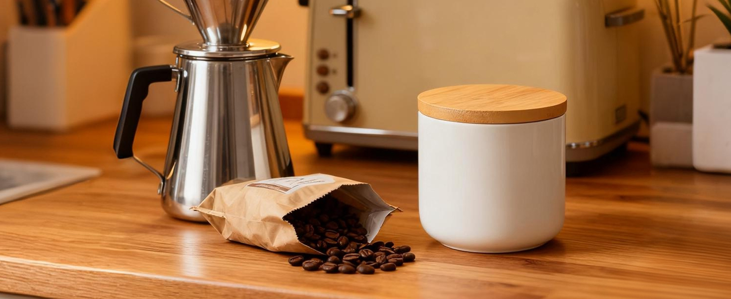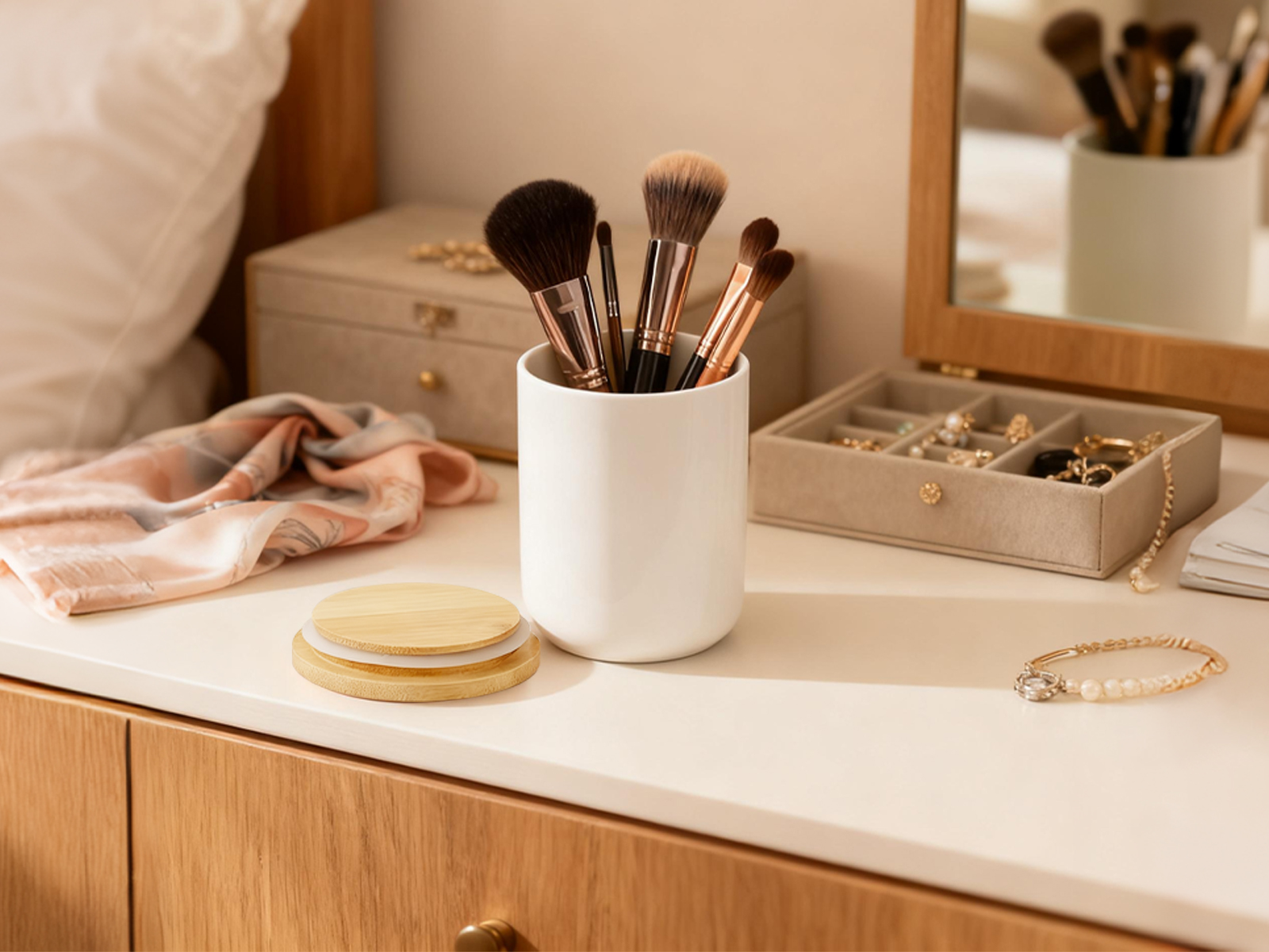Bamboo & Ceramics Storage Jar Solid white PC