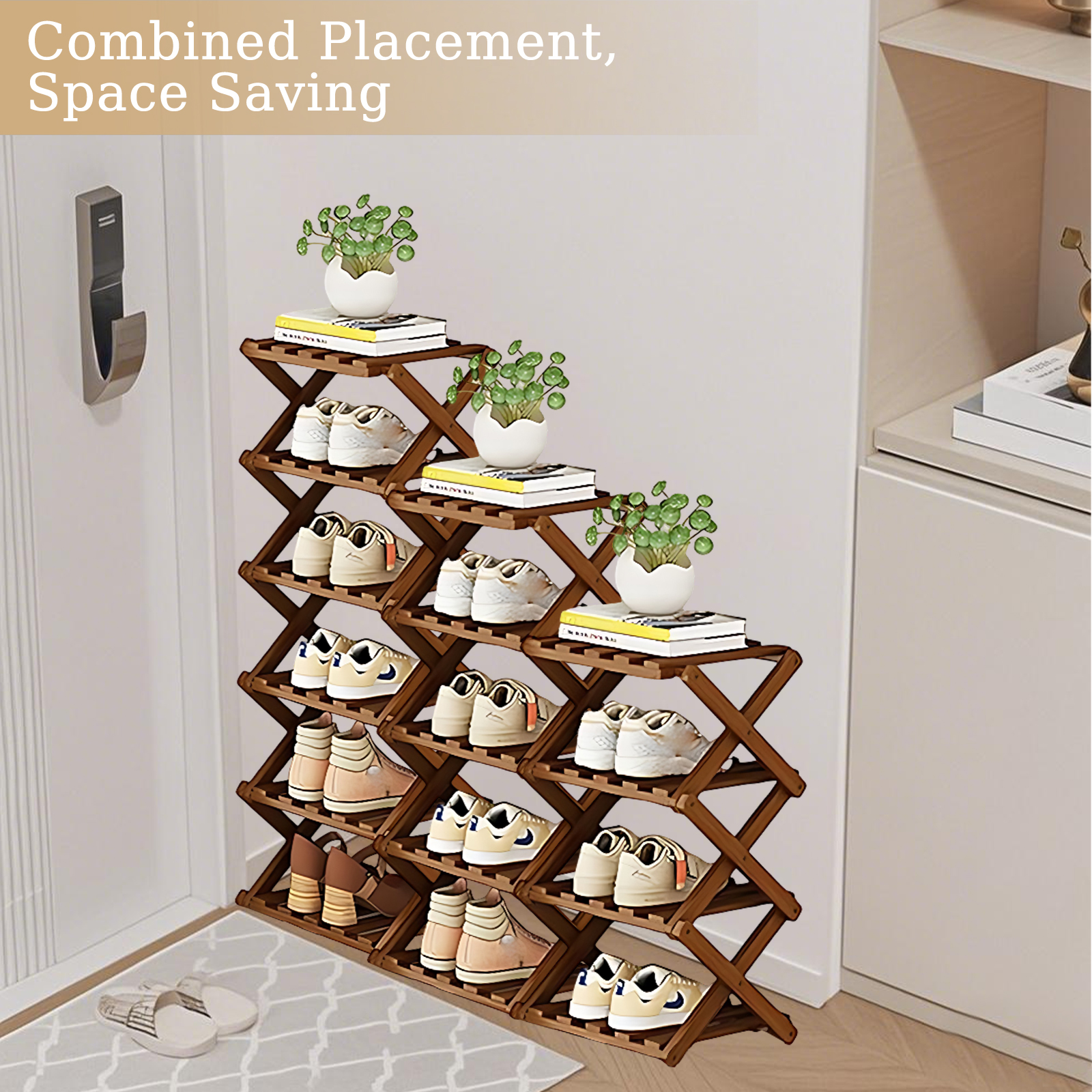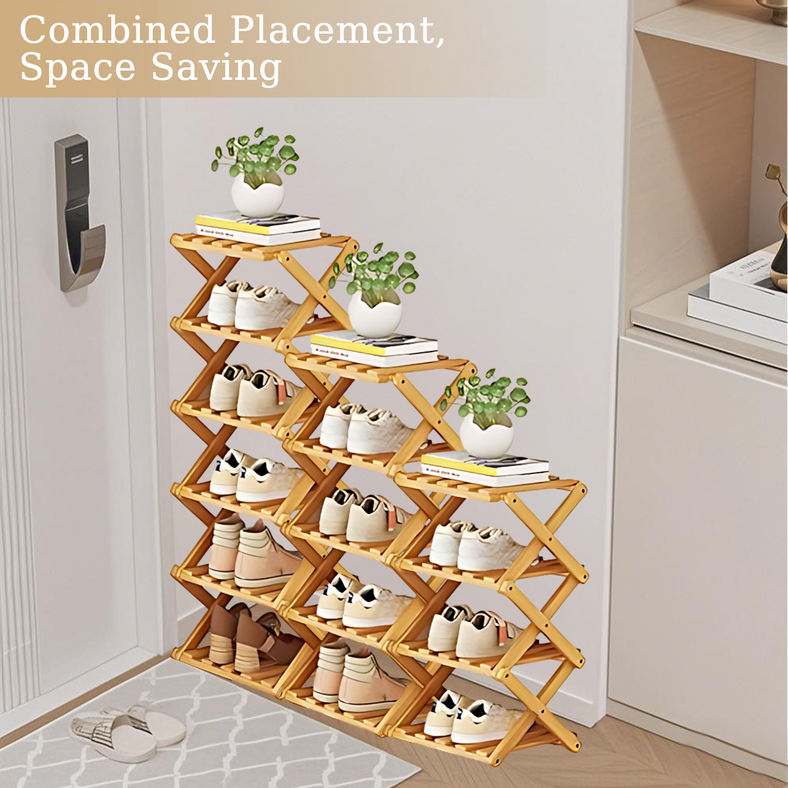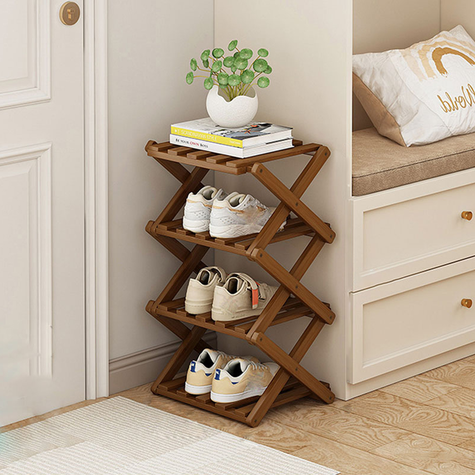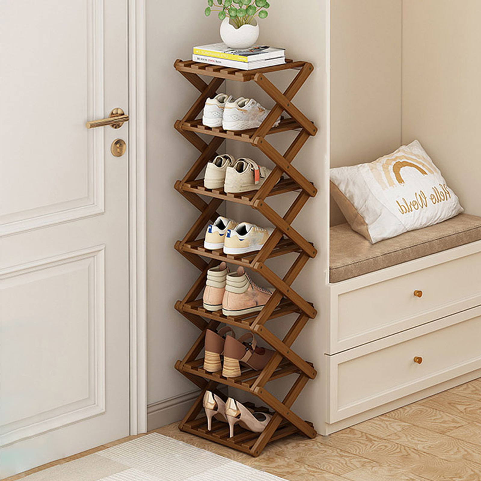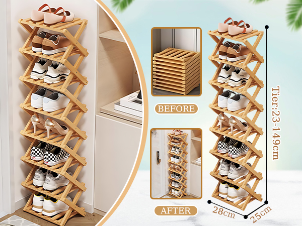 Bamboo foldable Shoes Rack Organizer for storage PC
