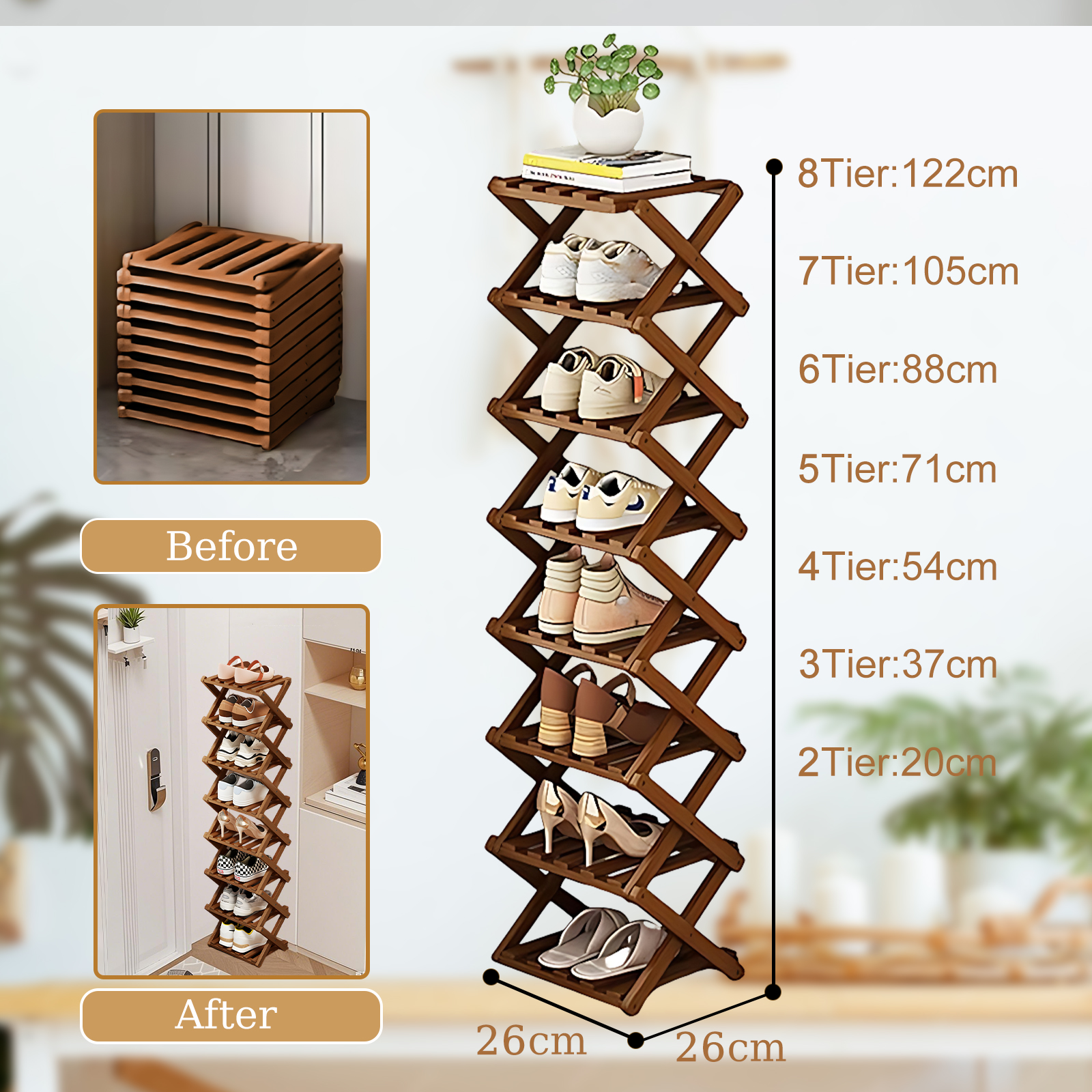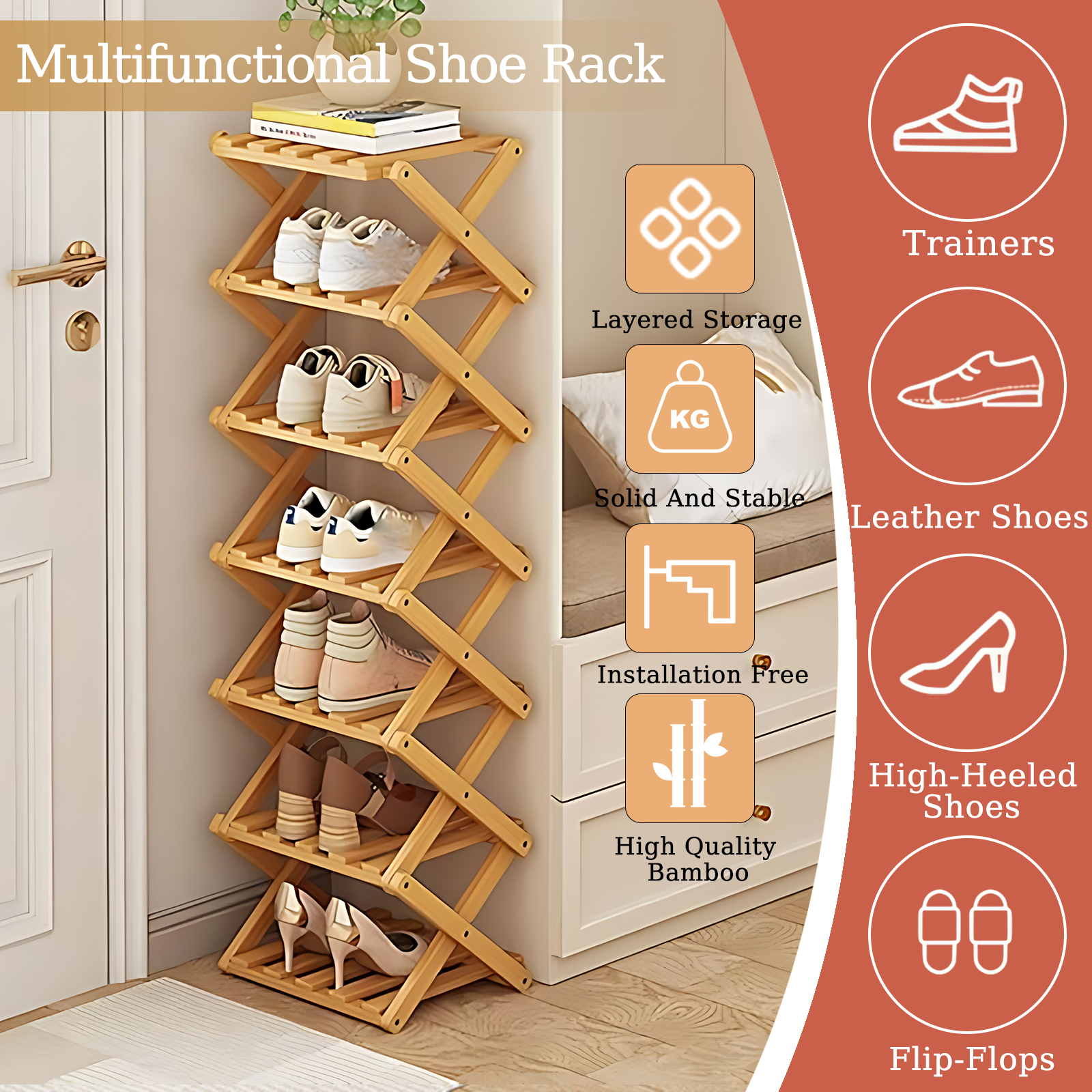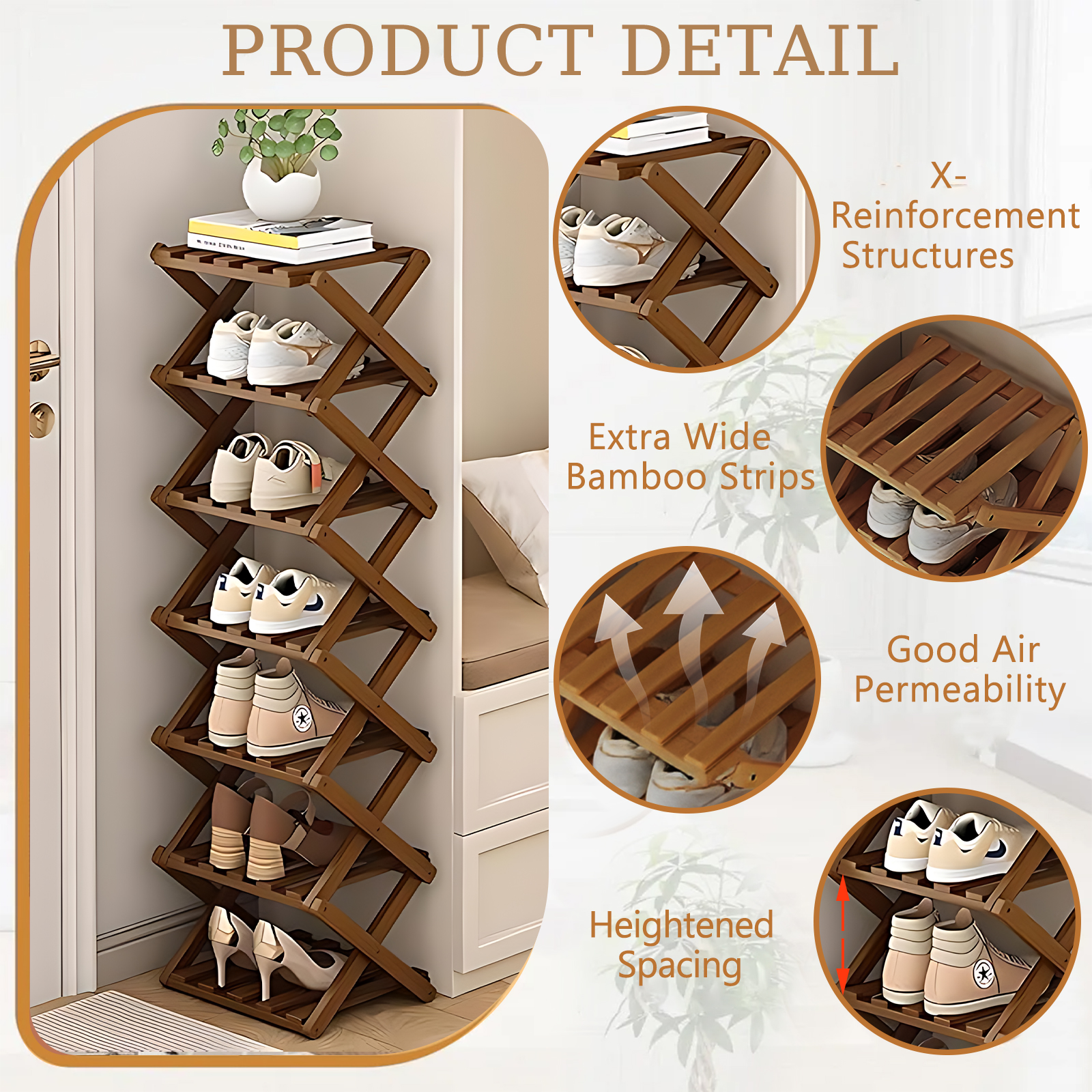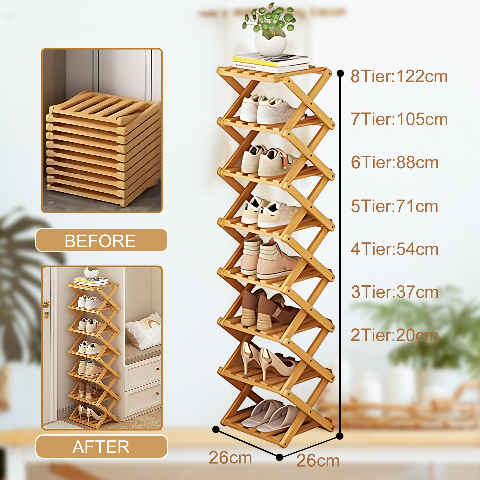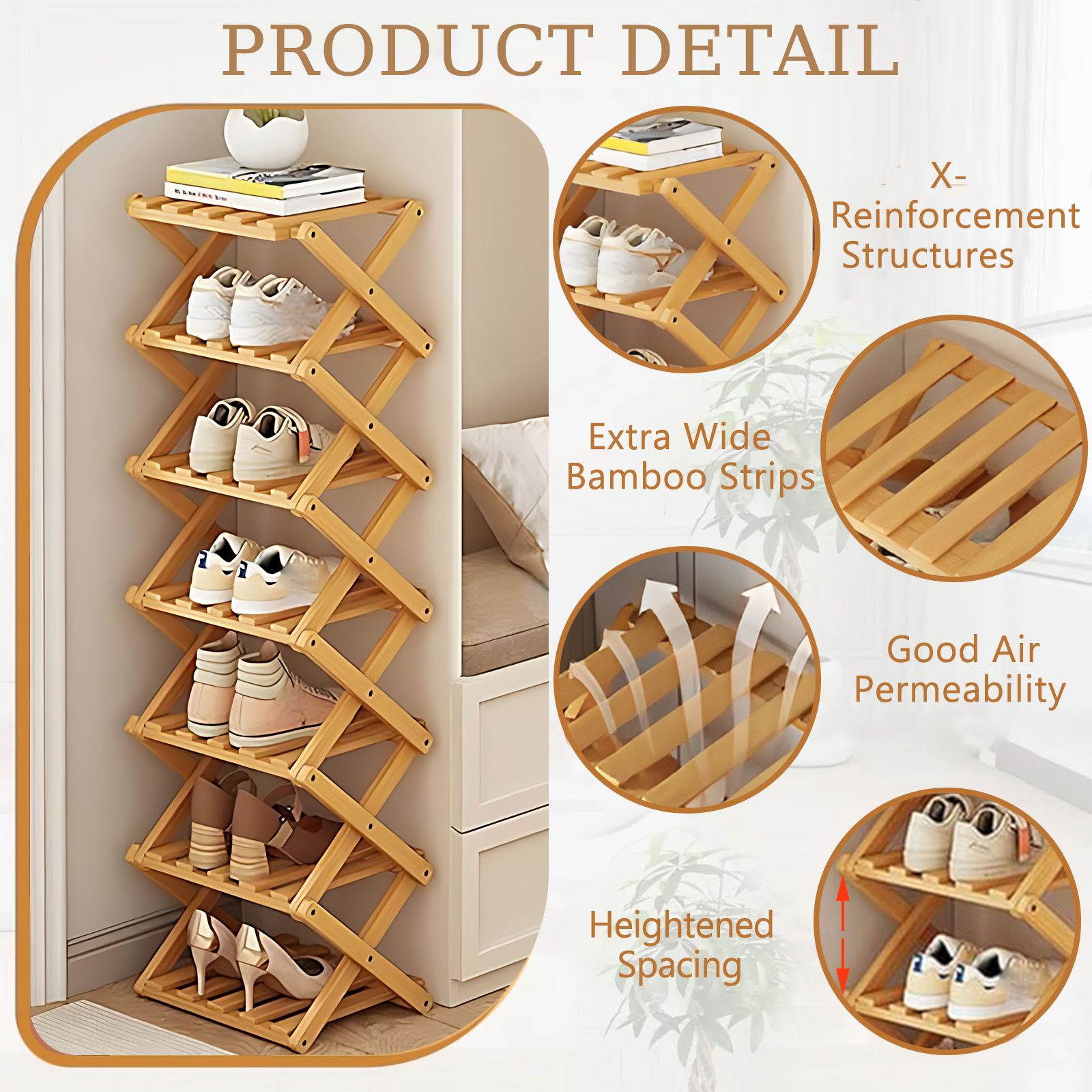 Bamboo foldable Shoes Rack Organizer for storage PC