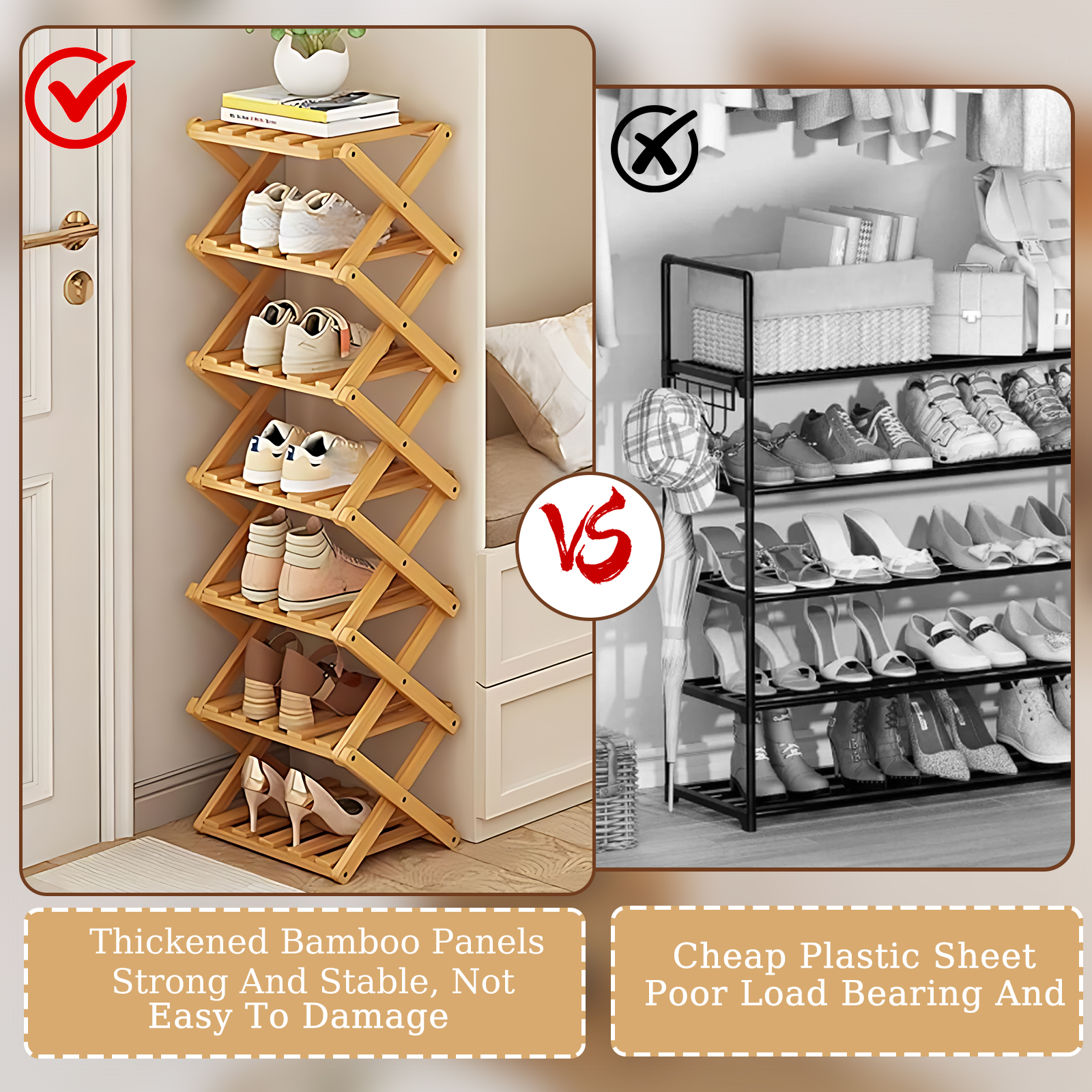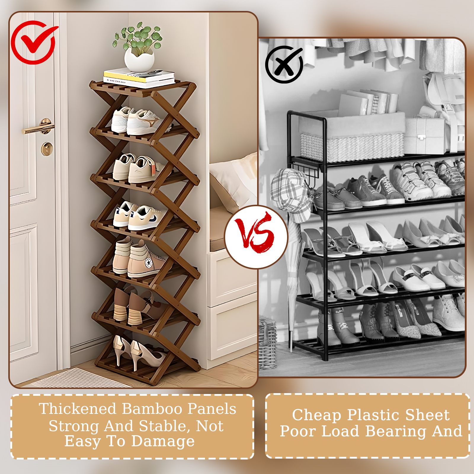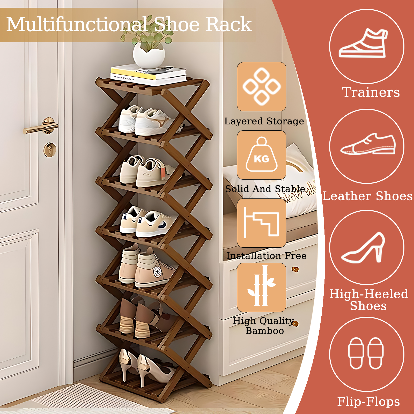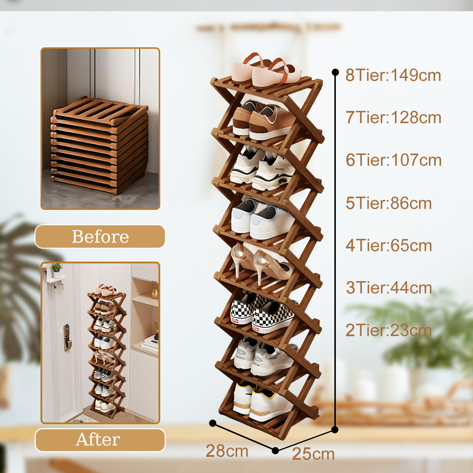 Bamboo foldable Shoes Rack Organizer for storage PC
