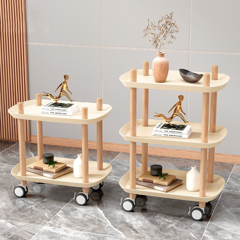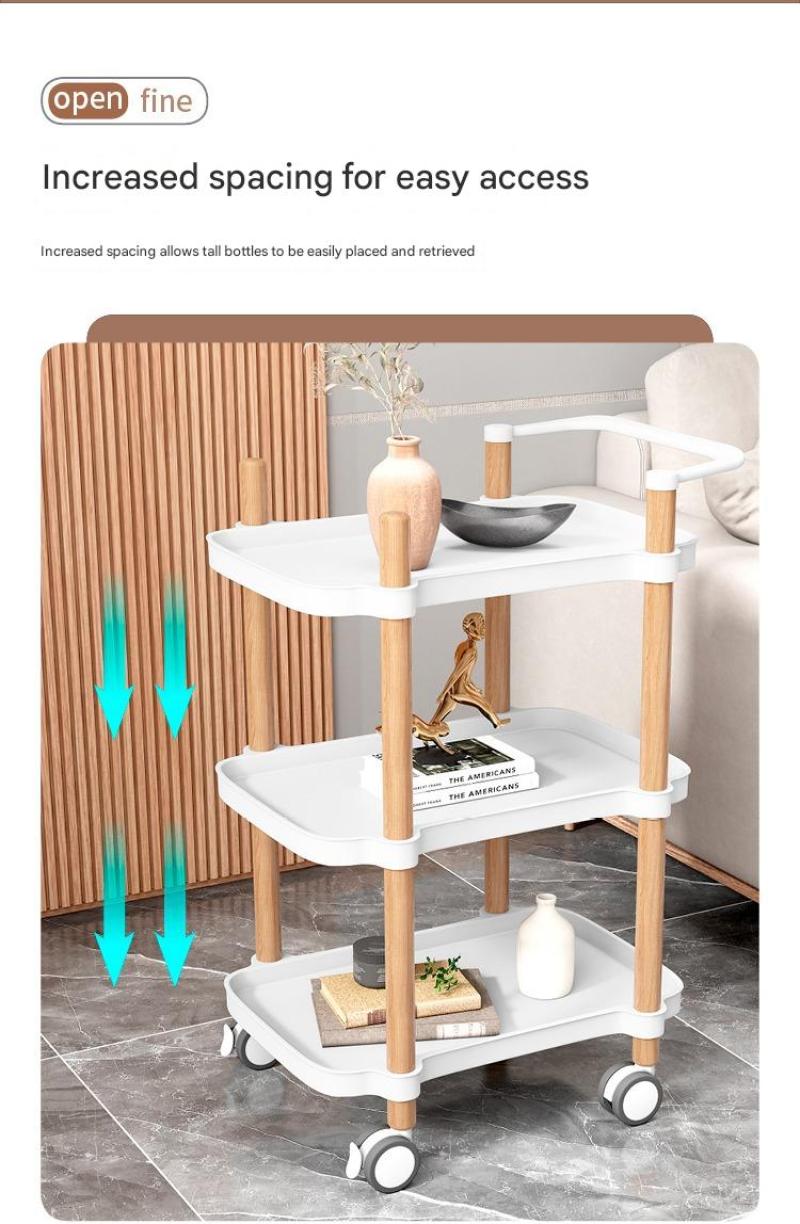 Trolley Beech Household Tool Cart Side Table Storage Rack Ultra-quiet Storage Cart