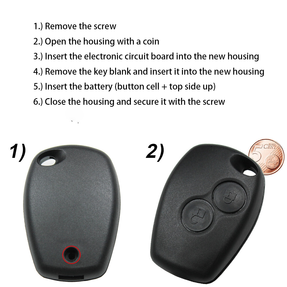 Car Key Shell Case Set Fits Dacia Renault Twingo II Clio Kangoo Wind