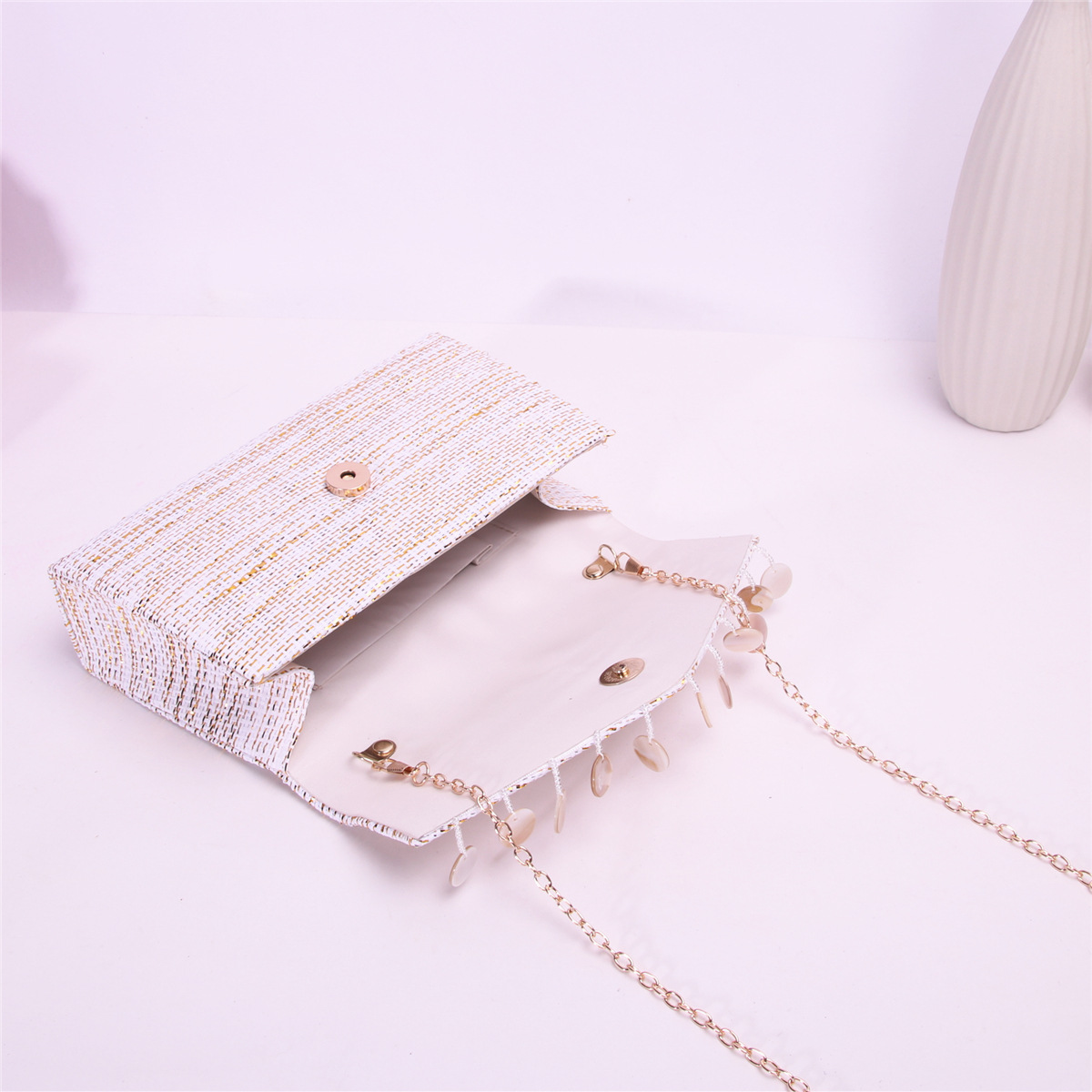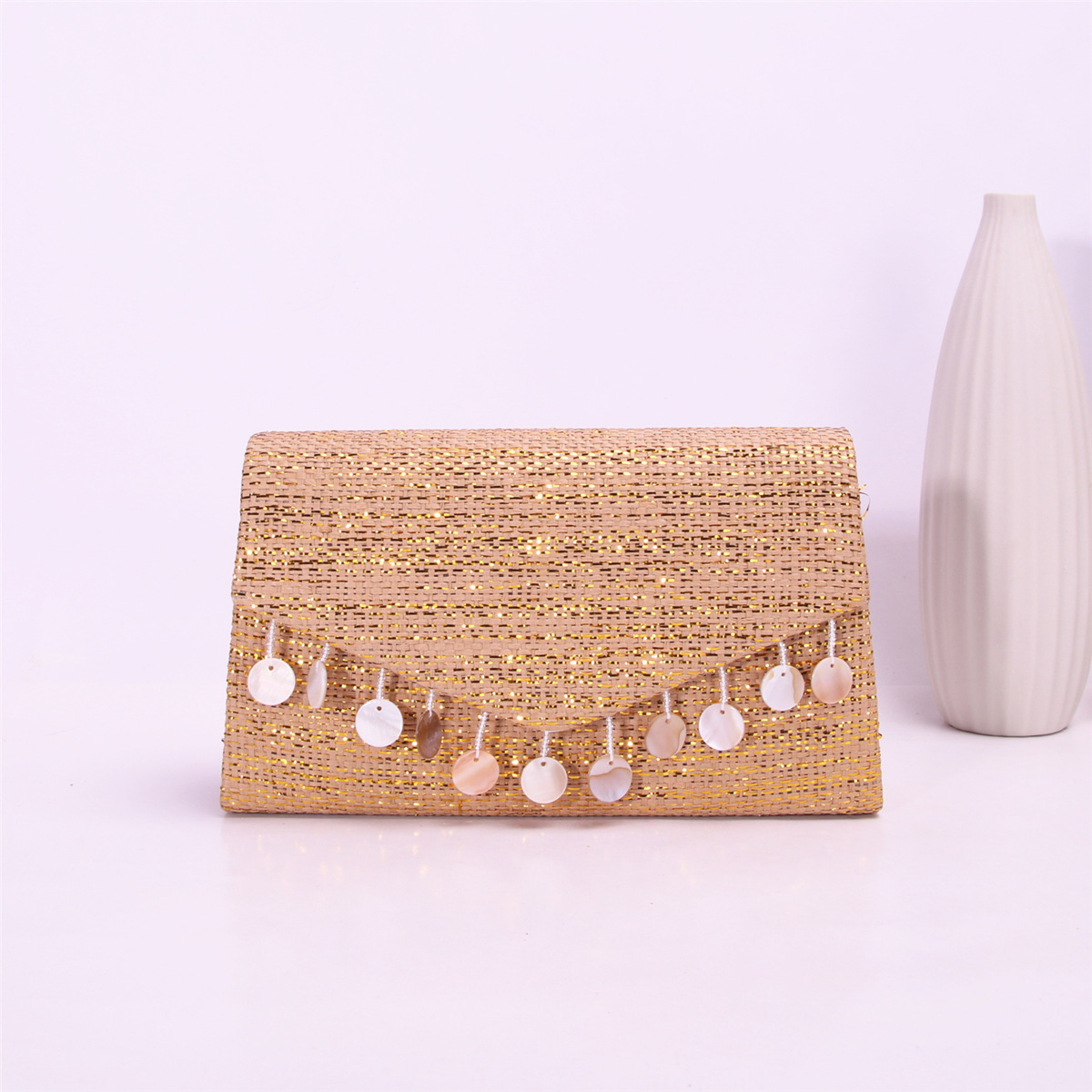 Straw Clutch Bag, attached with hanging strap,  Cotton, more colors for choice,  PC