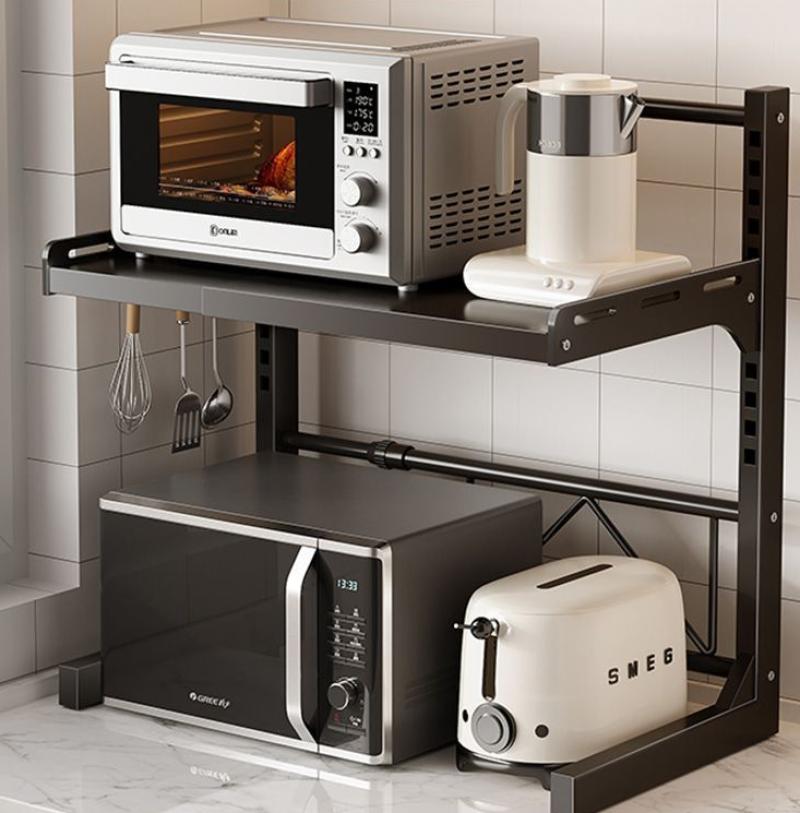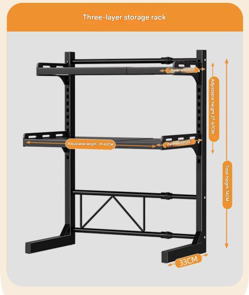 Carbon Steel Multilayer Kitchen Shelf stretchable black PC