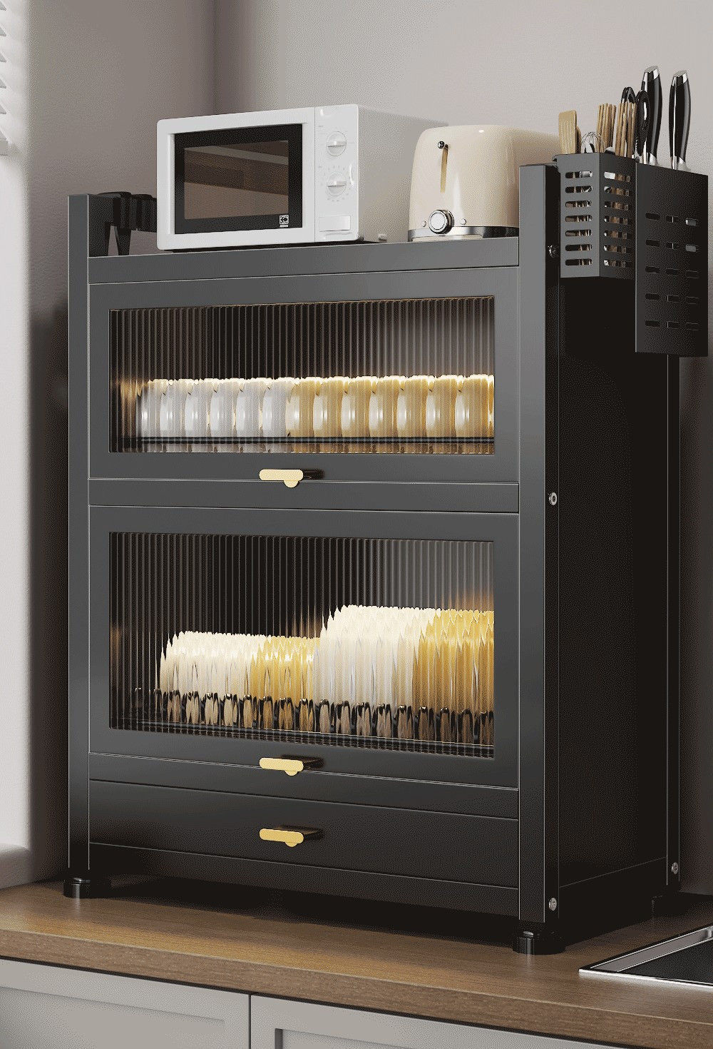 Carbon Steel & PC-Polycarbonate Multifunction Kitchen Storage Cabinet dustproof PC