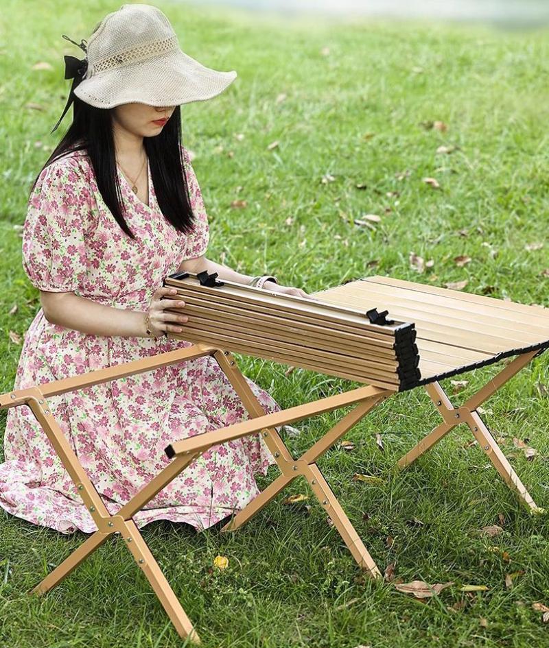 Medium 60cm wood grain tableLarge 90cm wood grain tableXL 120cm wood grain tableKhaki medium kermit chairKhaki large kermit chair