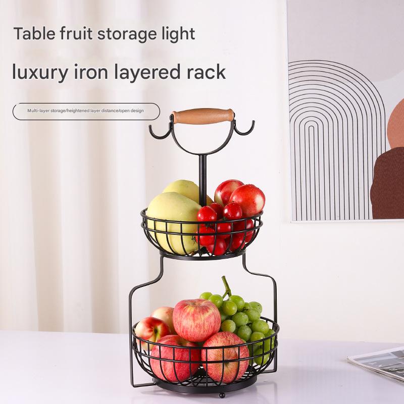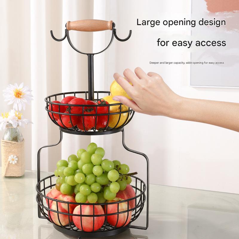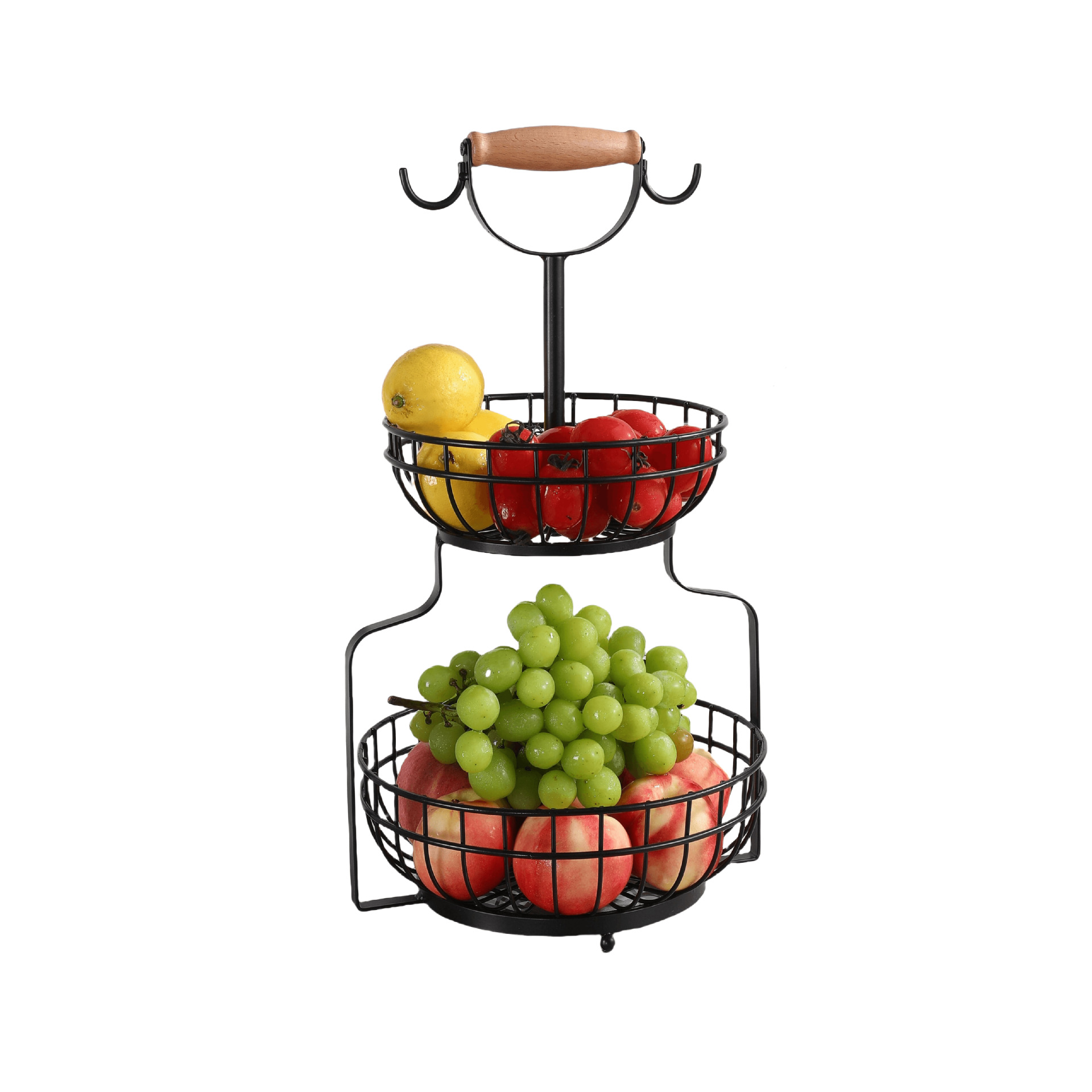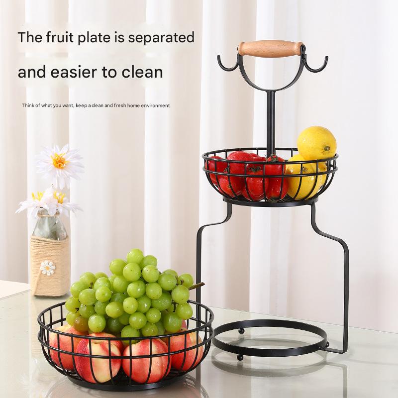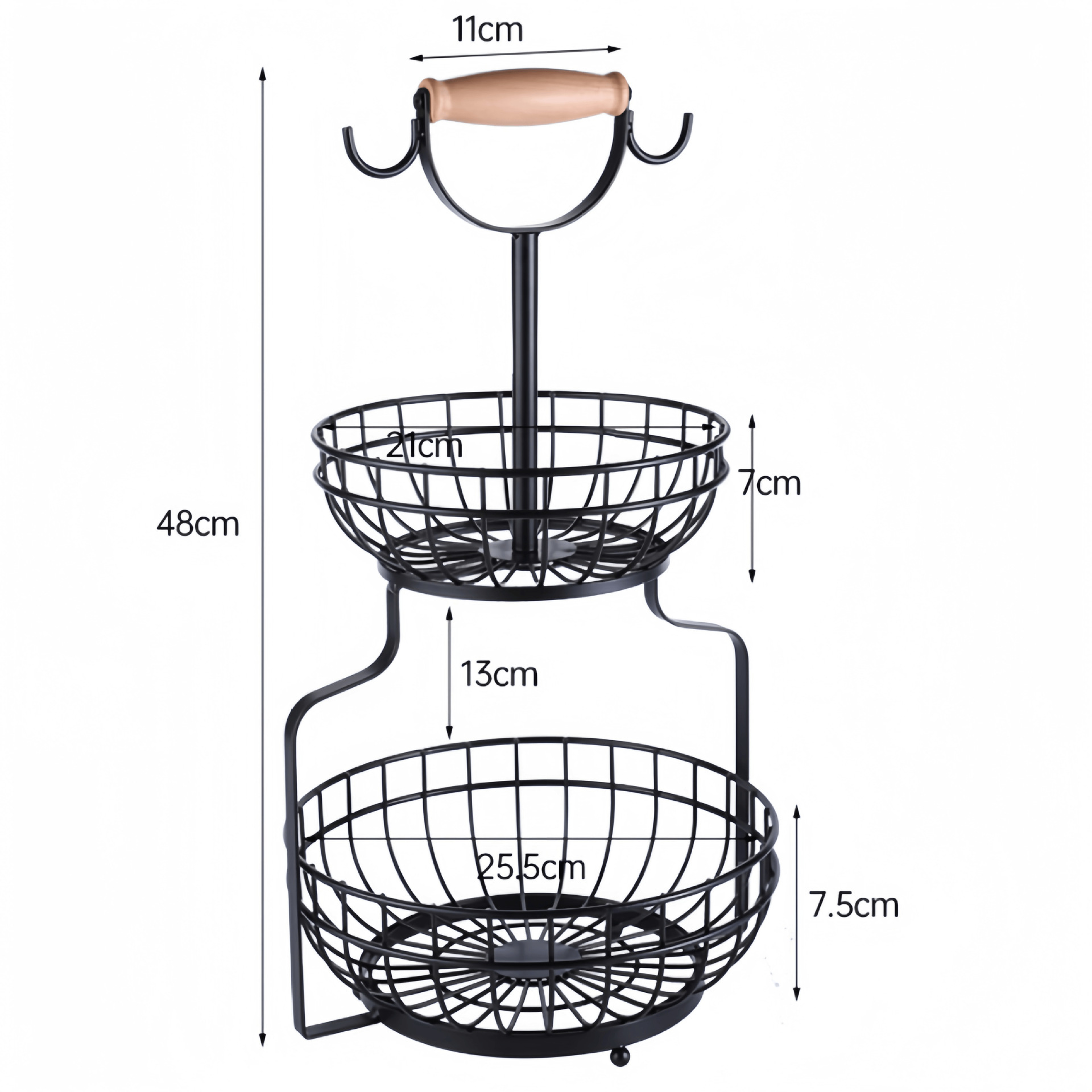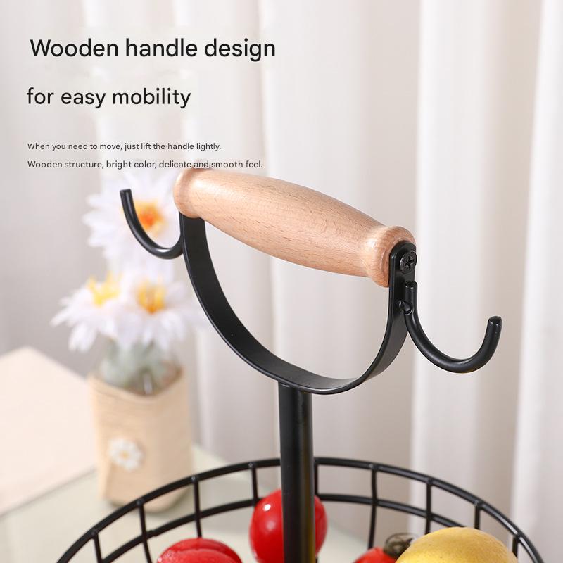 Carbon Steel & Wood Fruit Baskets double layer & detachable PC