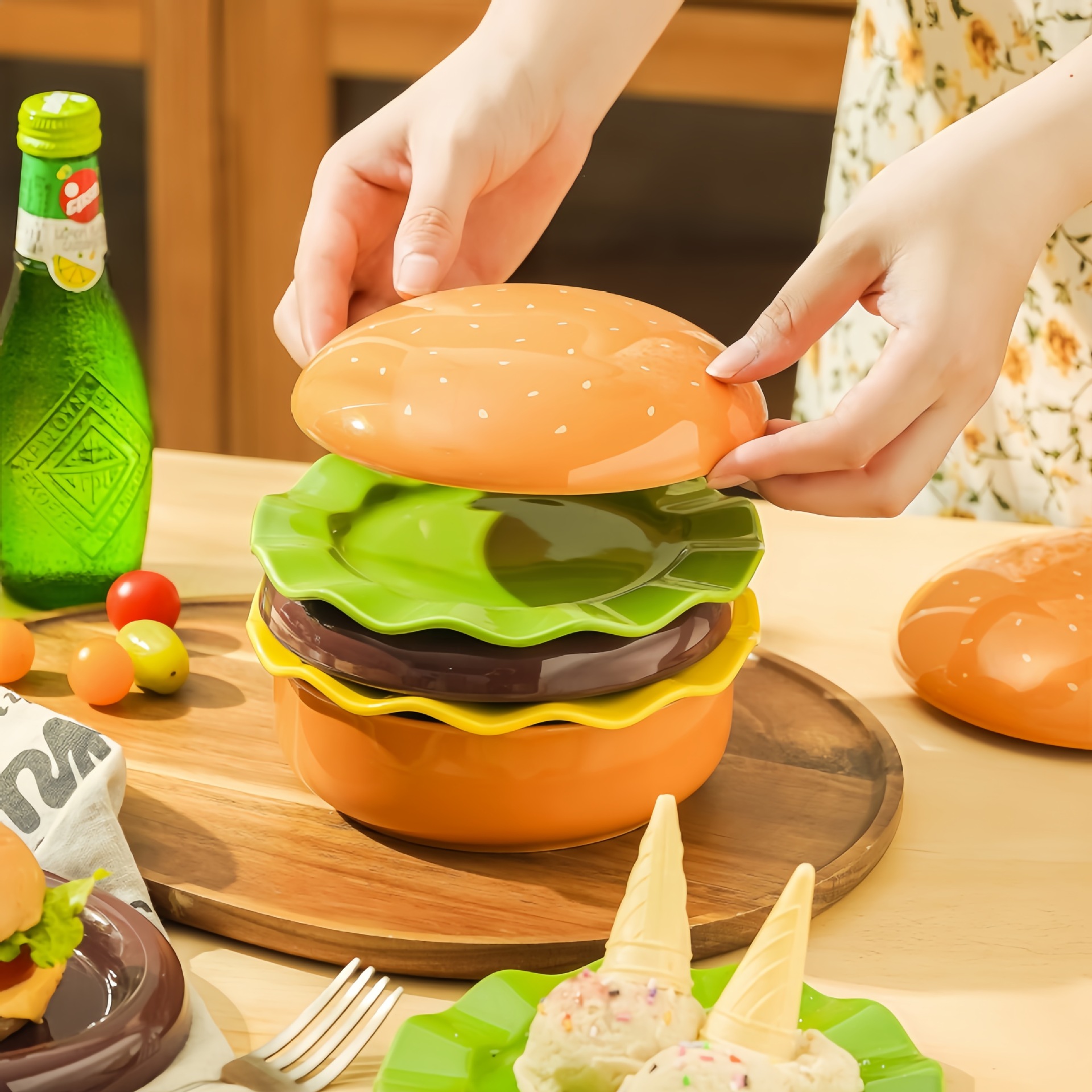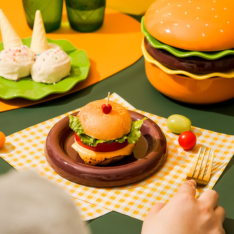 Ceramics Cutlery Set durable & Cute & five piece hamburg pattern mixed colors PC