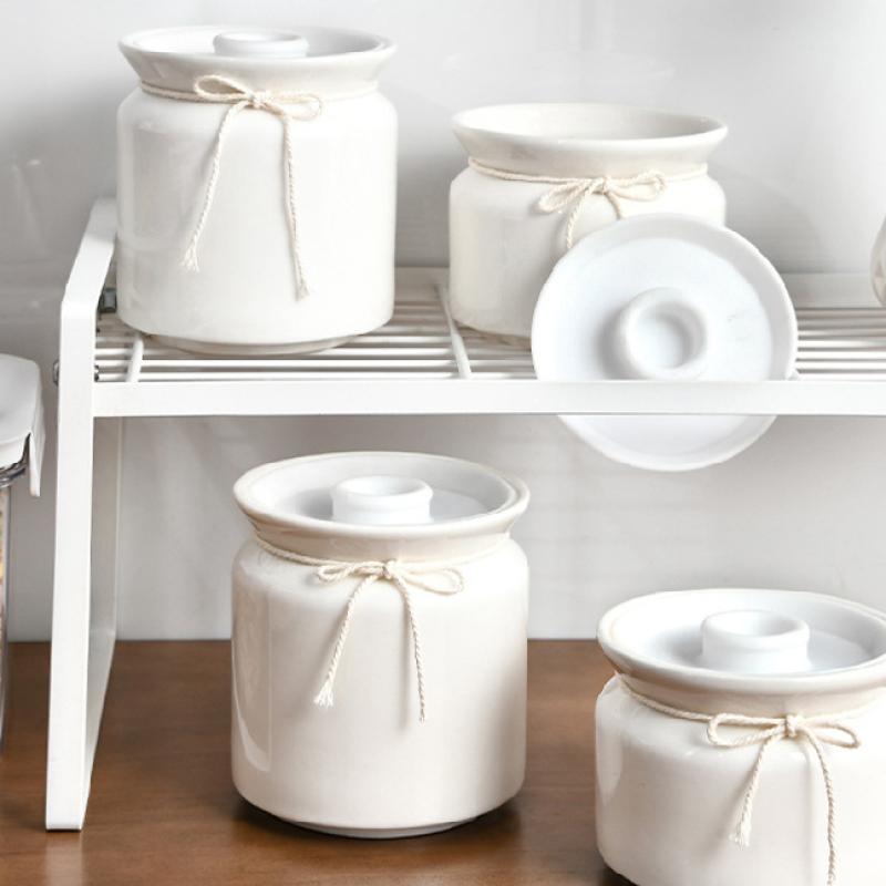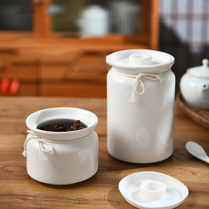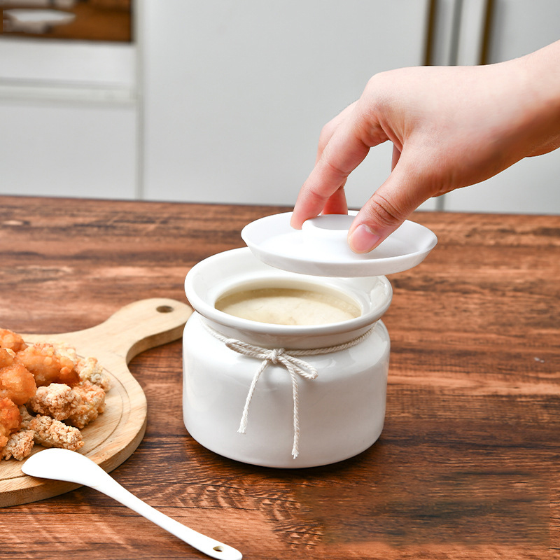 Ceramics & Silicone antibacterial & dampproof & thermostability Cruet for storage & tight seal Solid white PC