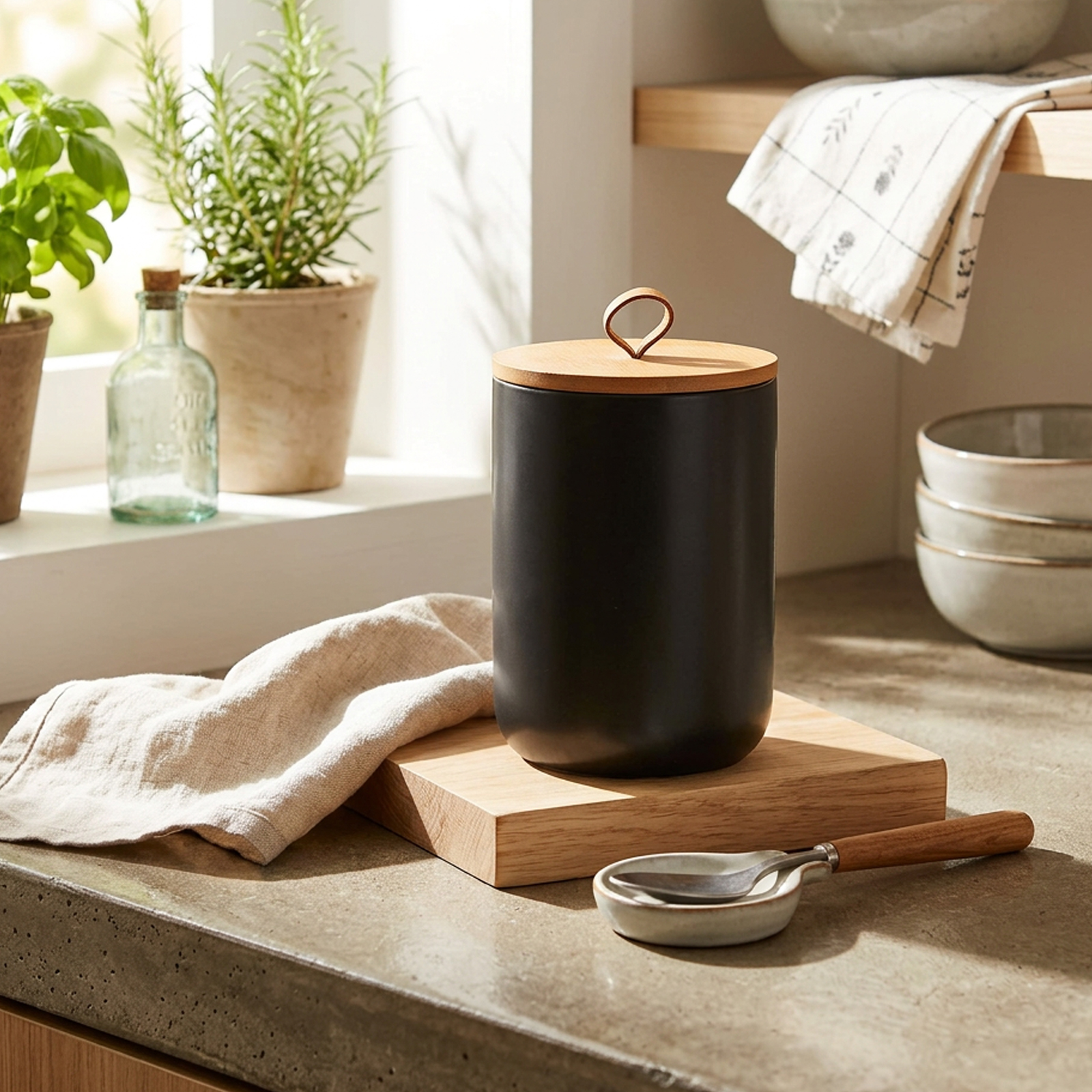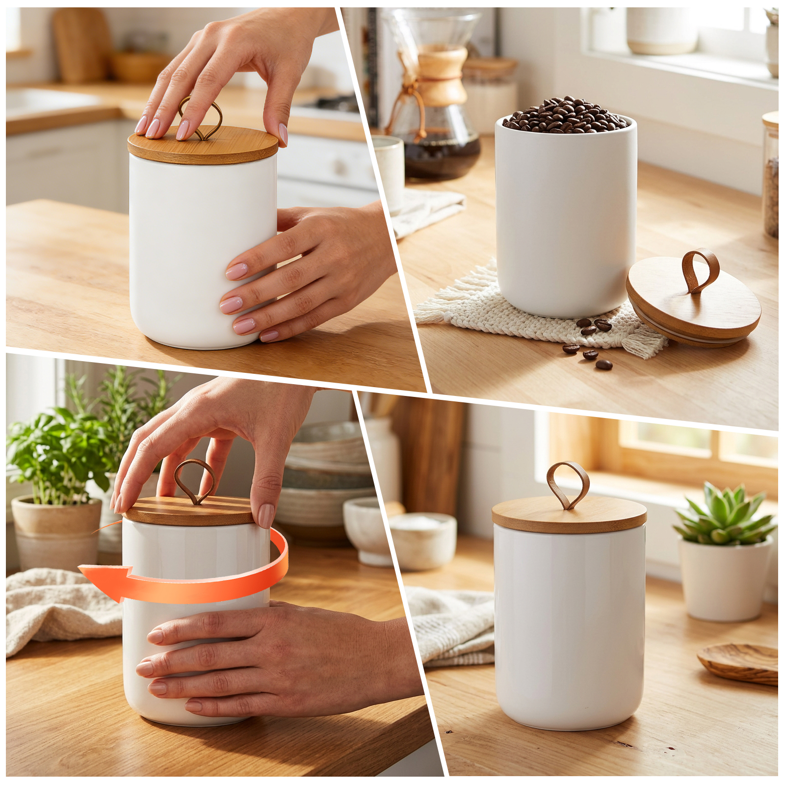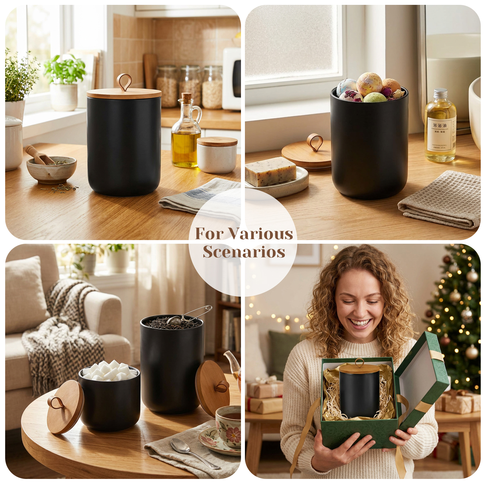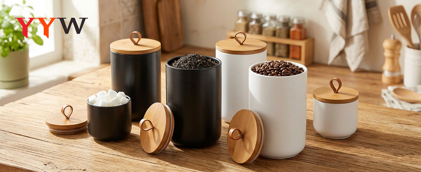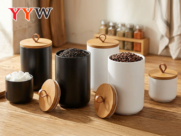 Ceramics & Wood Storage Jar dustproof Solid PC