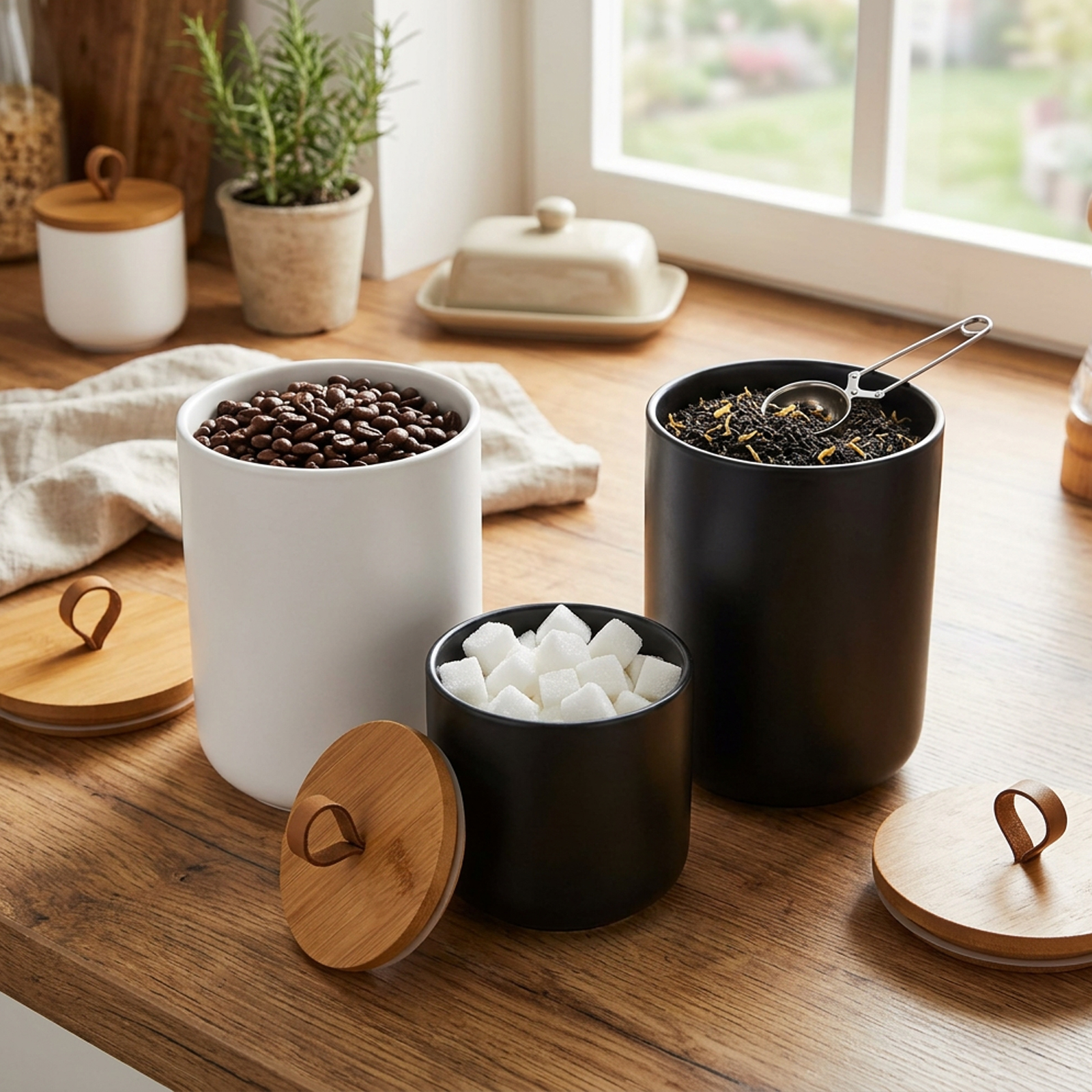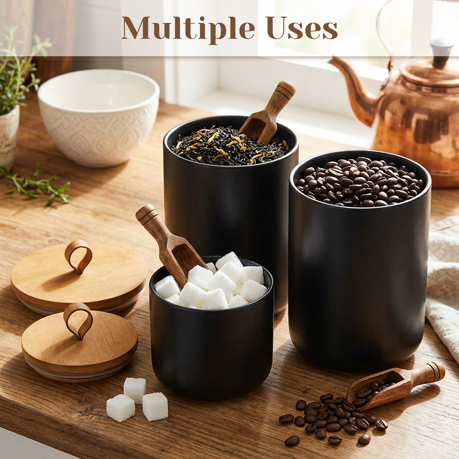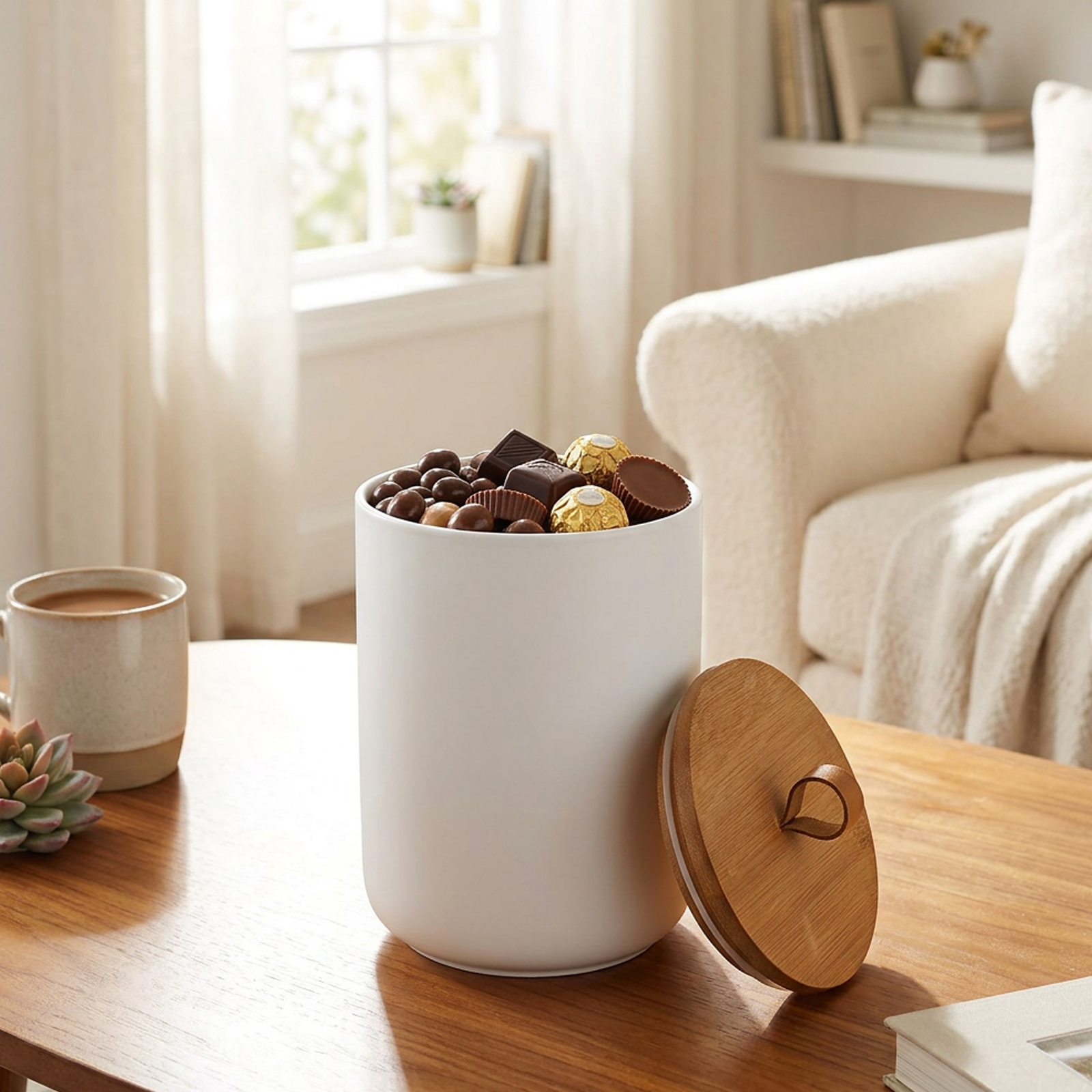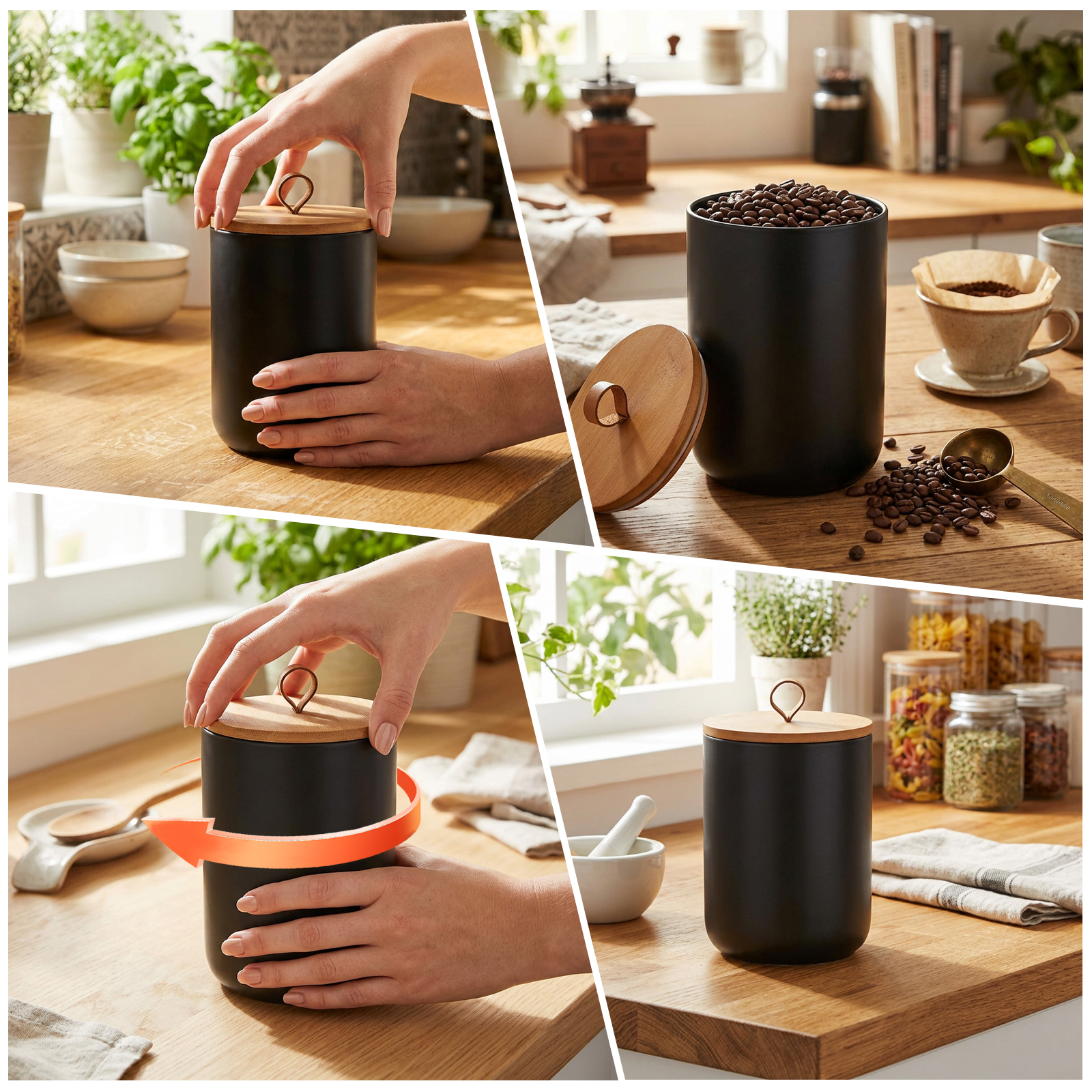Ceramics & Wood Storage Jar dustproof Solid PC