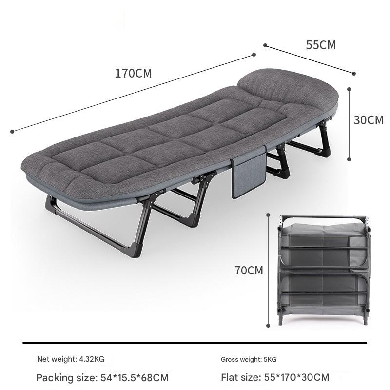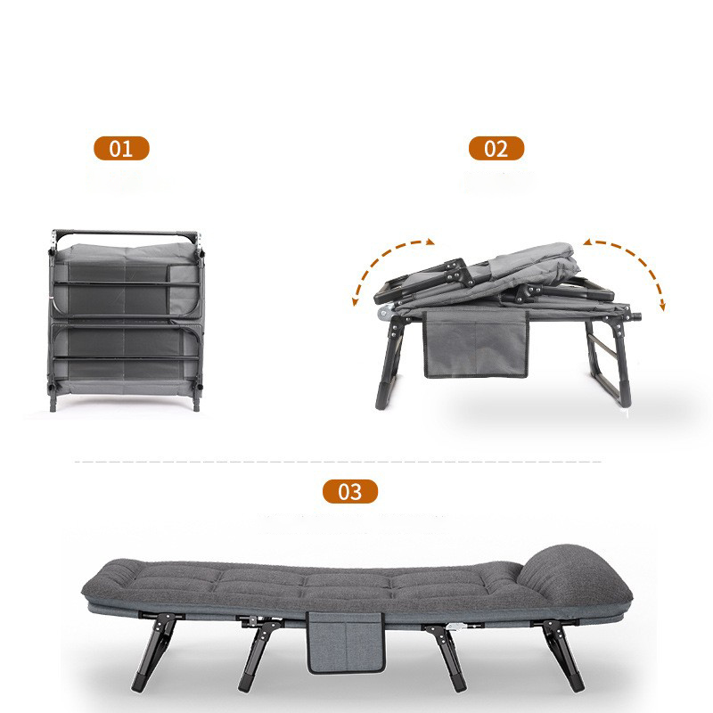 Cloth & Carbon Steel & Corduroy Foldable Bed durable & breathable Solid gray PC
