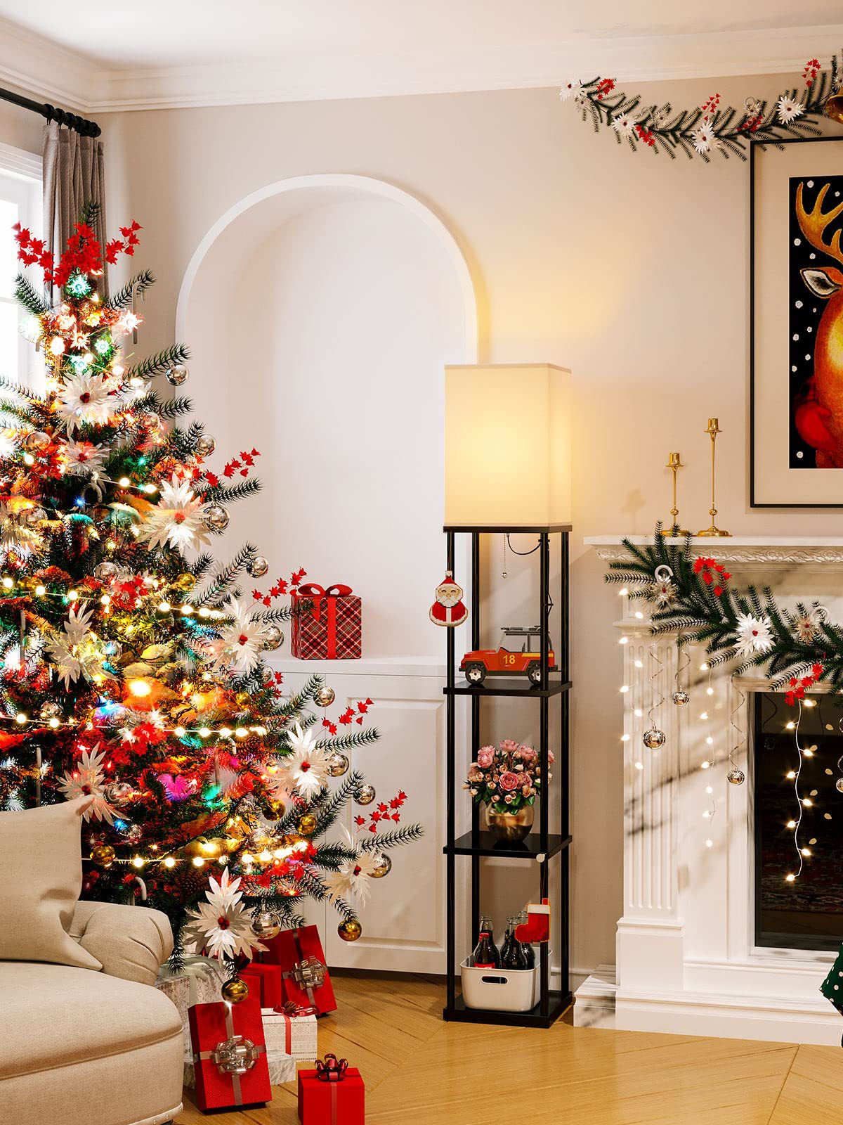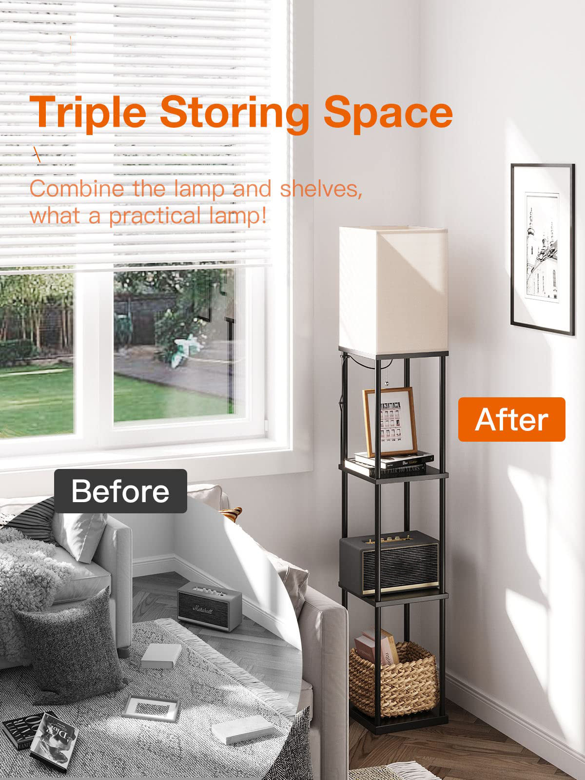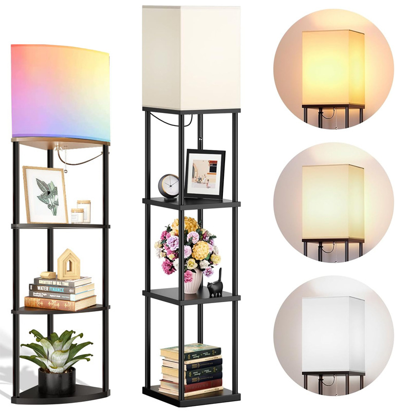 Cylindrical three-layer storage floor lamp-including three-color bulbs