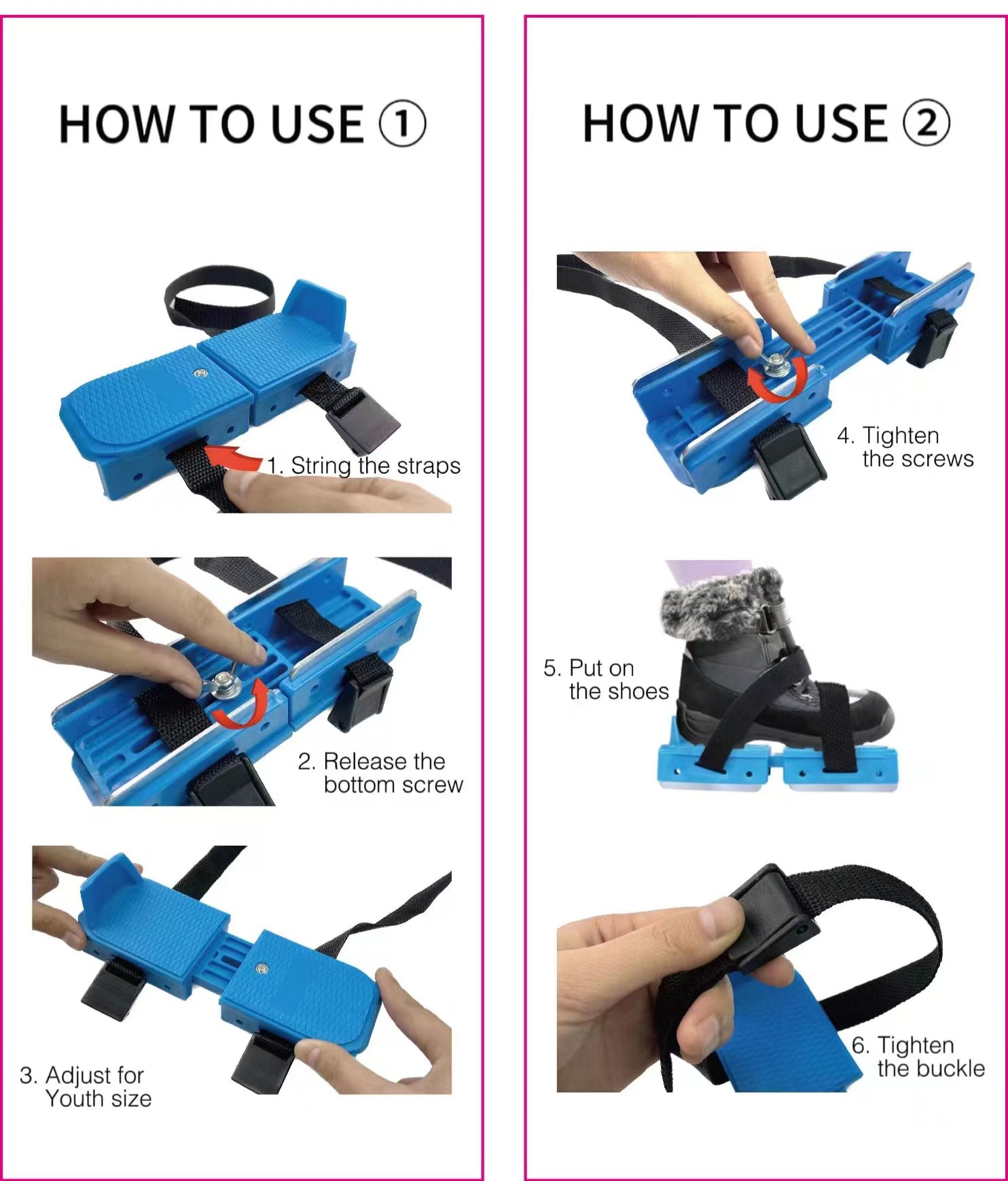 Cold-rolled Steel & Fabric & Plastic Skiing Shoes for children & durable & portable : Set