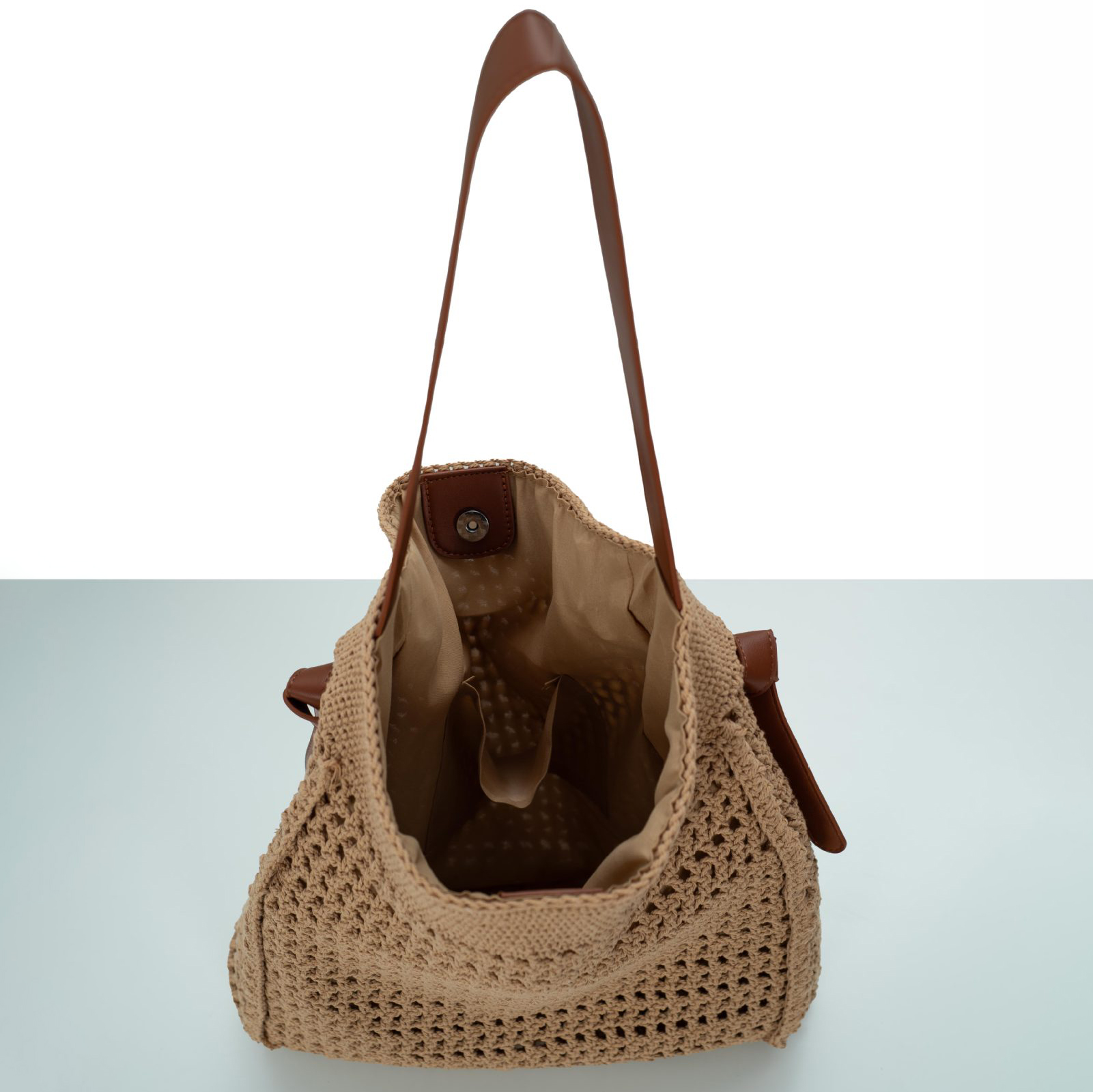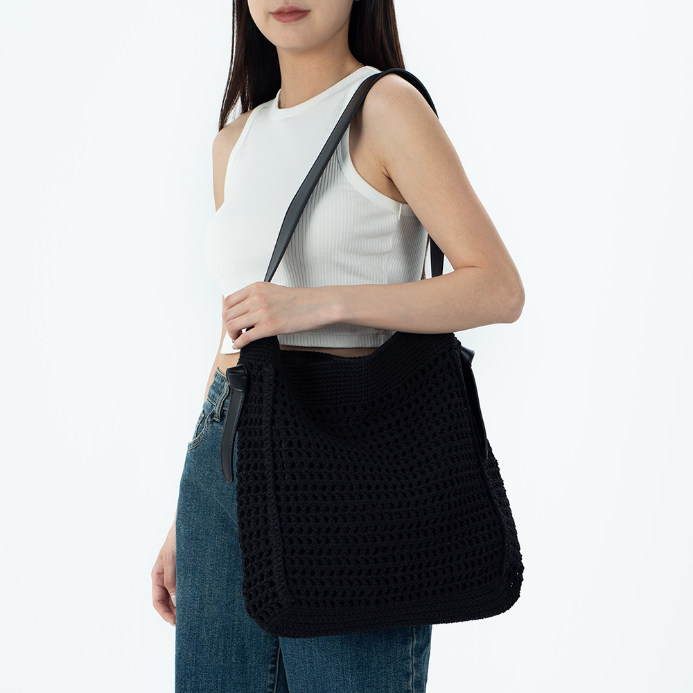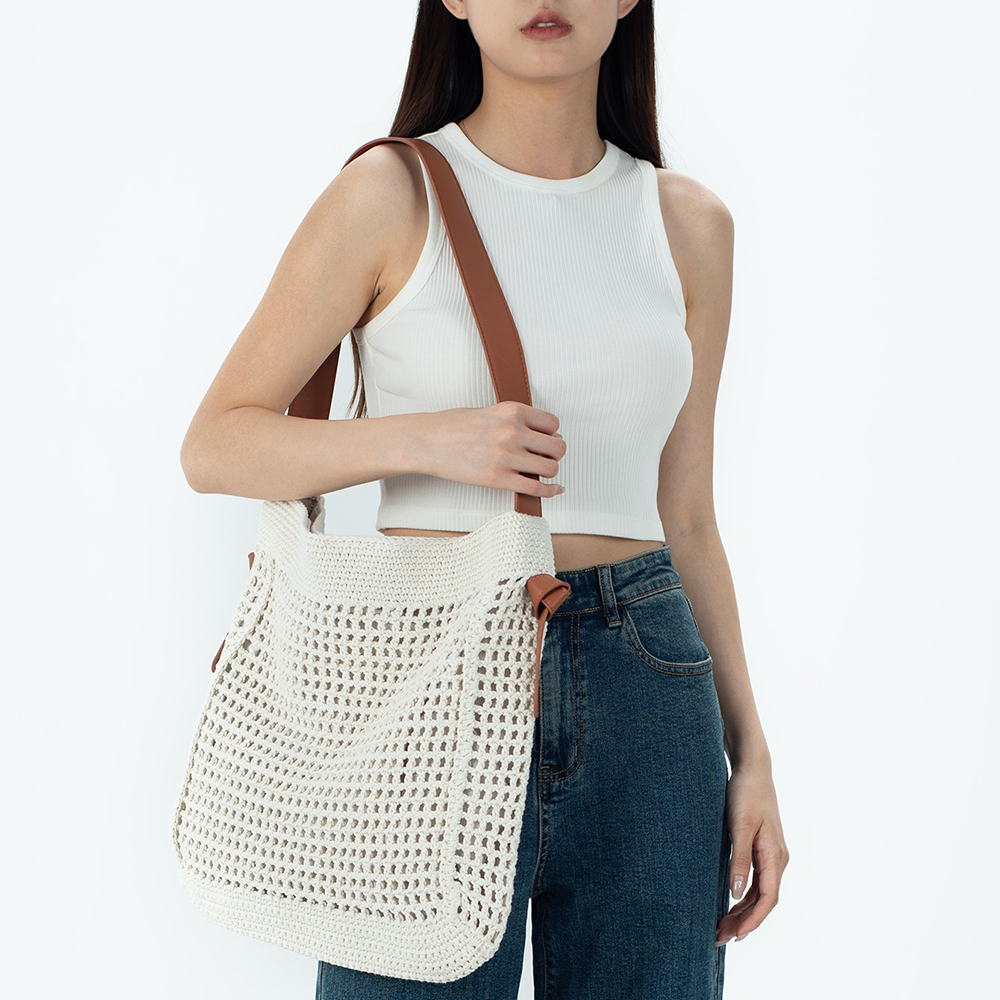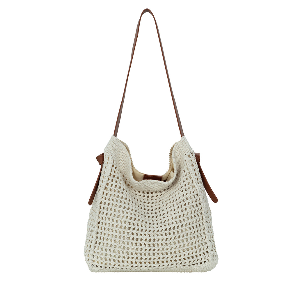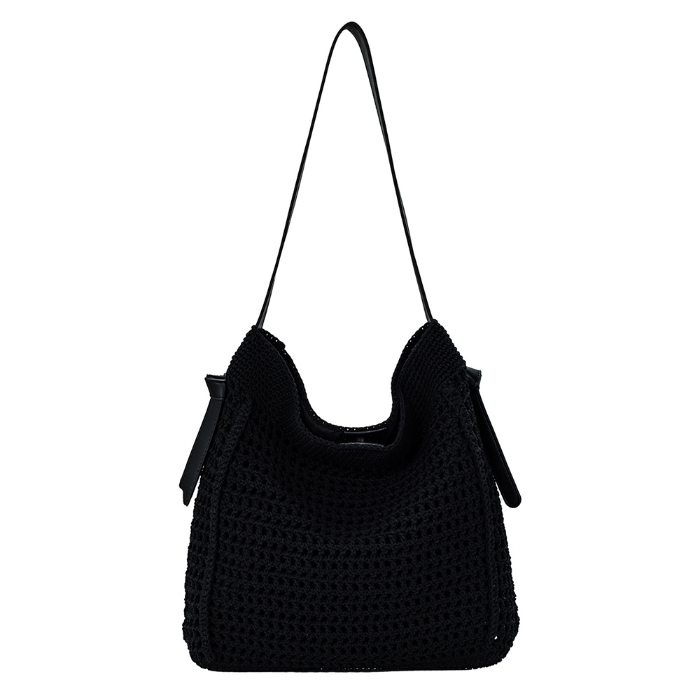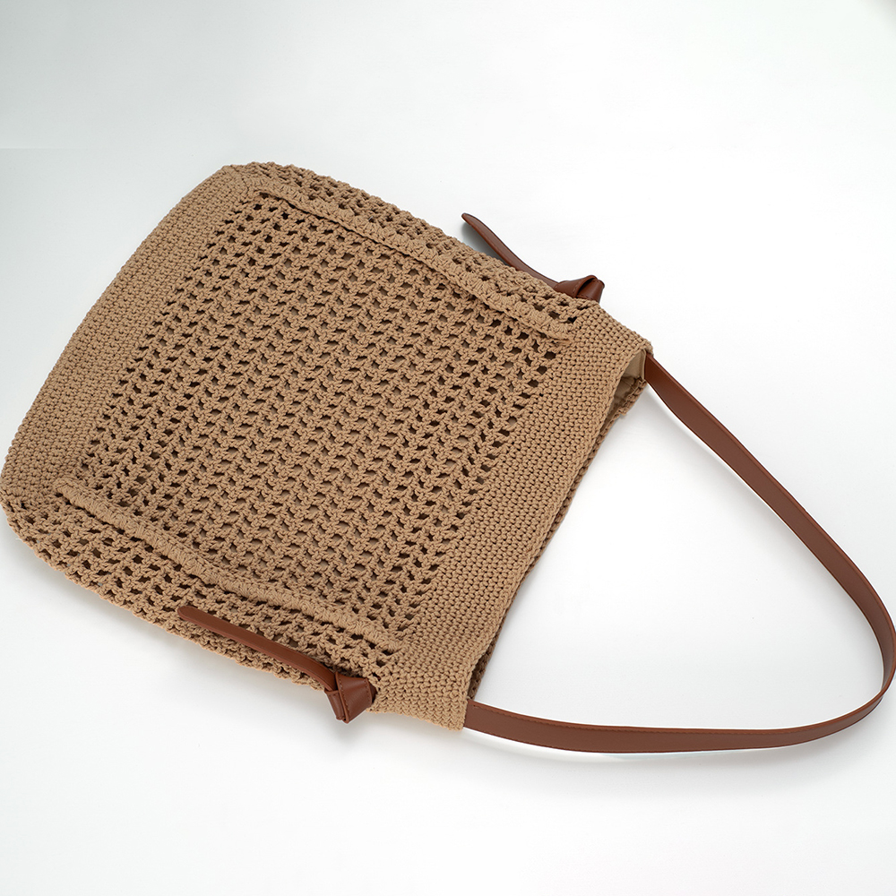 Cotton Cord Shoulder Bag large capacity & soft surface & hollow PU Leather & Polyester Solid PC