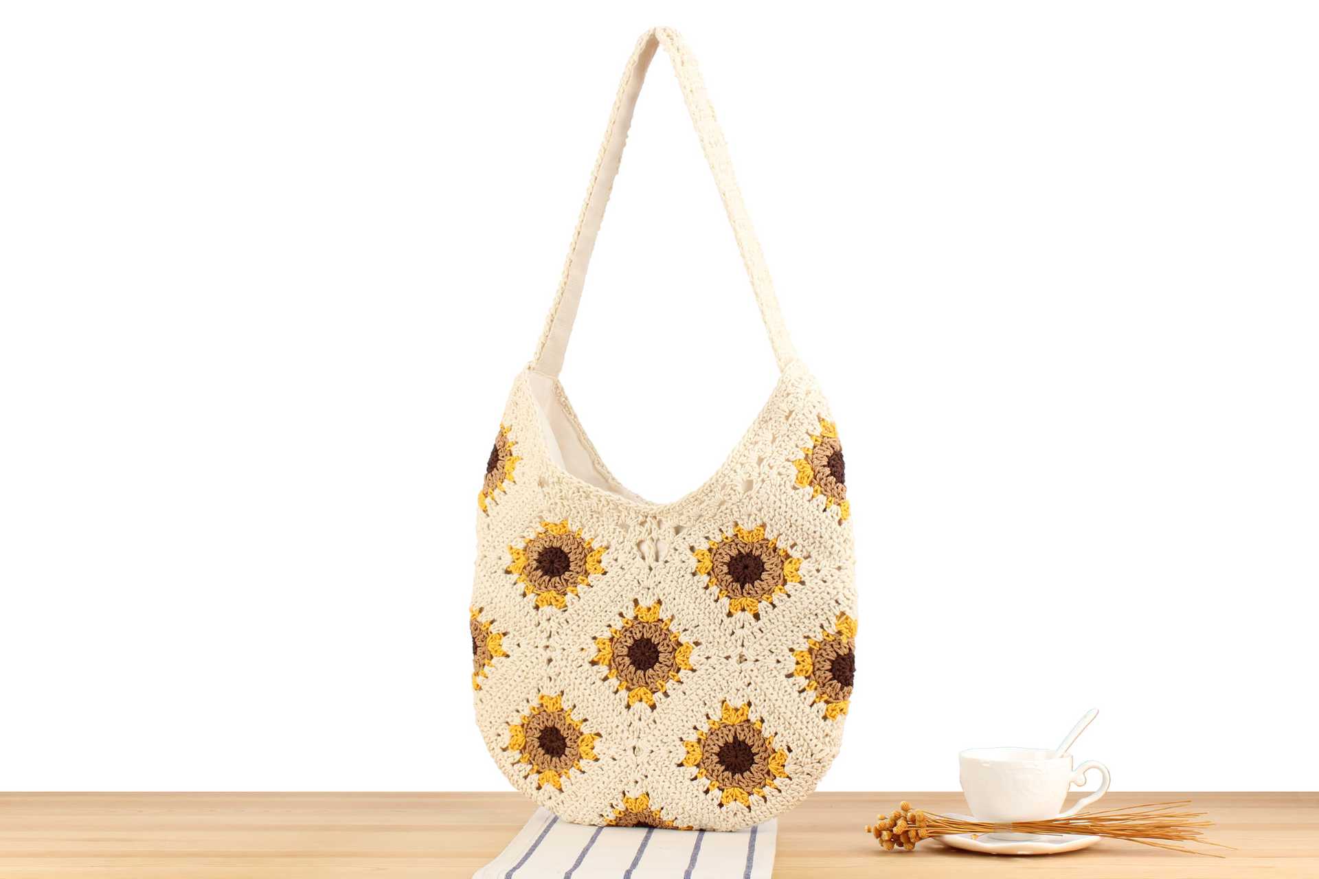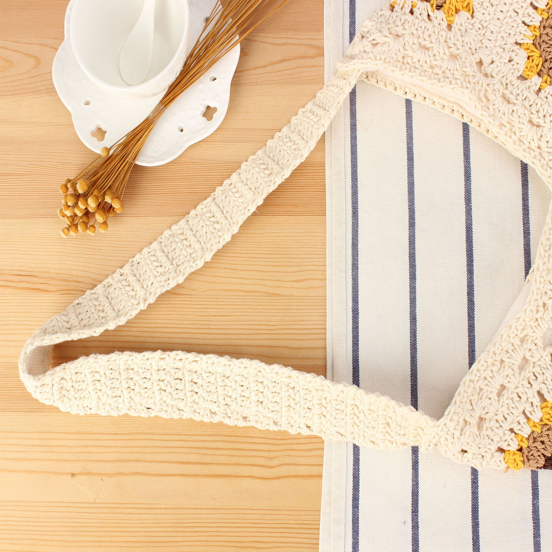 Cotton Cord Shoulder Bag soft surface Polyester beige PC