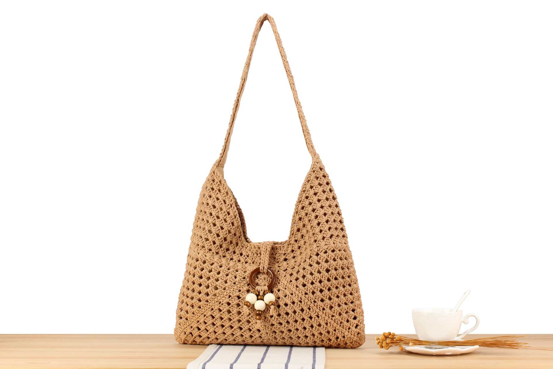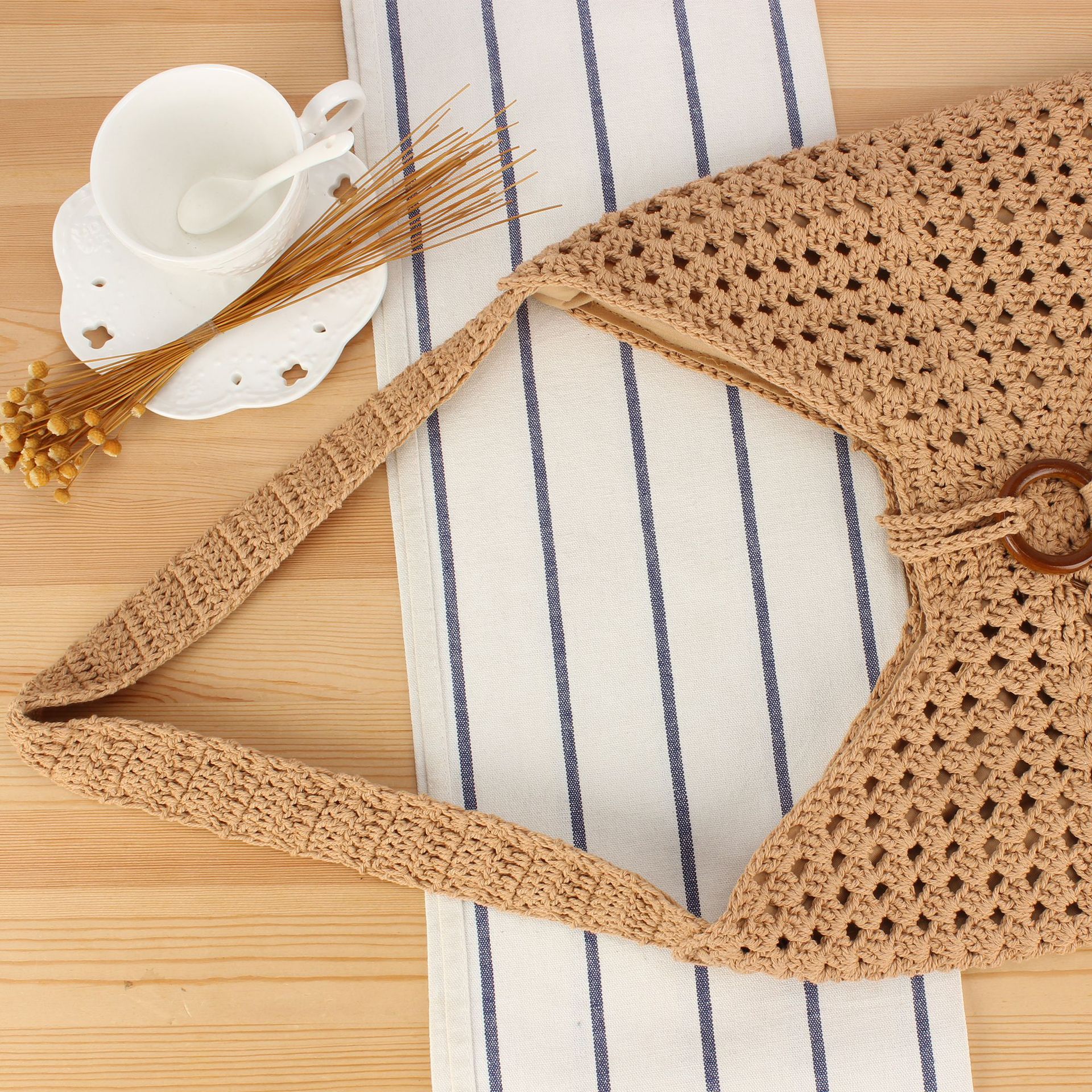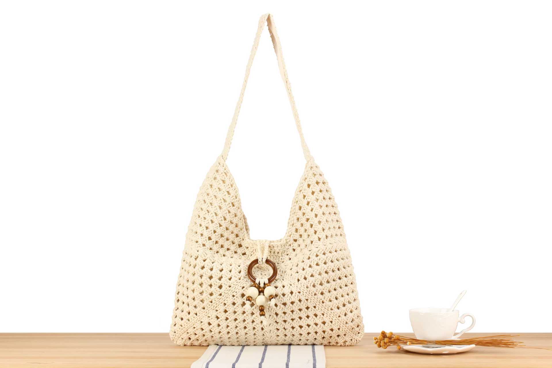Cotton Cord Shoulder Bag large capacity & soft surface & hollow Polyester PC