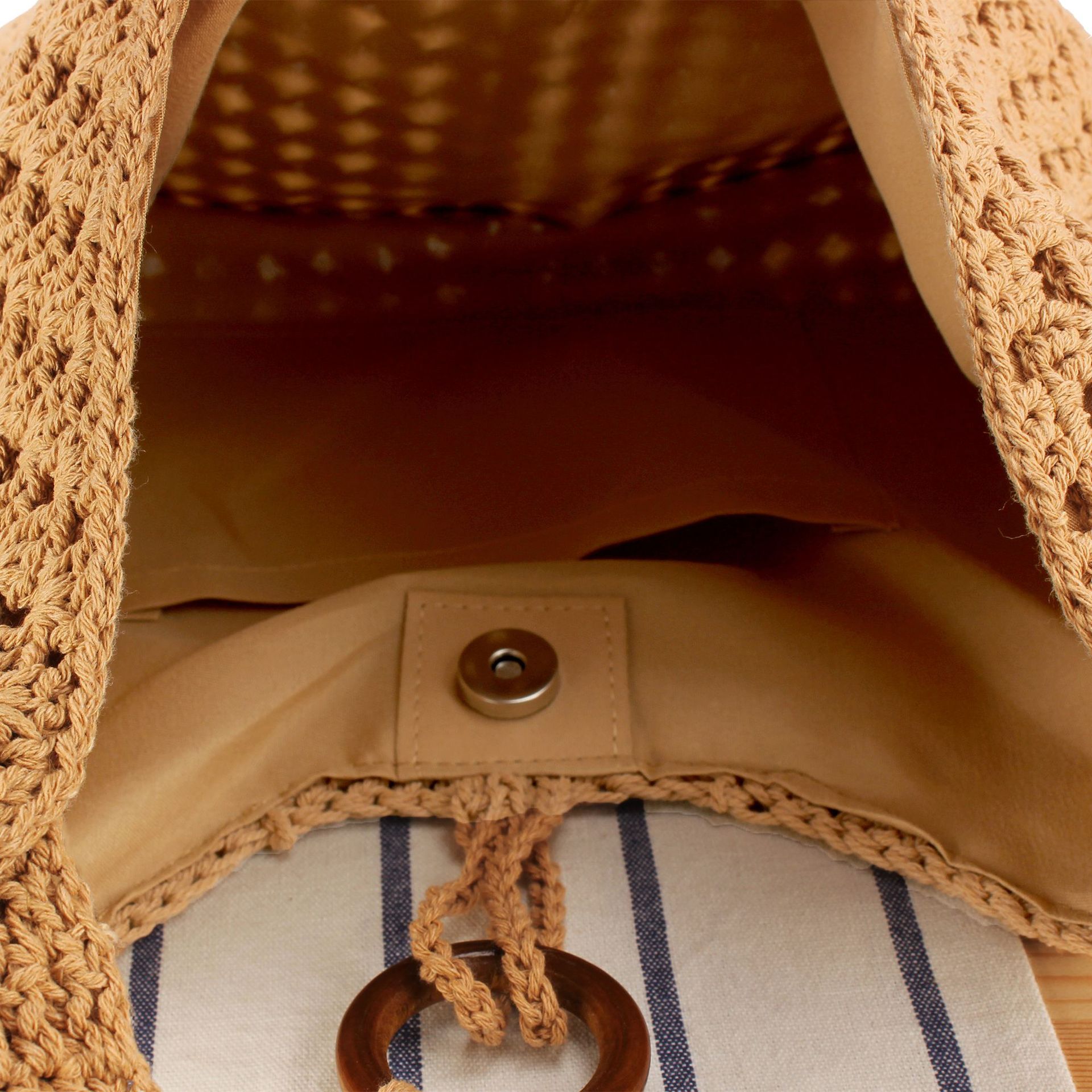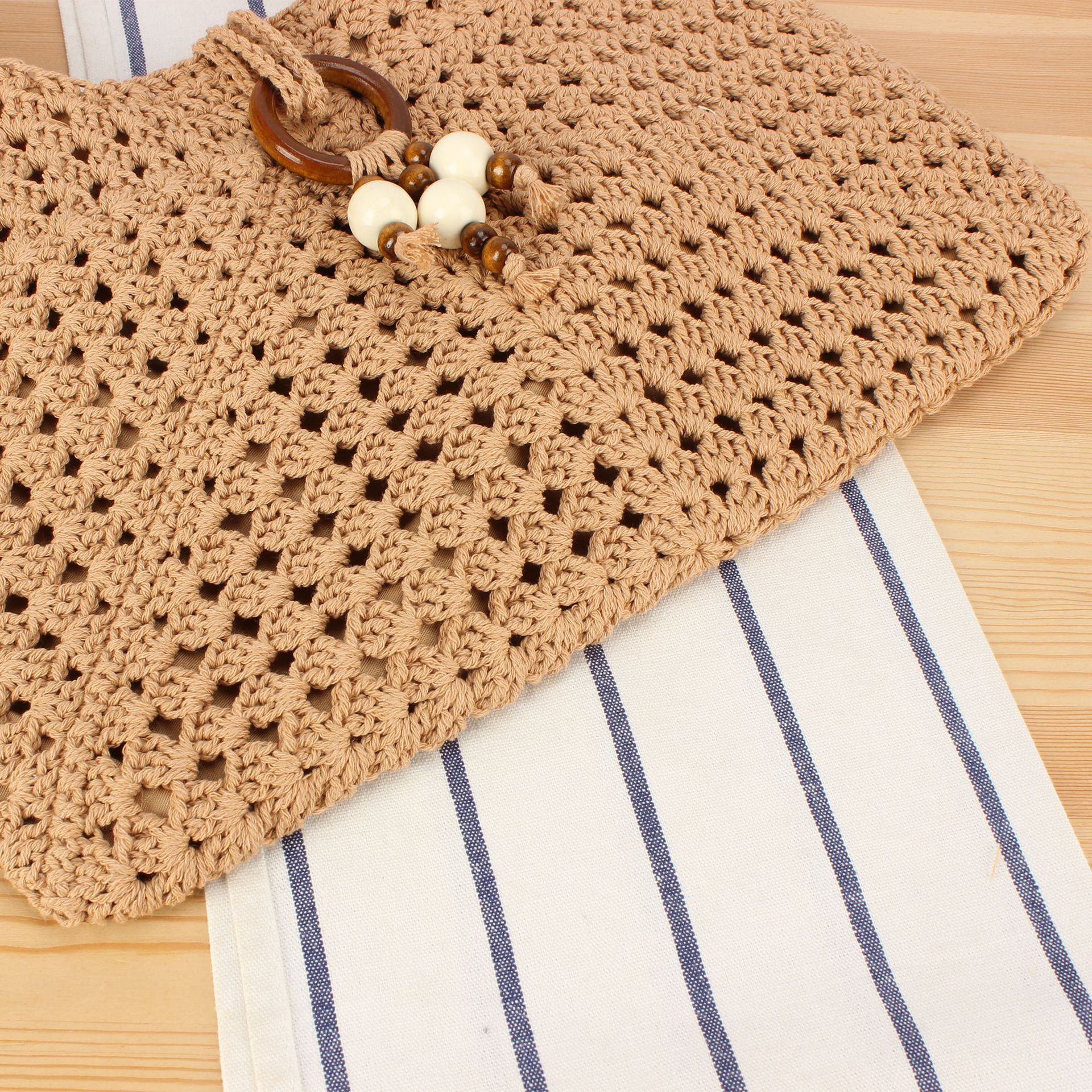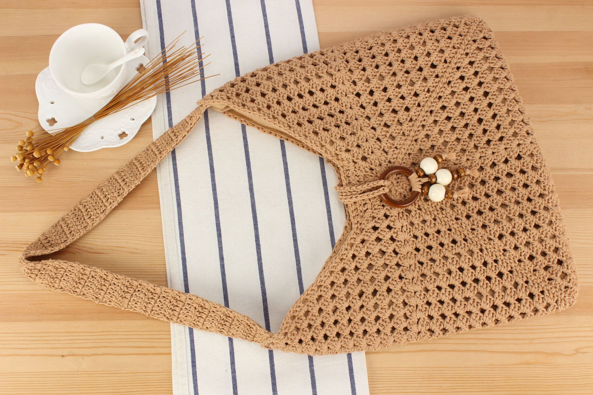 Cotton Cord Shoulder Bag large capacity & soft surface & hollow Polyester PC