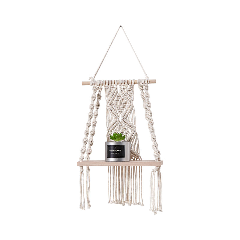 Cotton Cord & Wood Shelf handmade geometric white PC