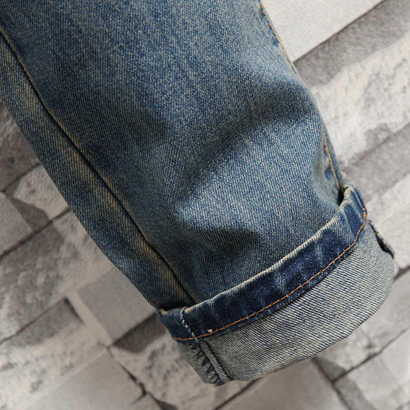 Cotton Denim Ripped & Straight Men Casual Pants Solid blue PC