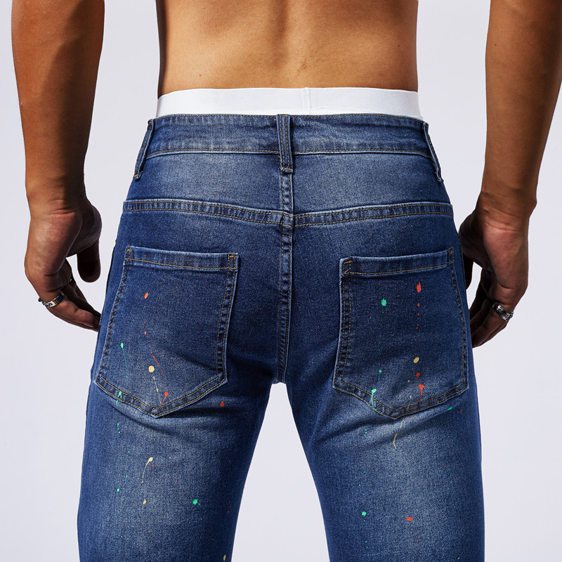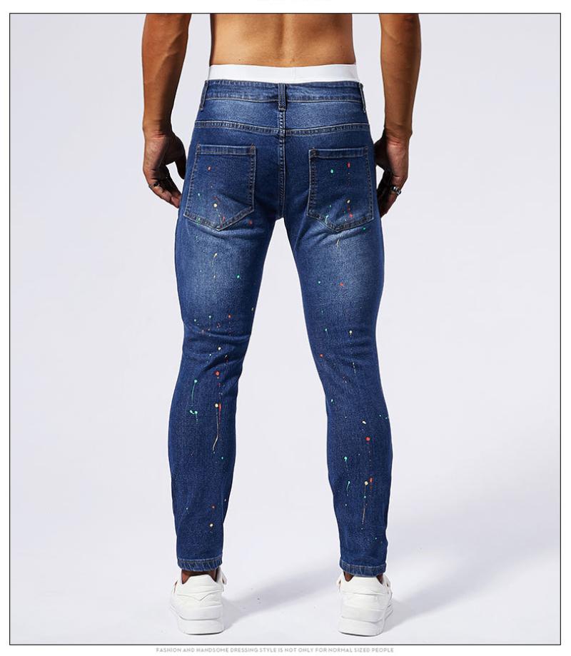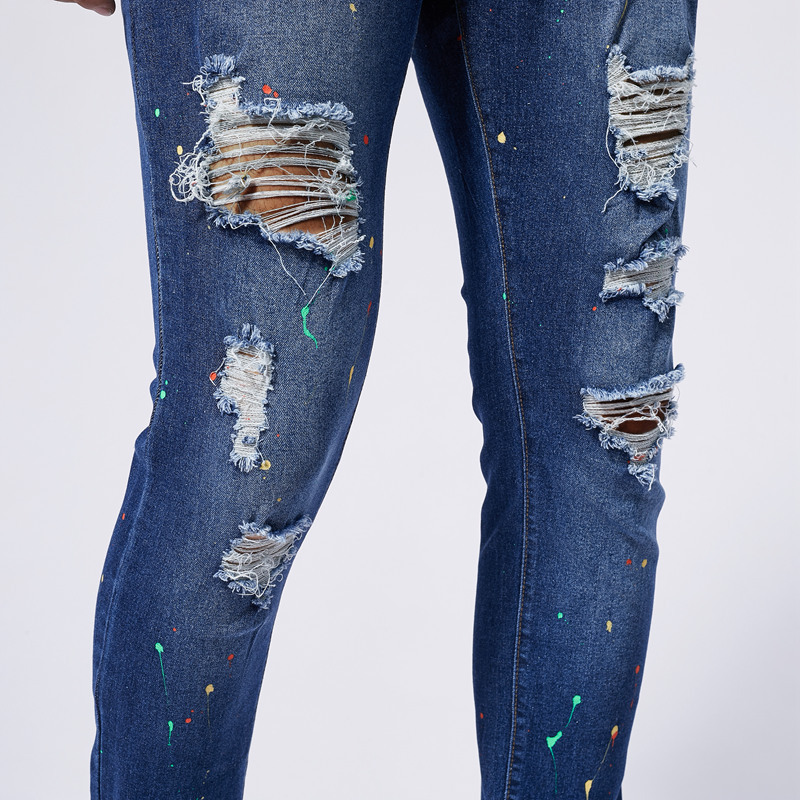 Cotton Denim Ripped Men Casual Pants pencil pant frayed Solid blue PC