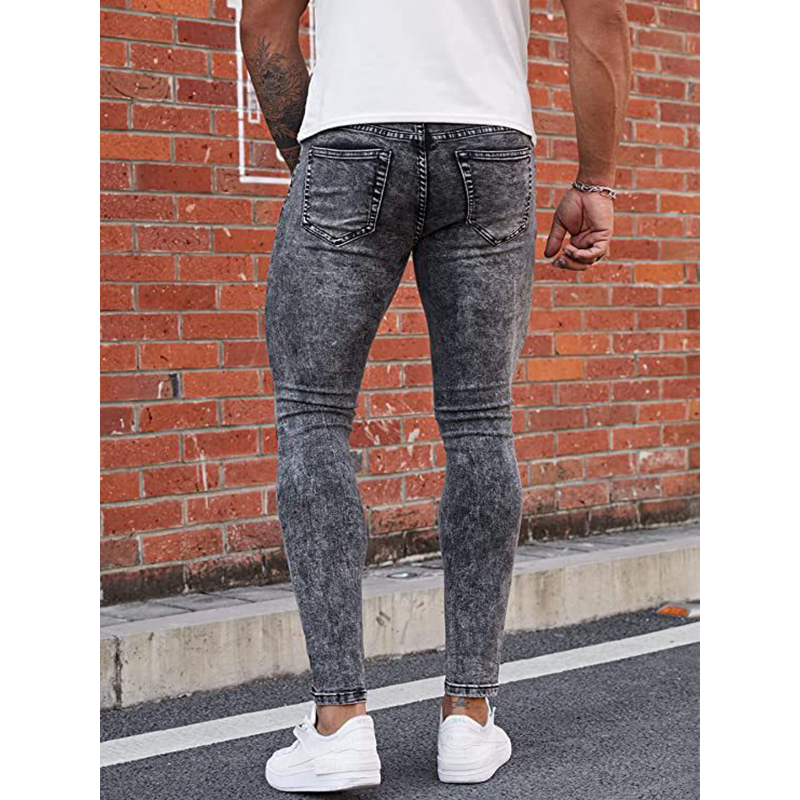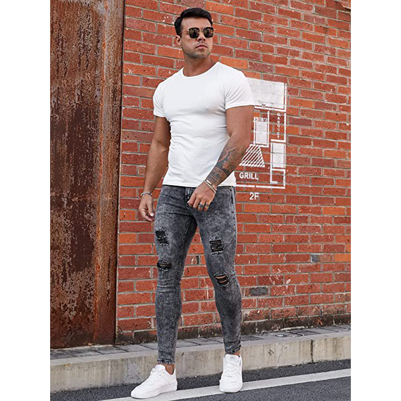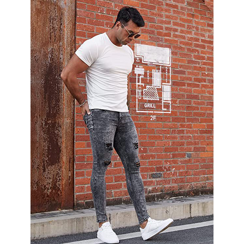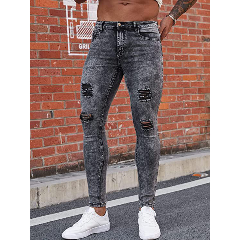 Cotton Denim Ripped Men Casual Pants pencil pant Cotton Denim frayed Solid gray PC