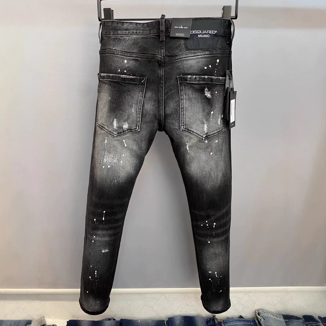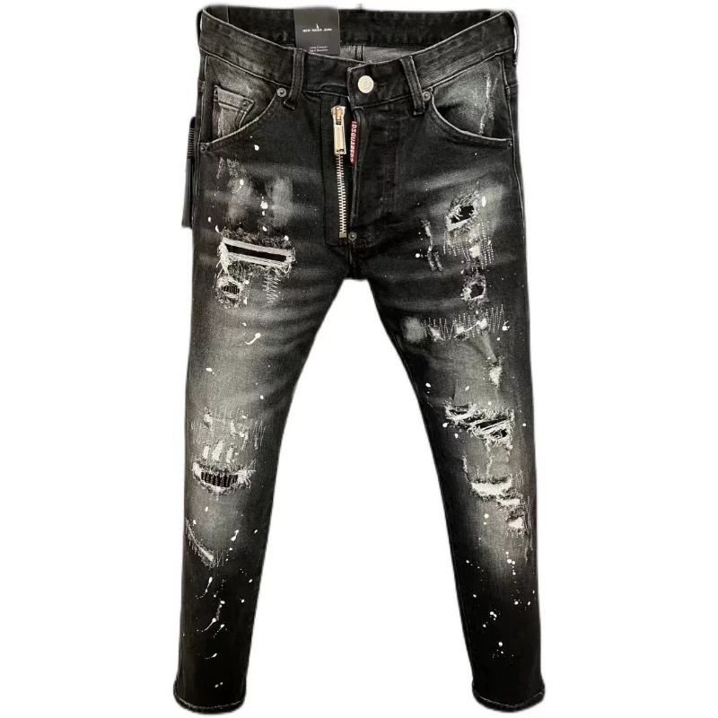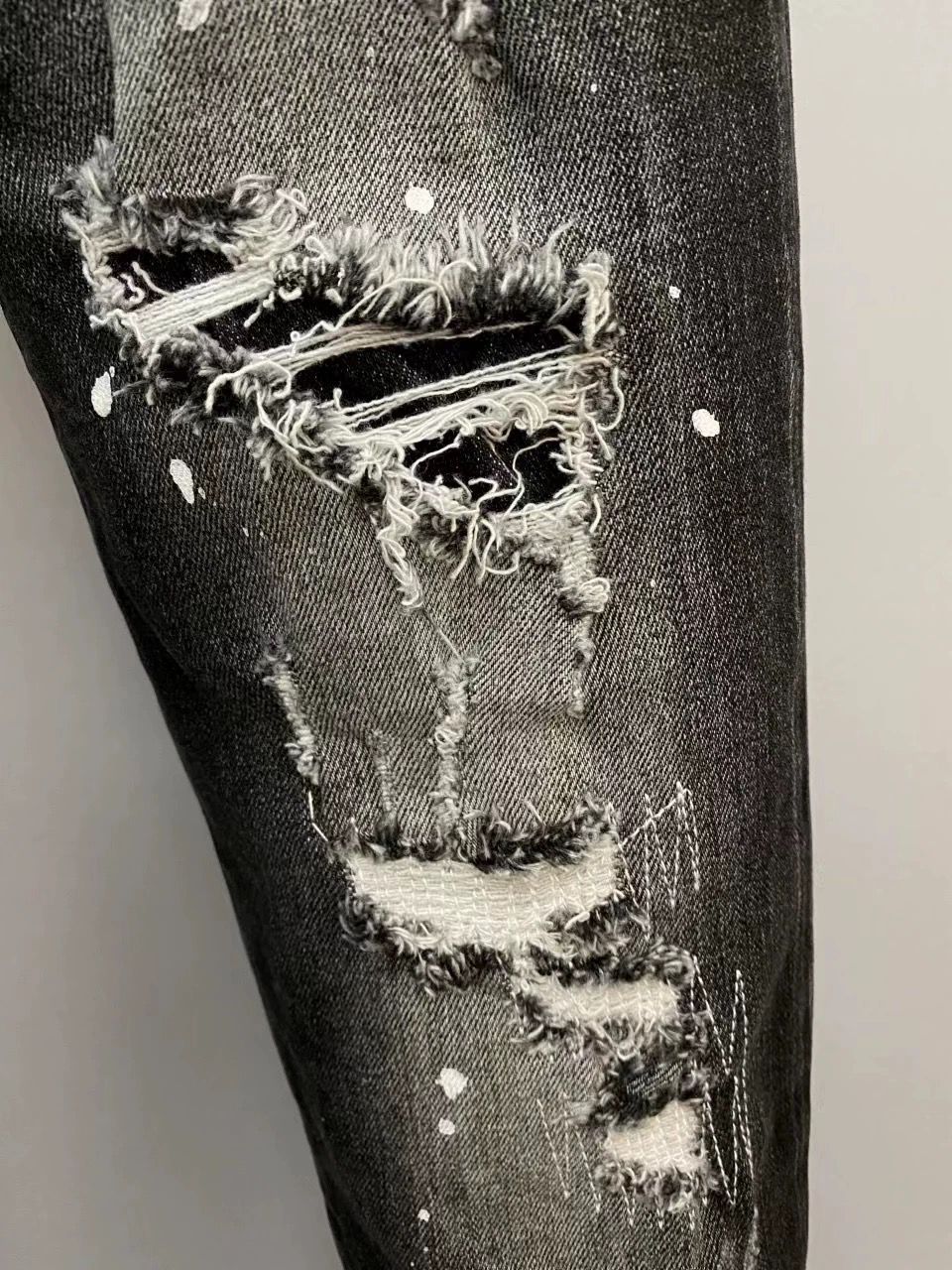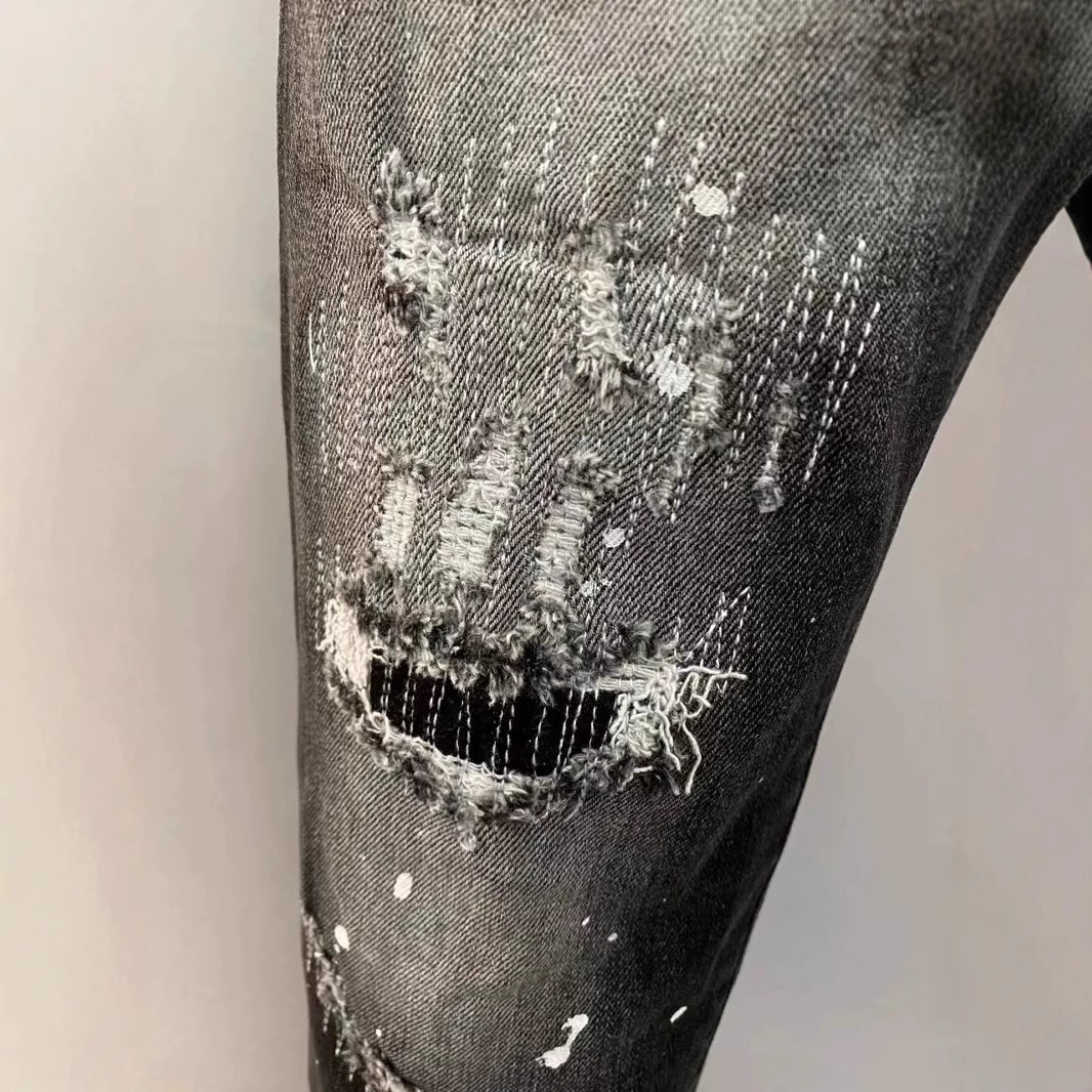 Cotton Denim Ripped Men Casual Pants dark gray PC