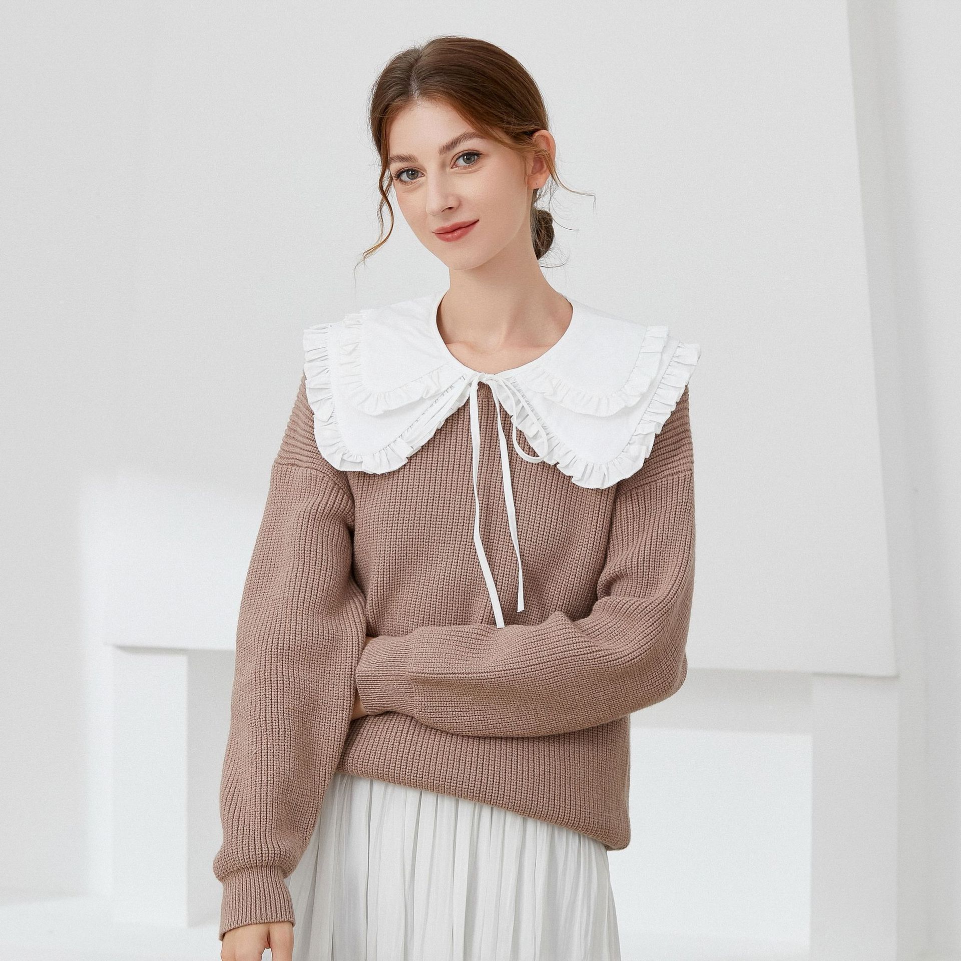Cotton Fake Collar double layer patchwork Solid white : PC