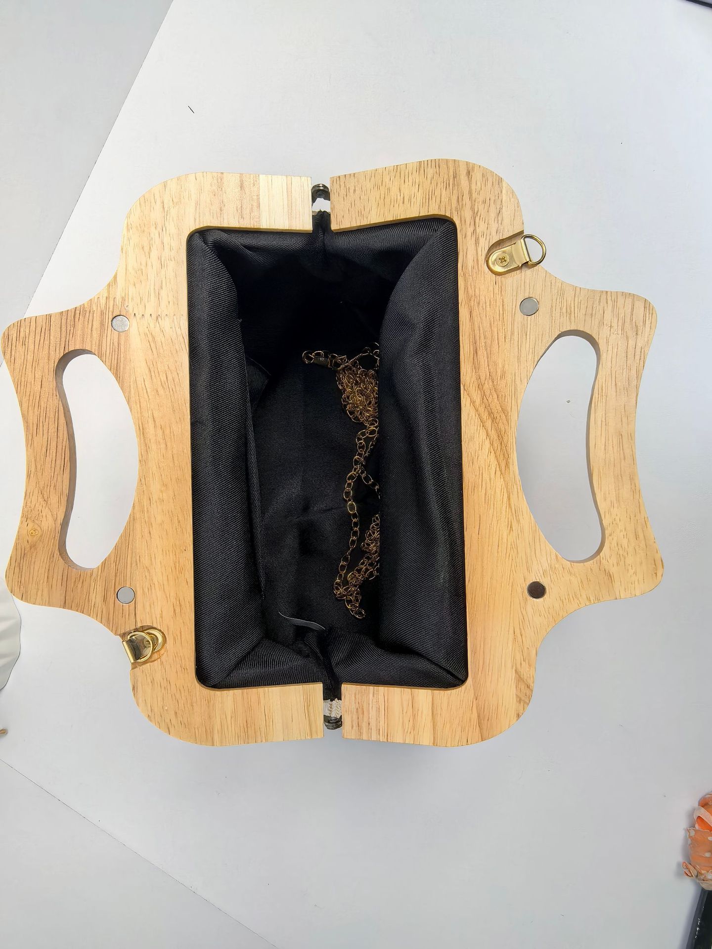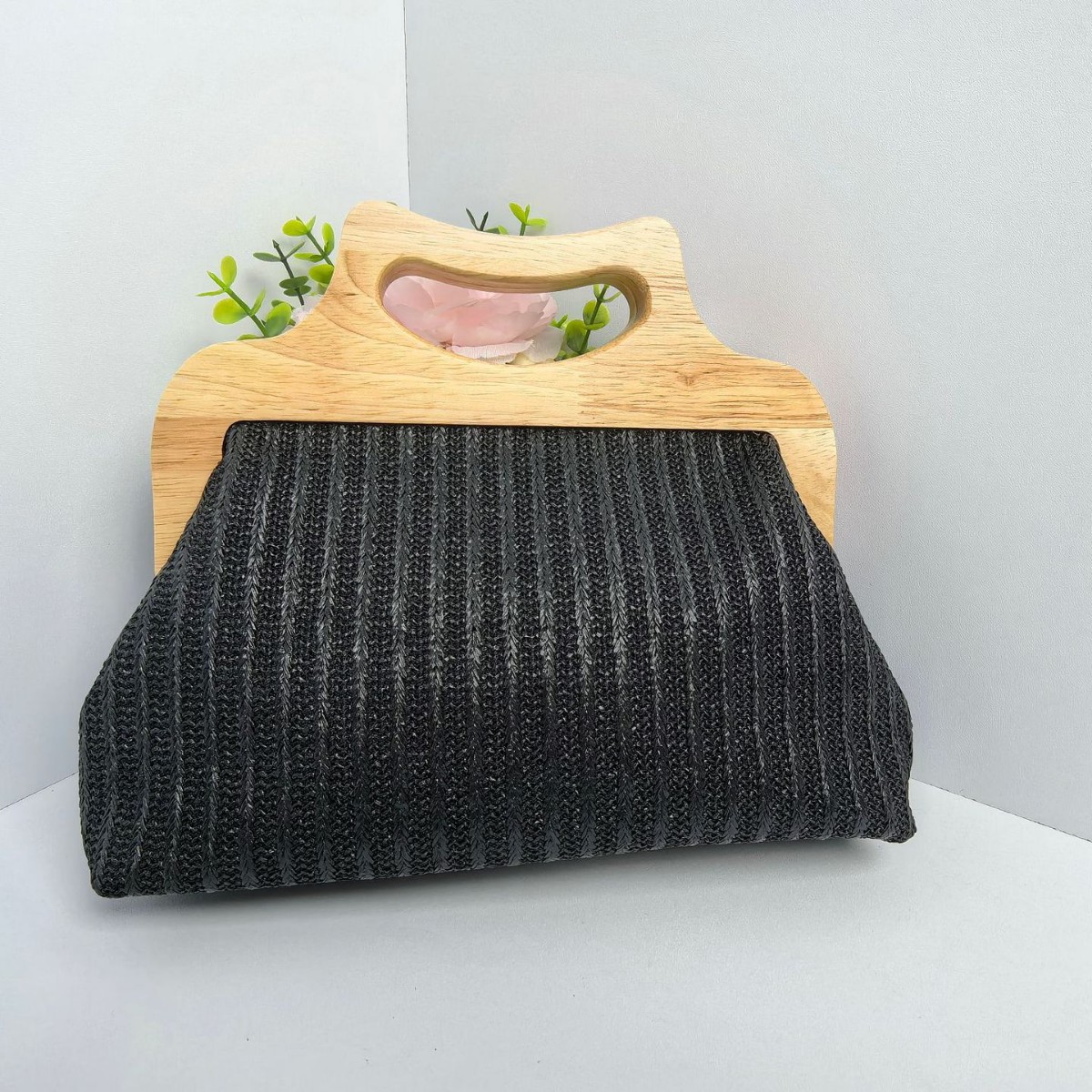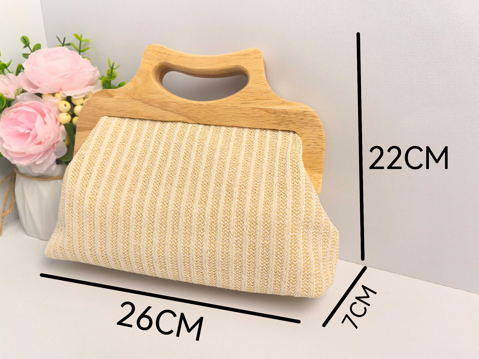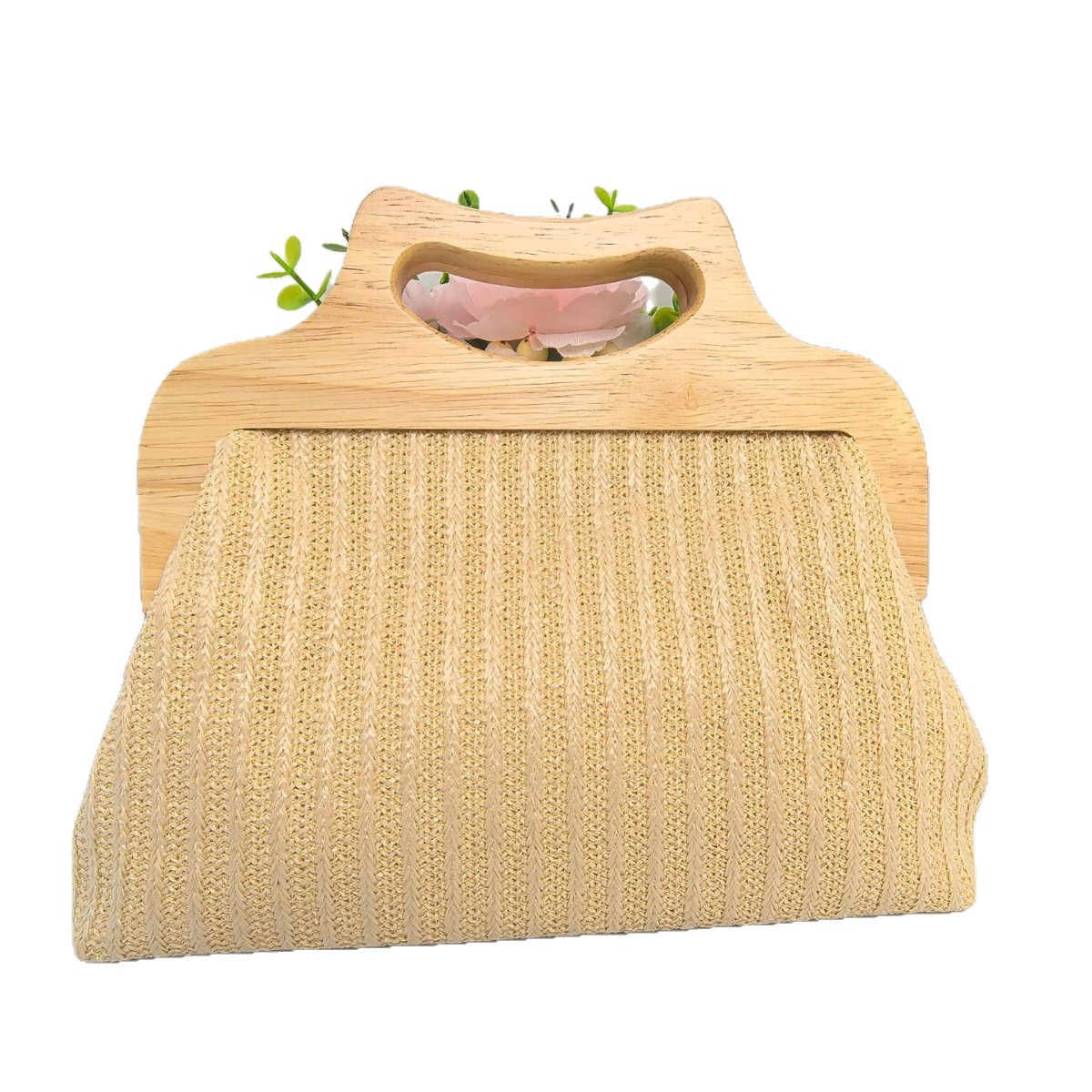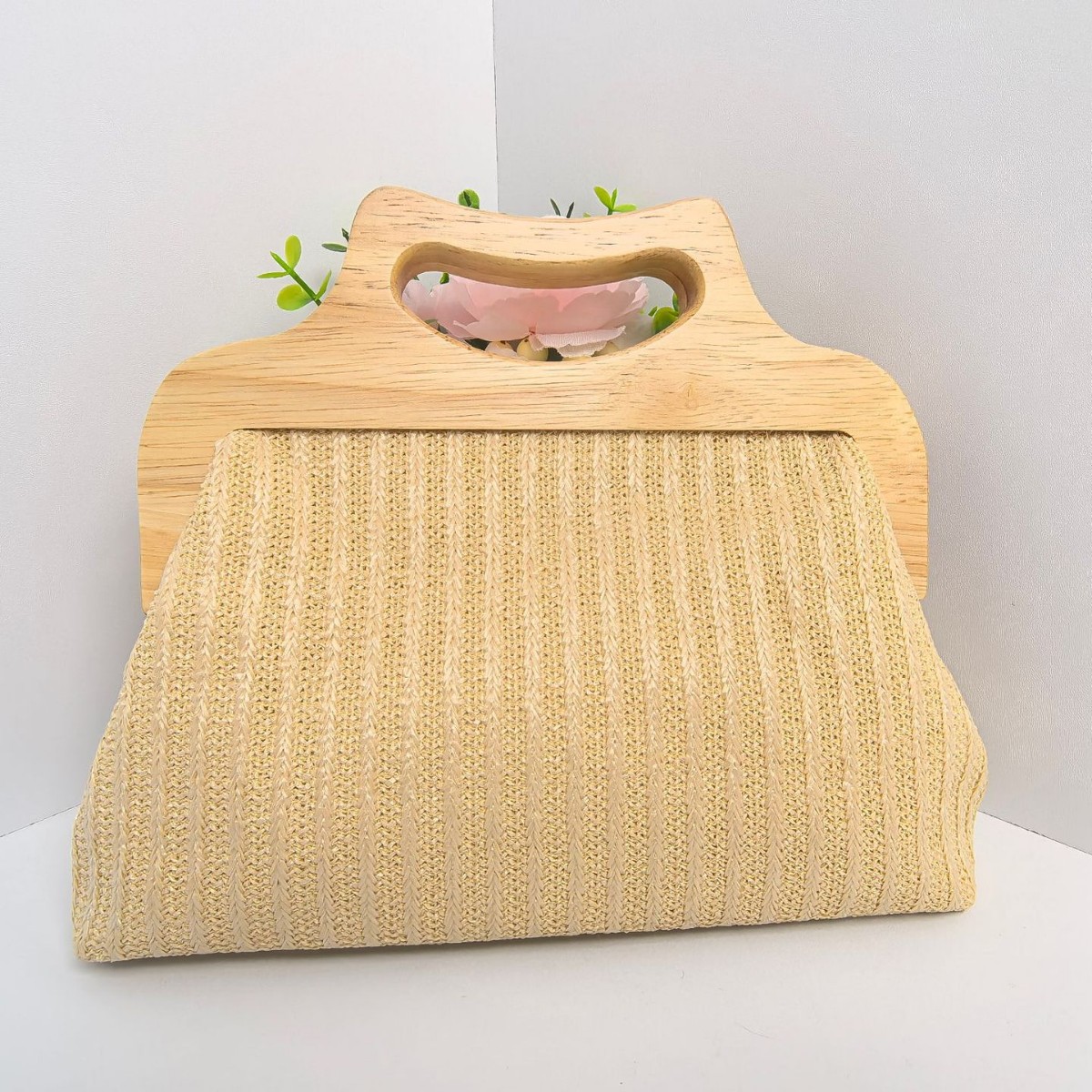 Cotton Linen Handbag soft surface & attached with hanging strap Wood & Polyester PC