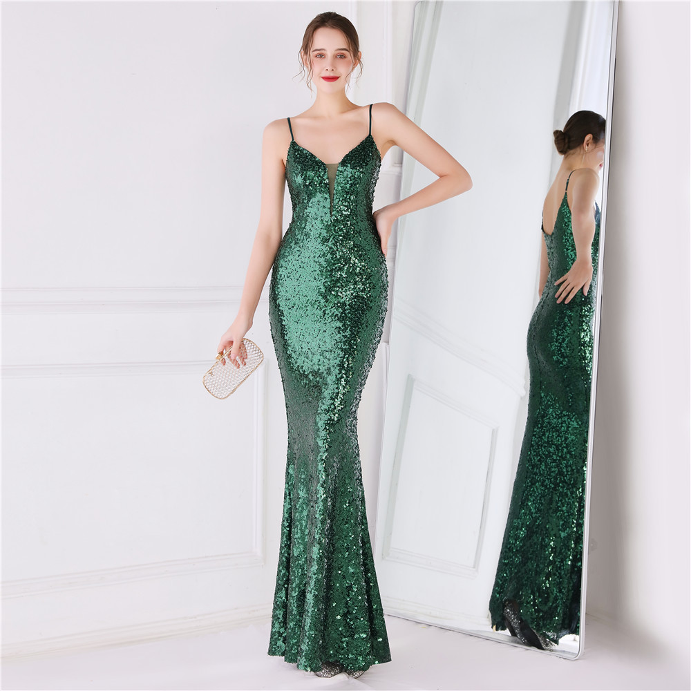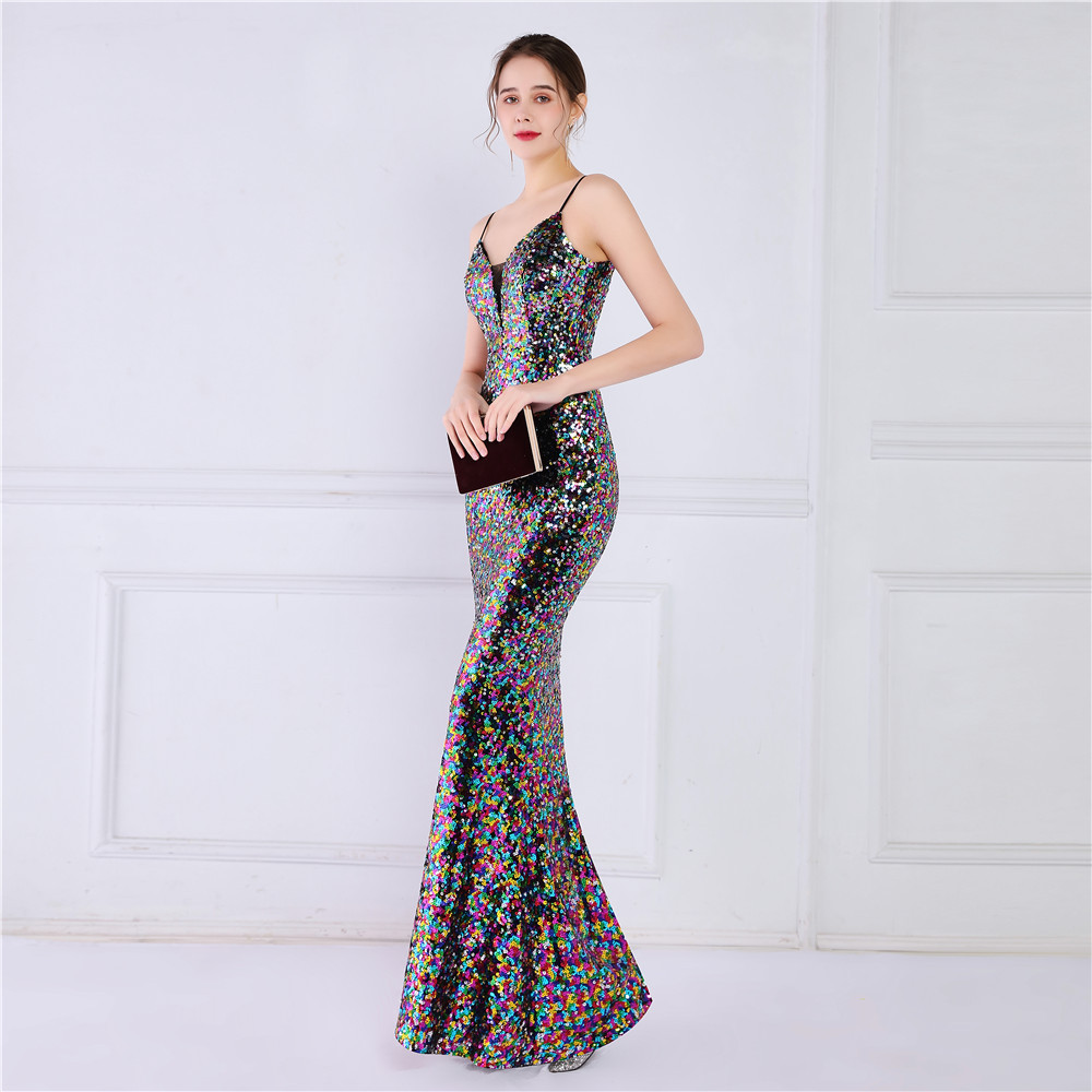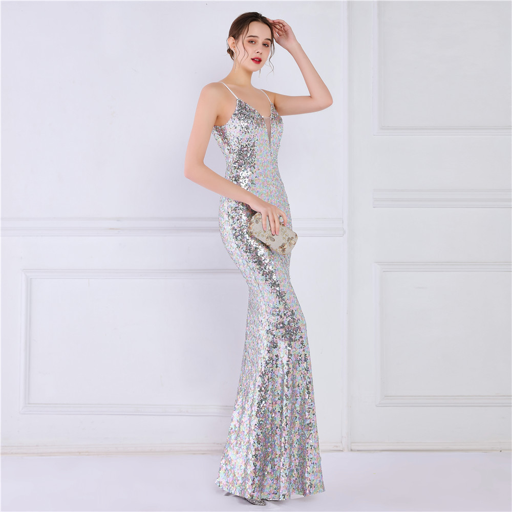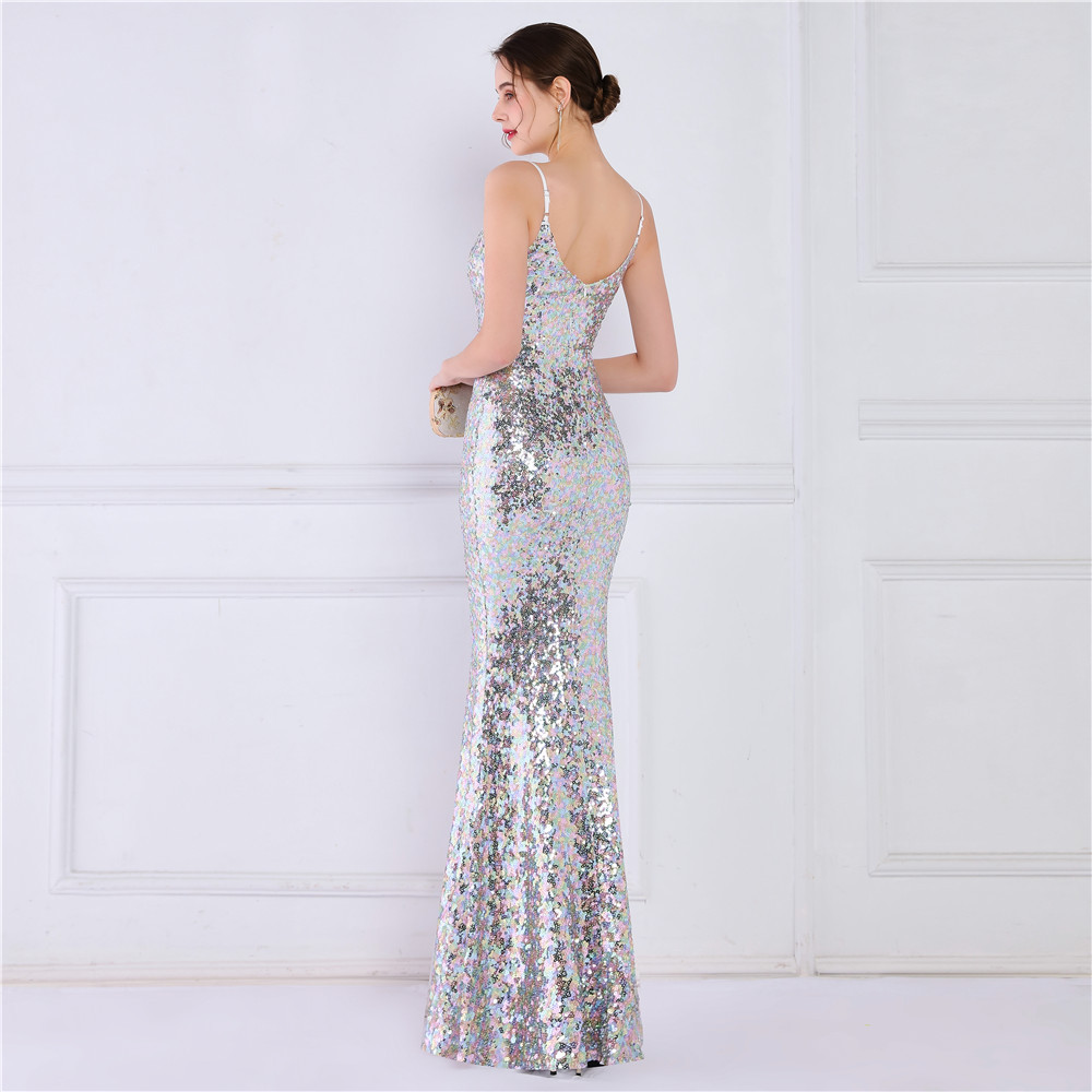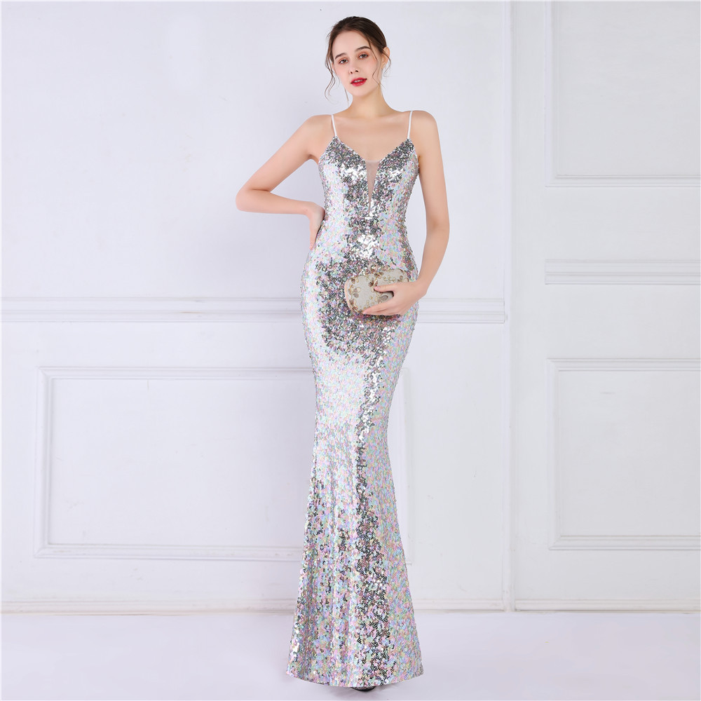 Cotton Slim Long Evening Dress Sequin PC