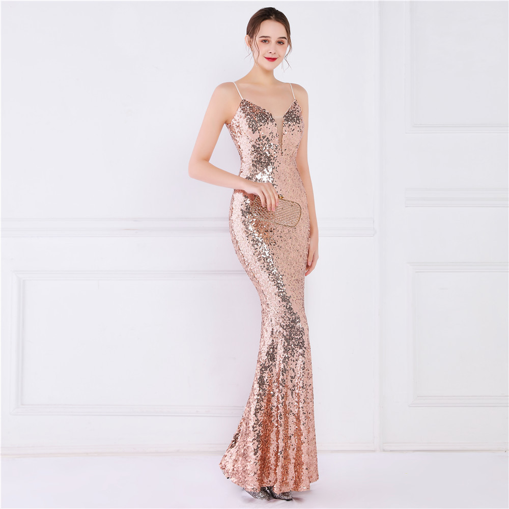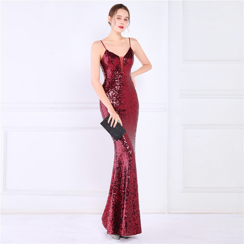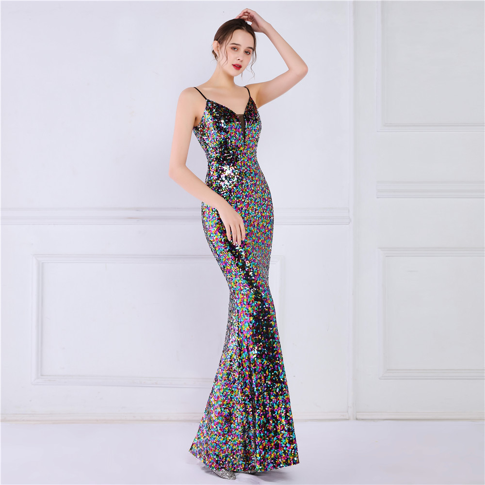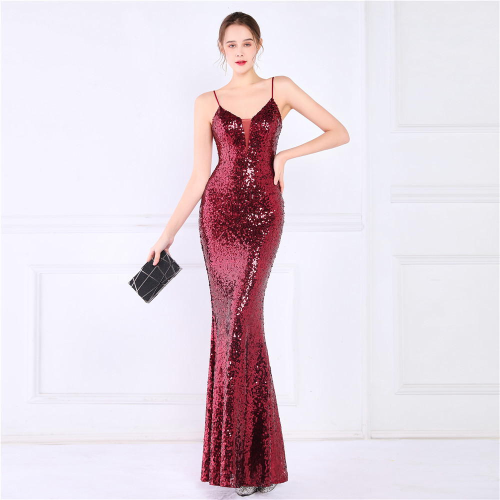 Cotton Slim Long Evening Dress Sequin PC