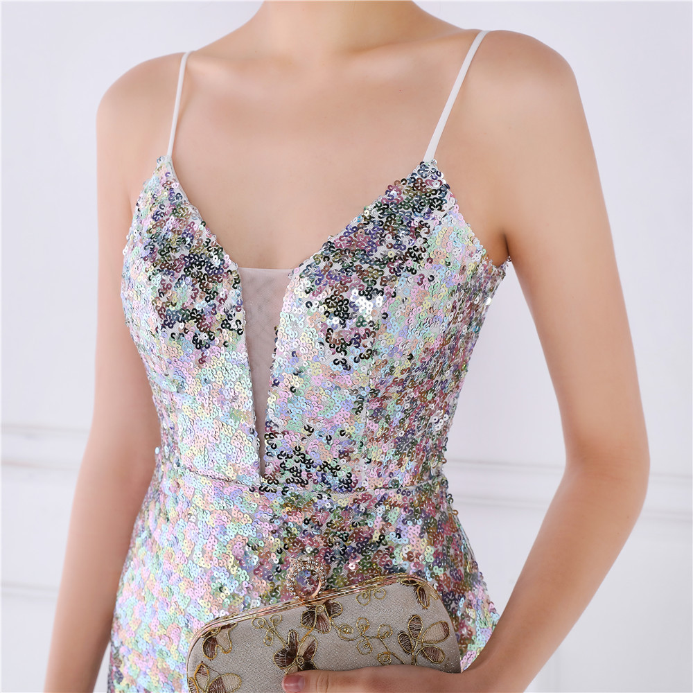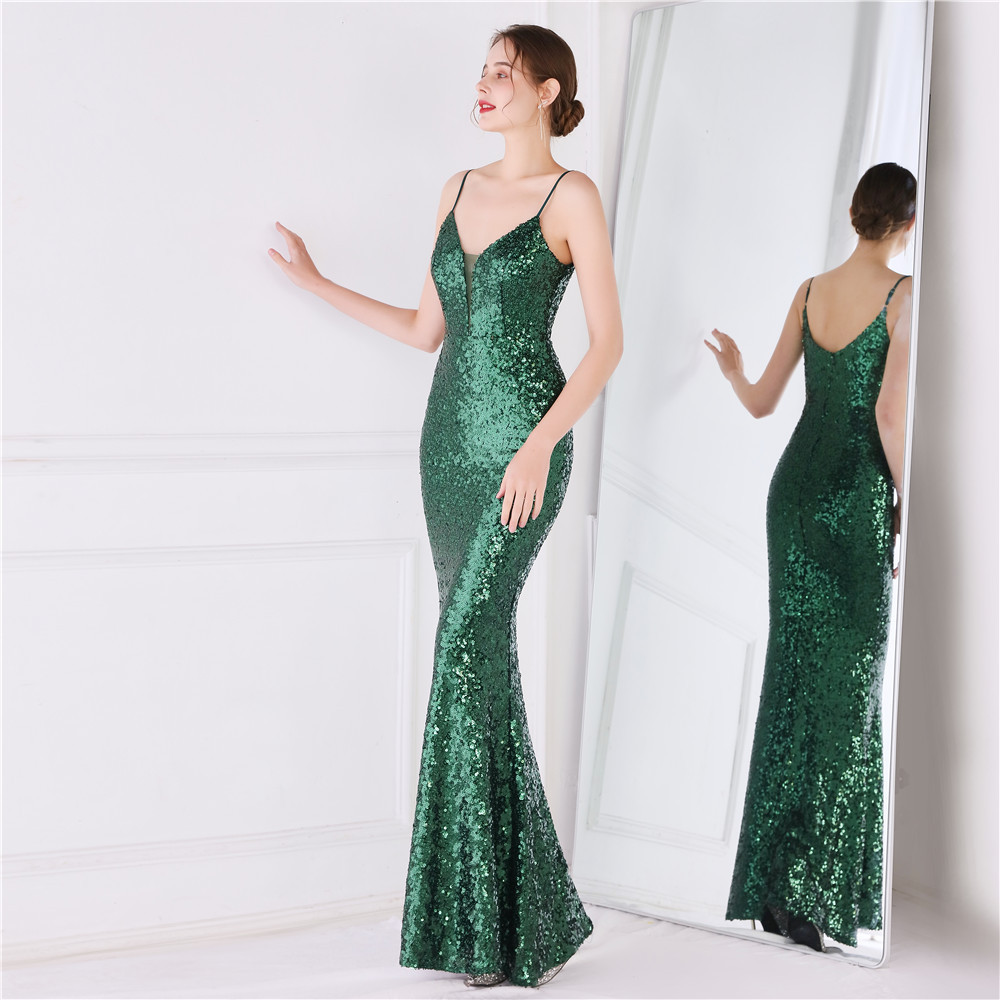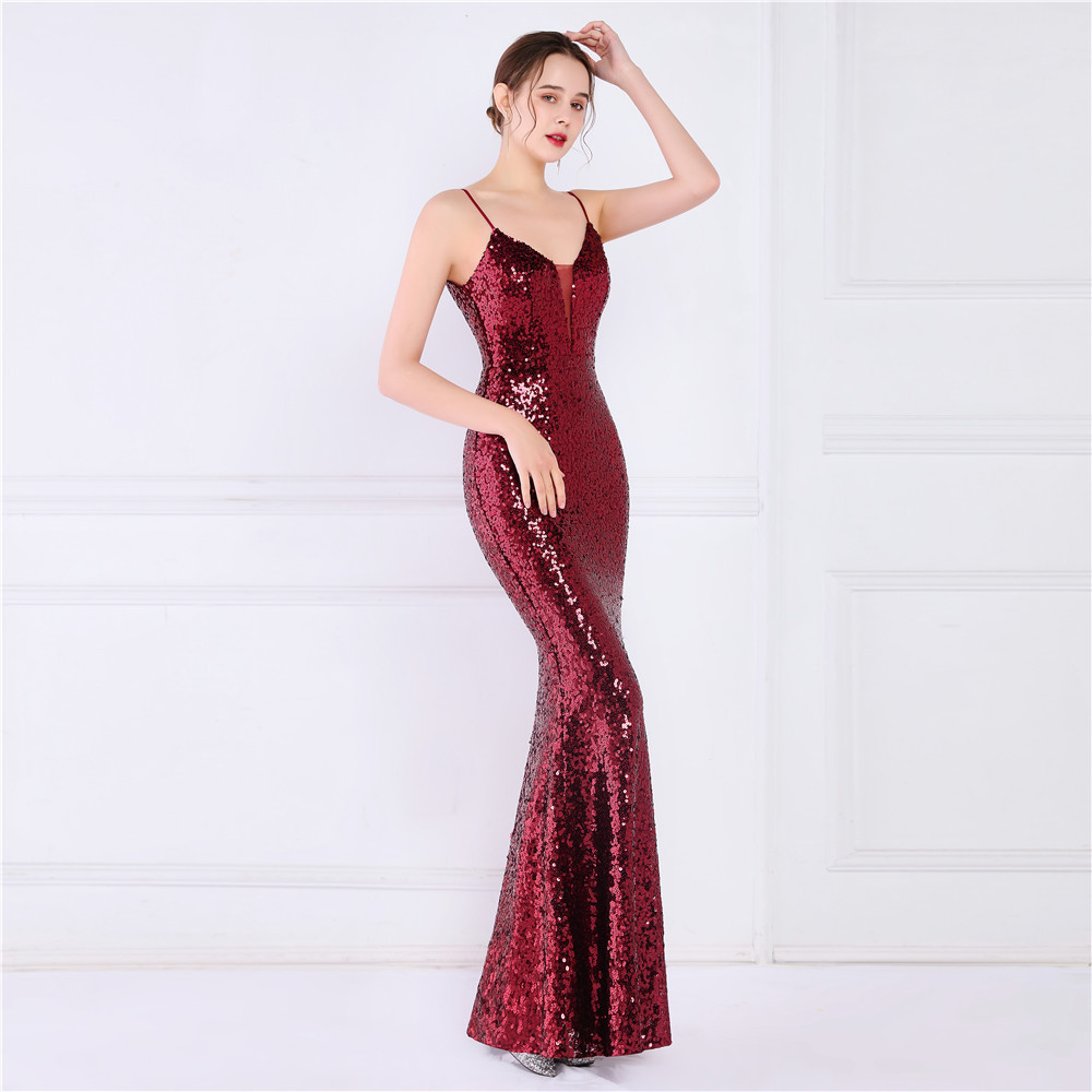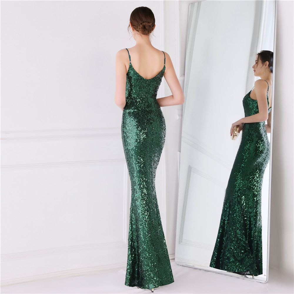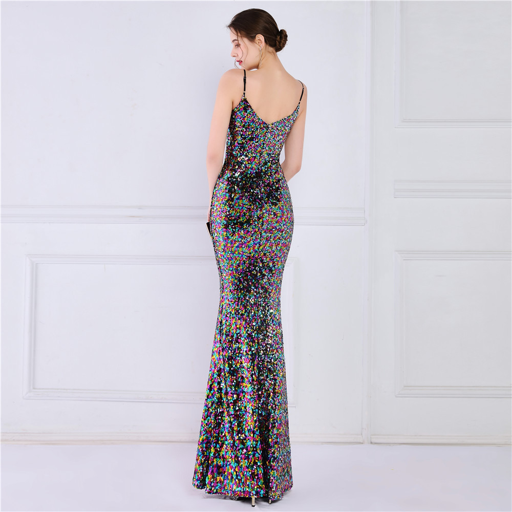 Cotton Slim Long Evening Dress Sequin PC