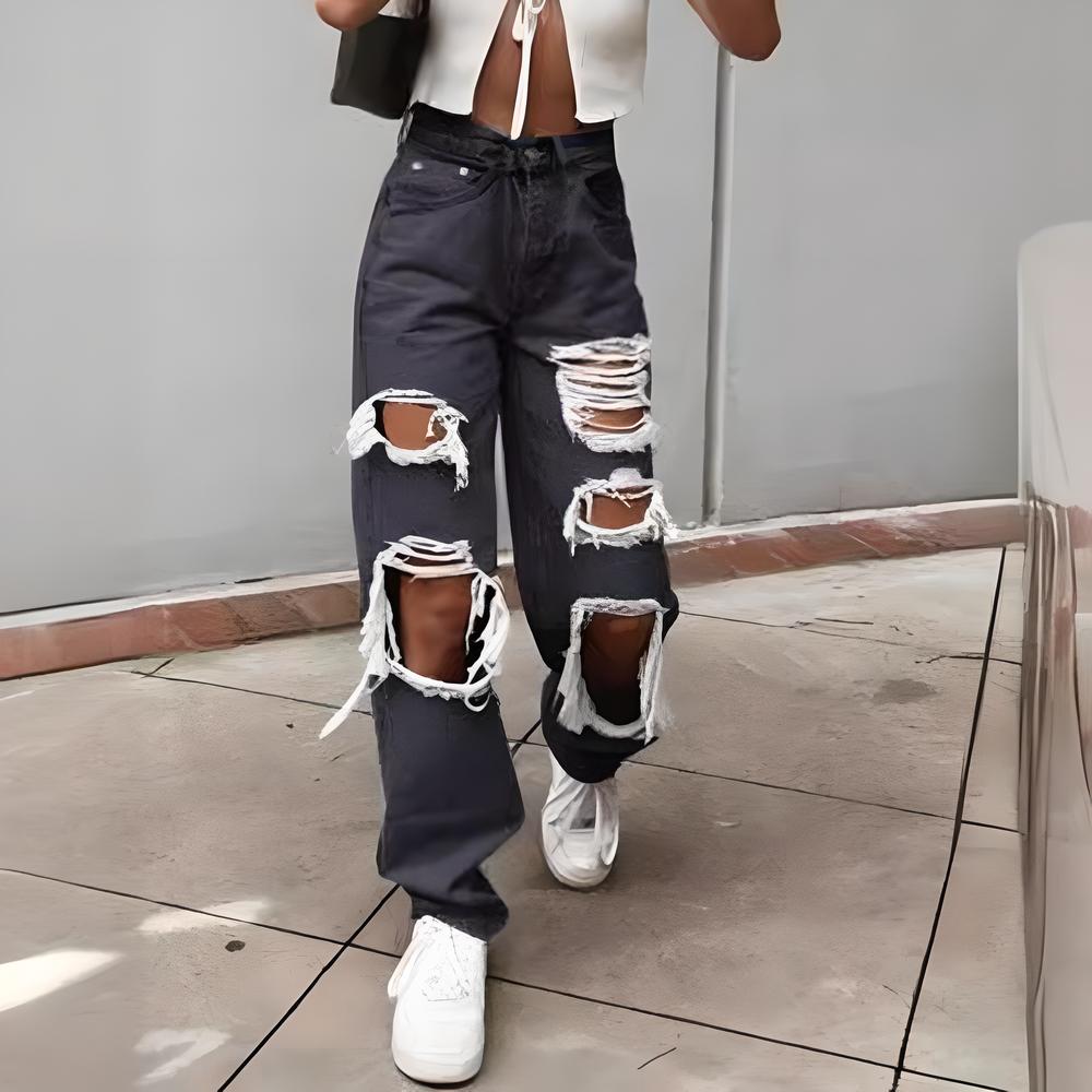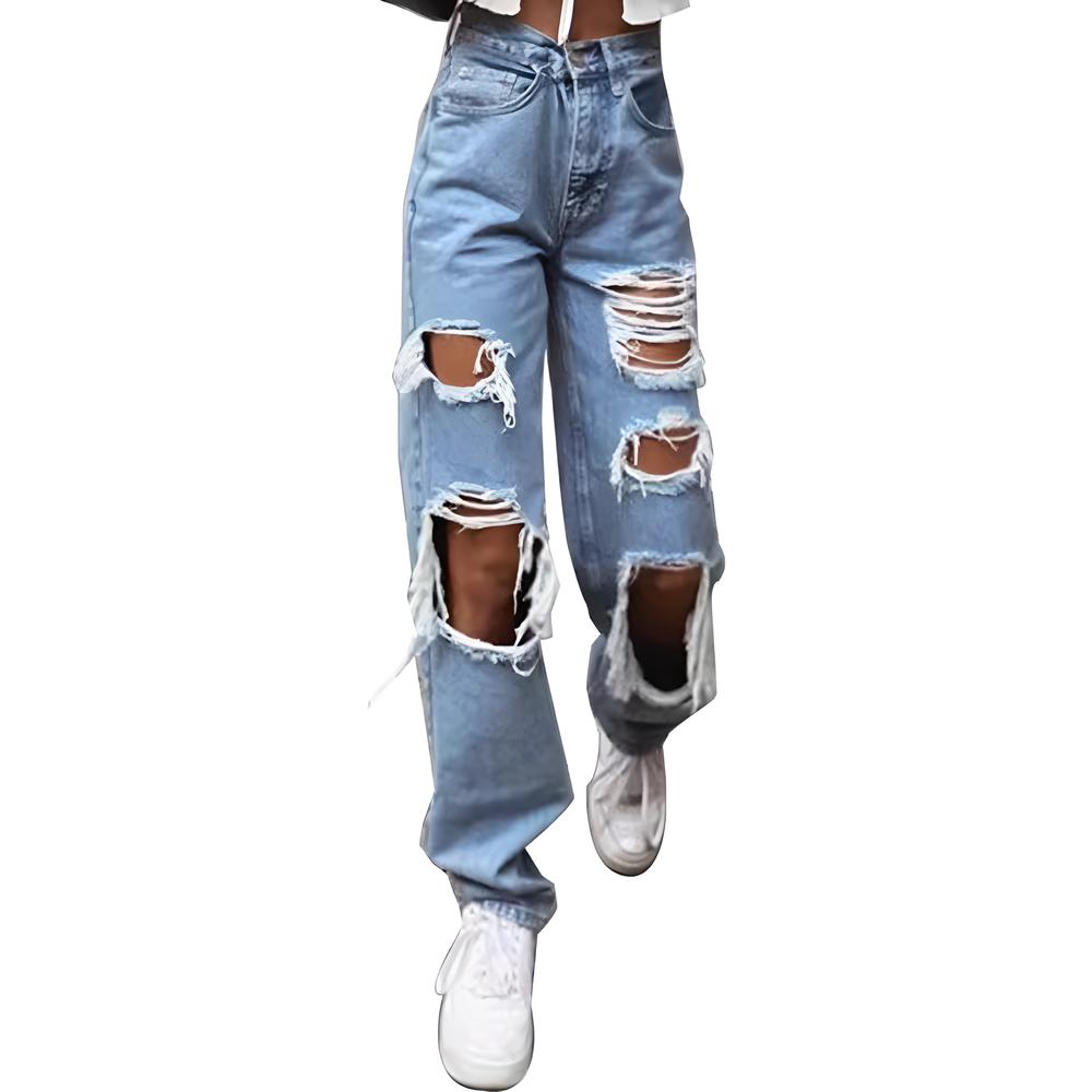 Cotton Wide Leg Trousers & Ripped Women Jeans Cotton PC