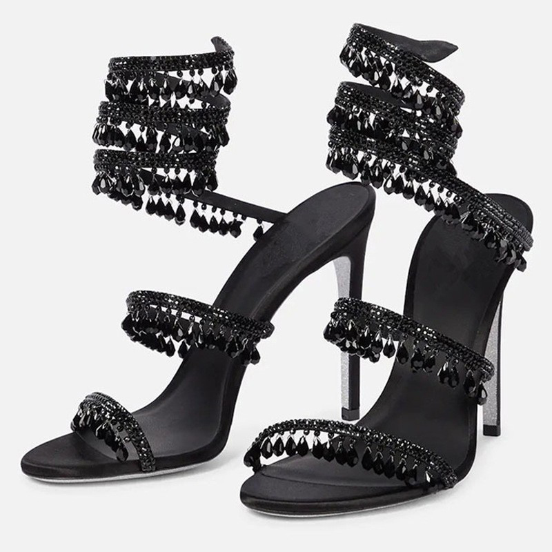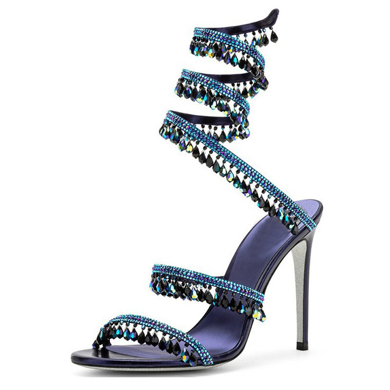 Crystal & Microfiber PU Synthetic Leather & Rubber Stiletto High-Heeled Shoes & with rhinestone Pair