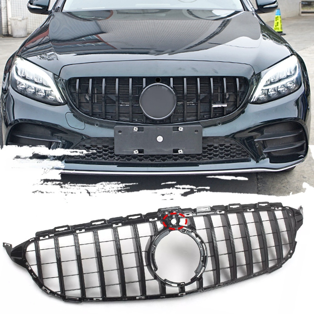 Front Bumper Grille For 2019-22 Mercedes Benz W205 C250 C300 C43 AMG with camera hole