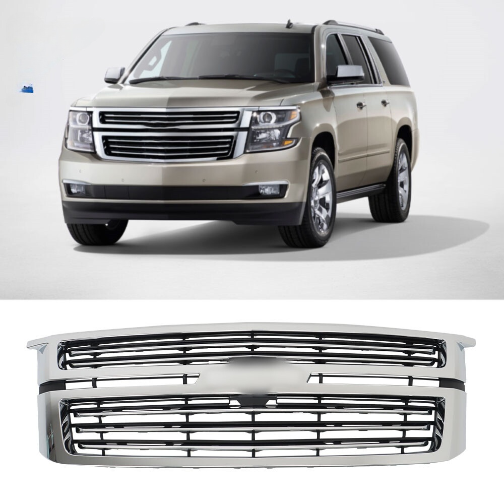 Front Upper Grille Chrome For 2015 2016 2017-2020 Chevy Tahoe/Suburban LTZ Style