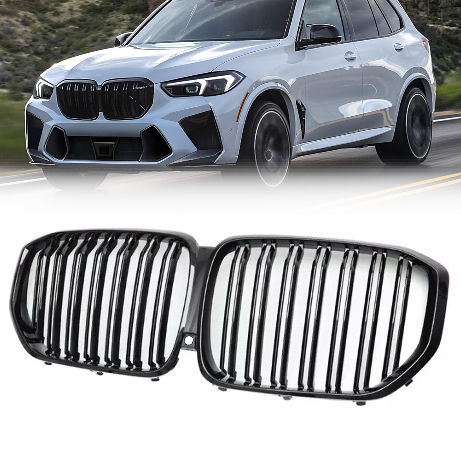 For BMW X5 G05 2019-2023 Front Kidney Grill Grille M-Performance Gloss Black