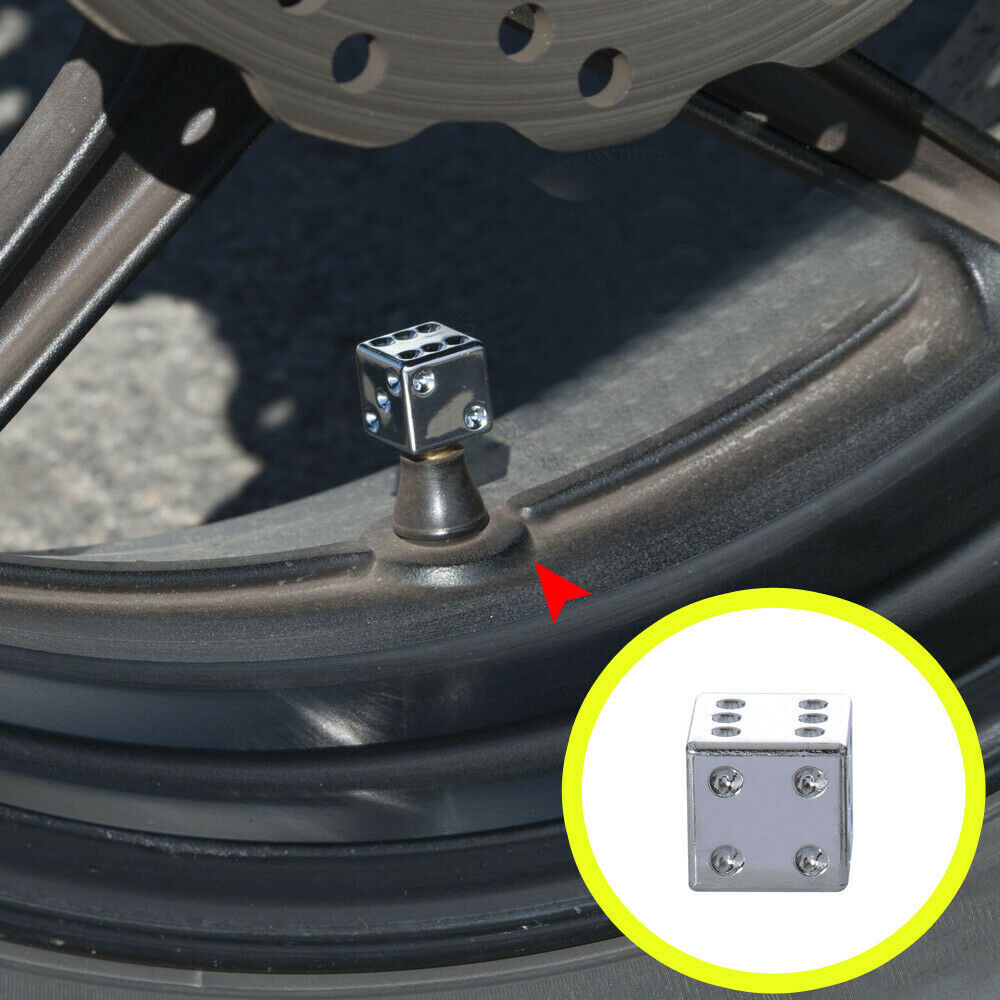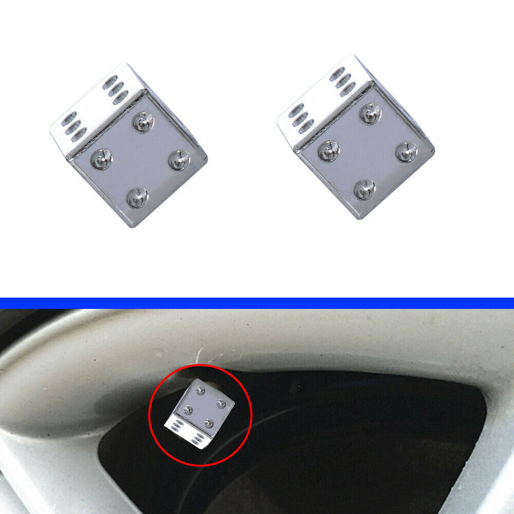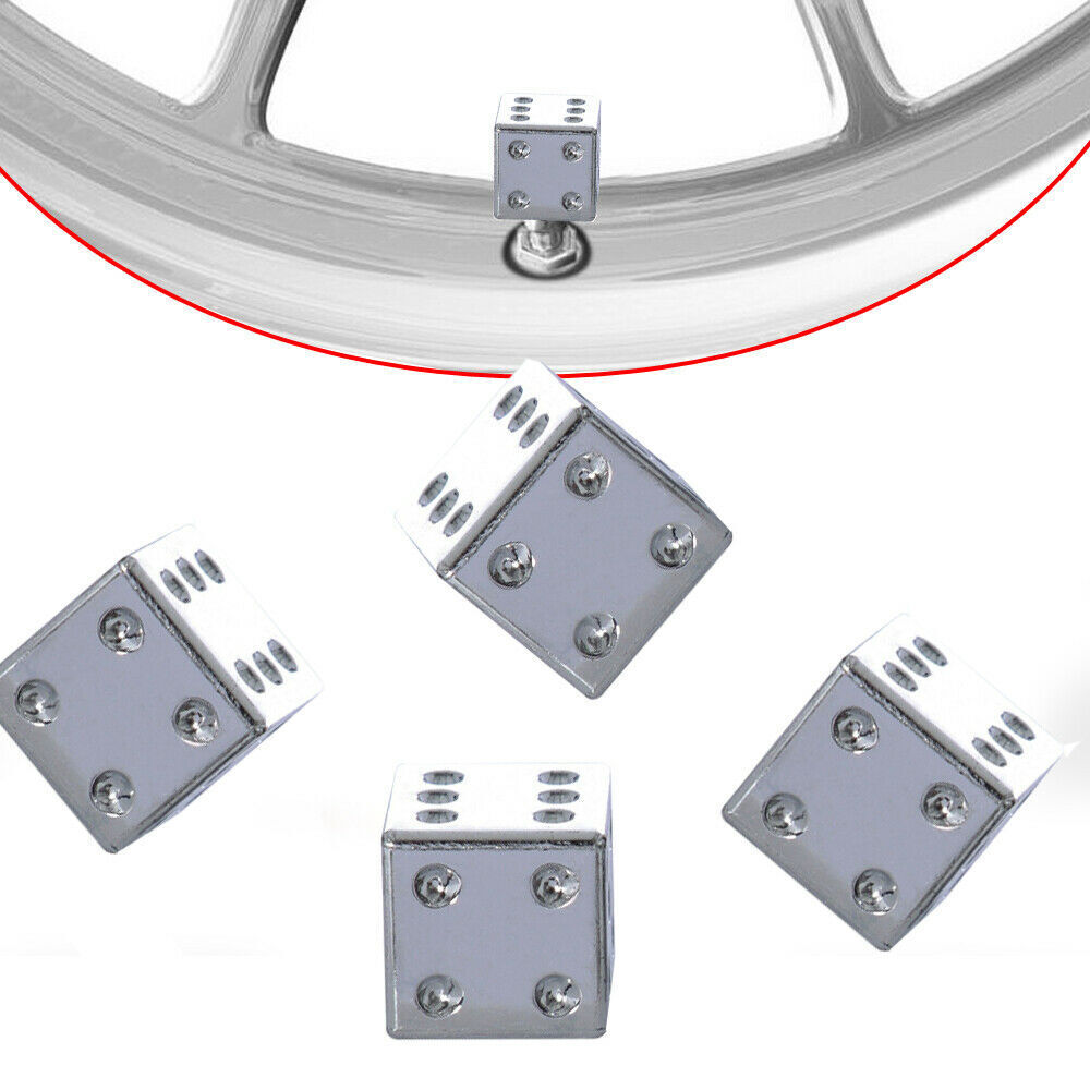 4x Chrome Dice Car/Truck Valve Stem Caps Air Wheel Tire Covers Universal Silver