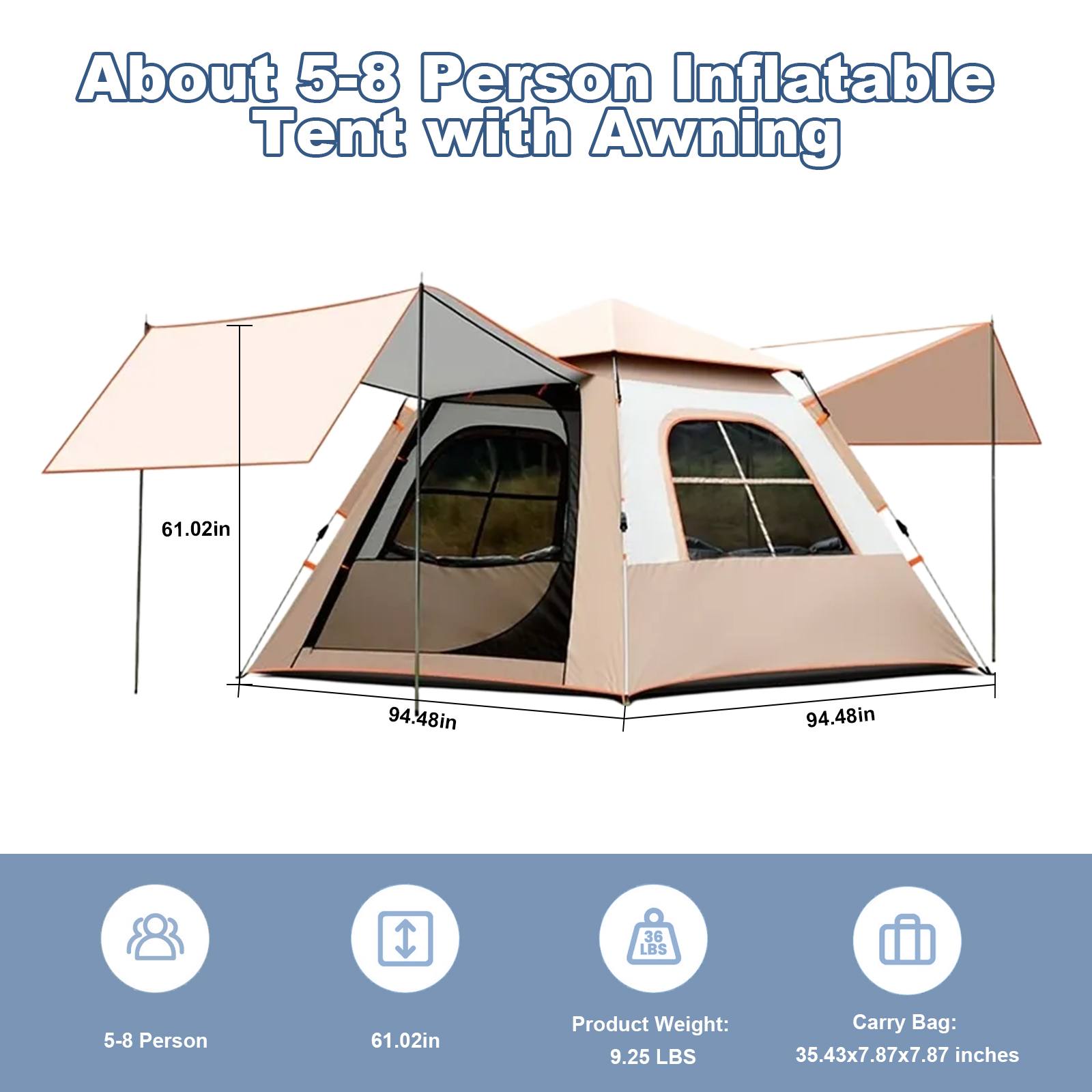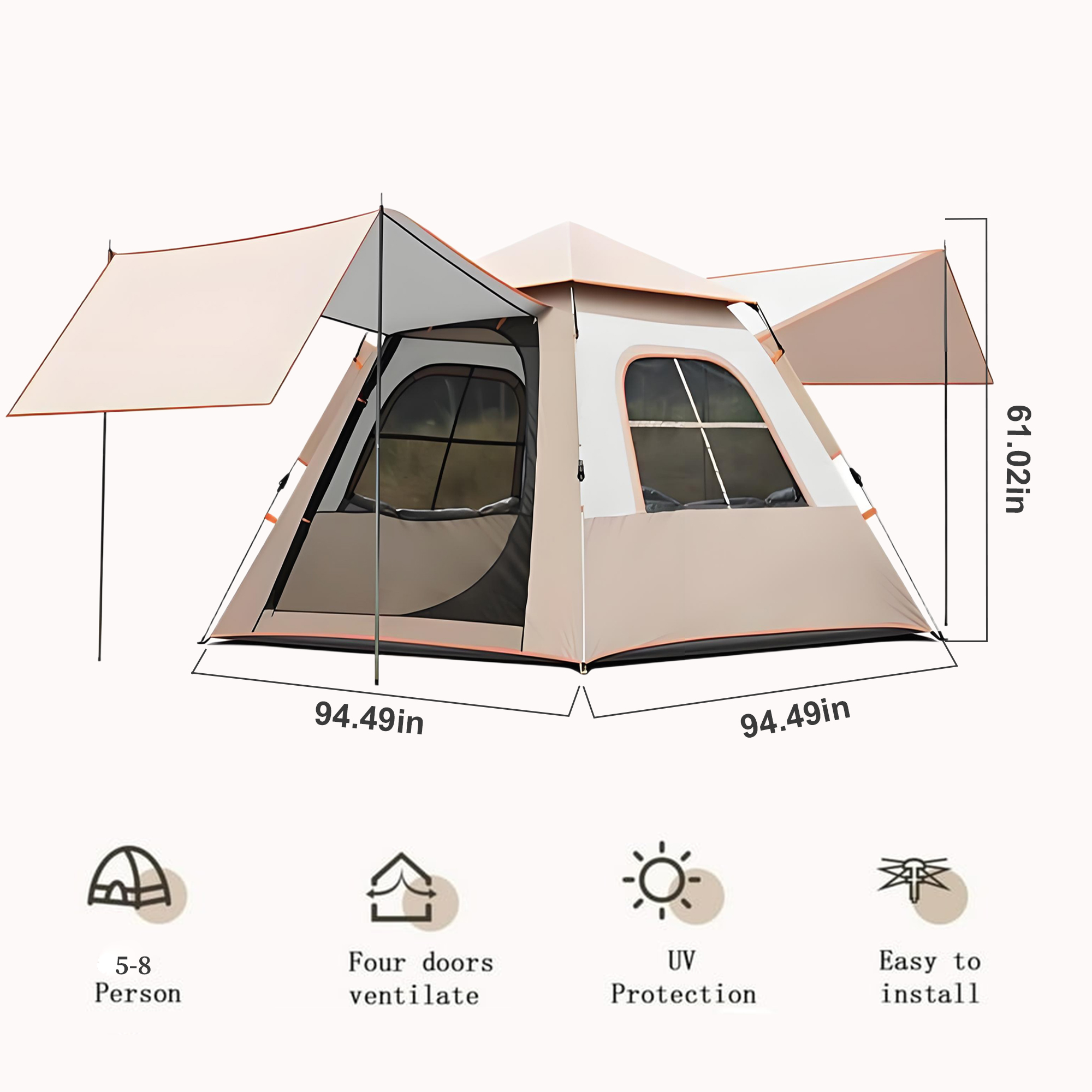 Fiberglass & Oxford Outdoor Tent durable khaki PC